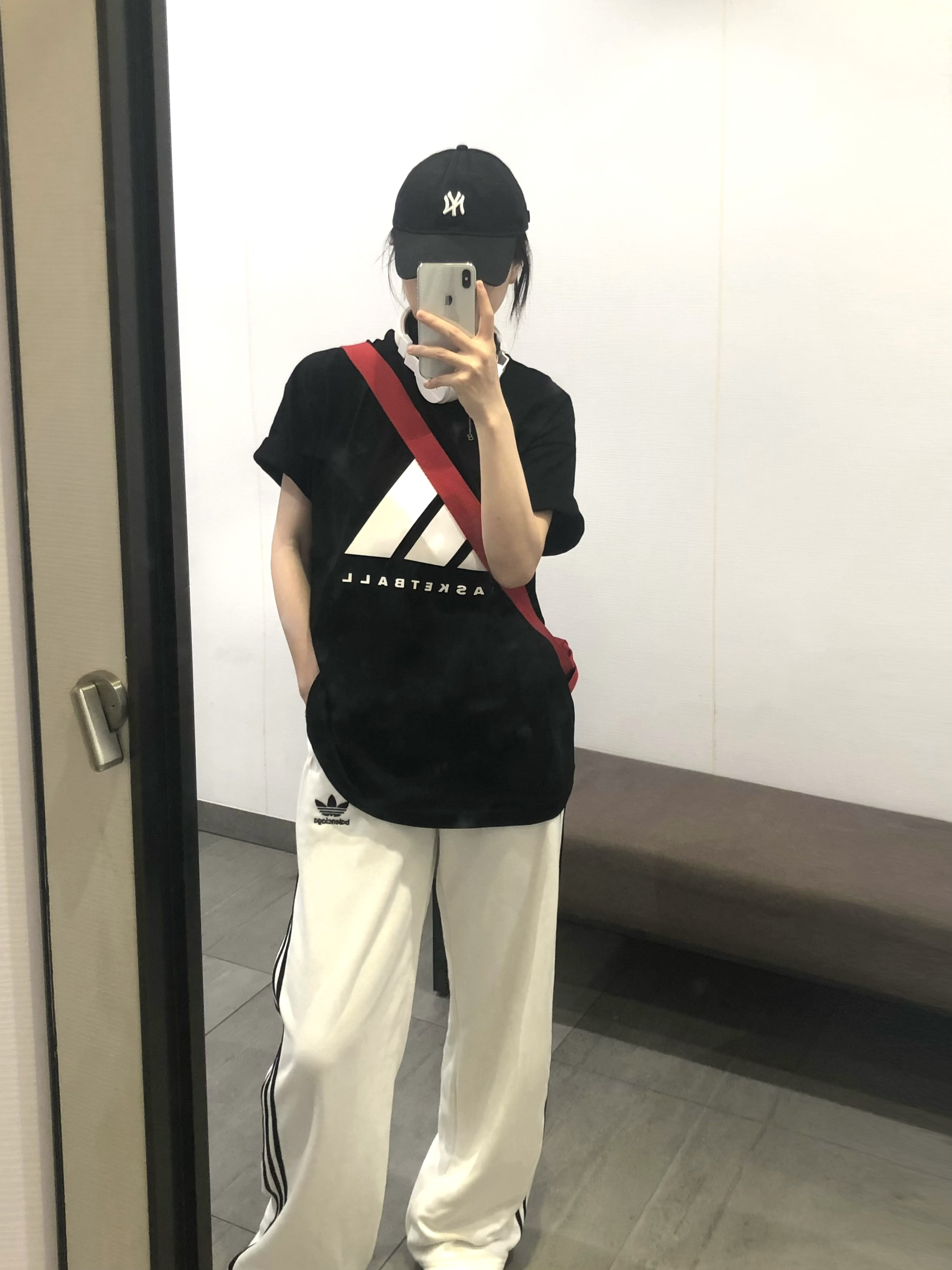 ⚫️⚪️ . 一整件巴里巴气的? 还别说!还真别说!这件上身真的好好看 我好喜欢啊哈哈哈😆 . 🧢: MLB 👔: adidas Basketball Chapter .