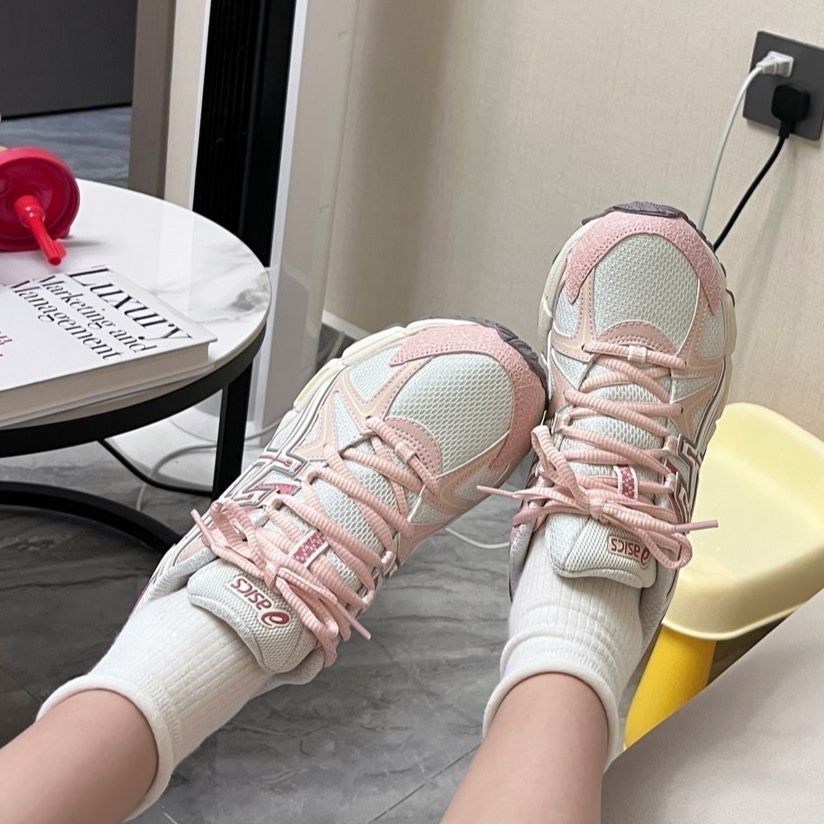 颜值:粉色的外表,配上机械风的鞋型,非常的少女哦,配上一条牛仔裤就是非常好看的校园穿搭。 性能:亚瑟士的这一类登山鞋,鞋底都是特殊设计的抓地底,所以上塑胶跑道跑步的时候,抓地感十足。 性价比:四五百的价位,一款不错的少女粉穿搭,有独特的设计,穿上有不错的校园风。有喜欢的小伙伴可以冲啊!