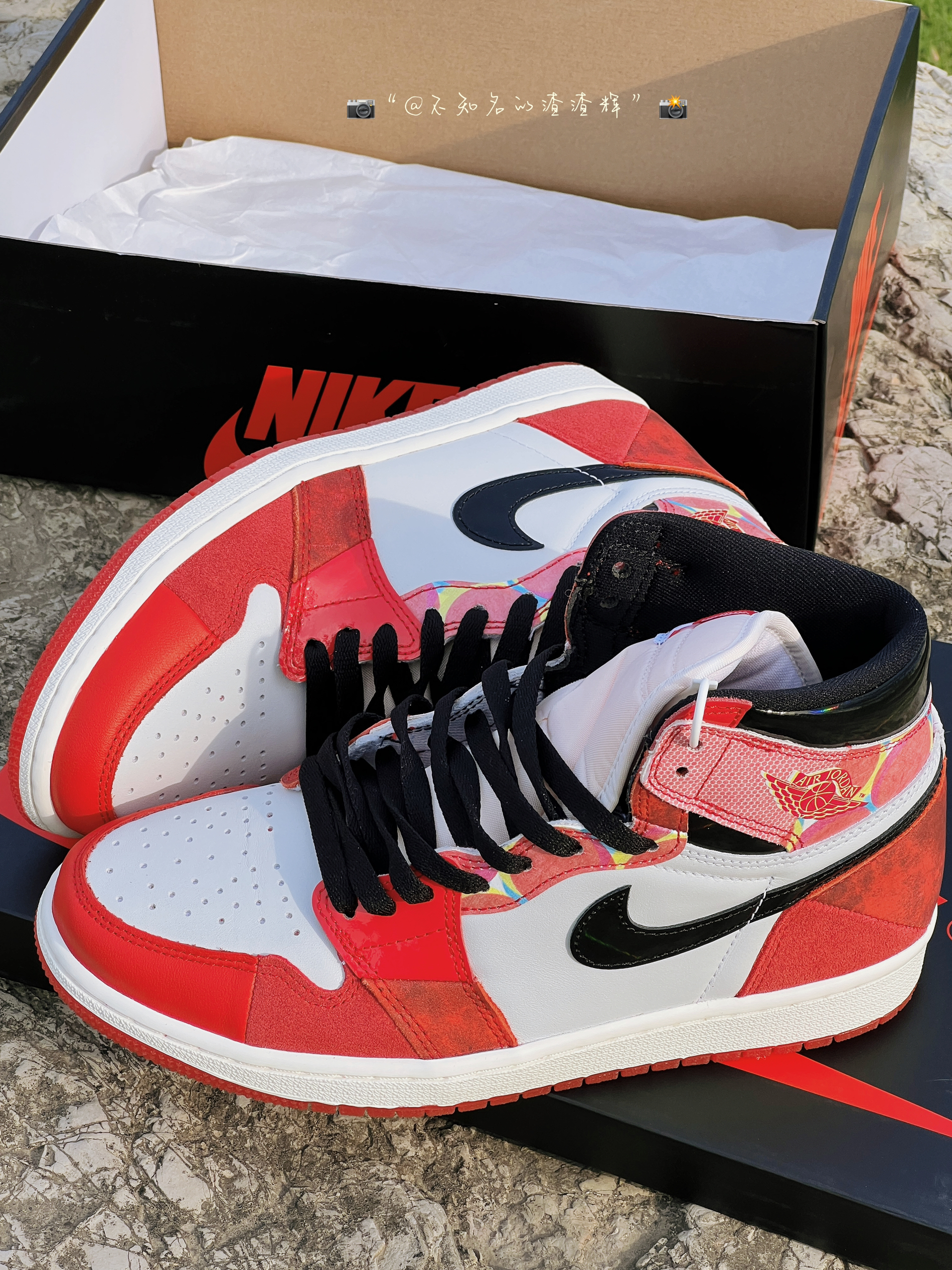 🌟:Air Jordan 1 Retro High OG“Next Chapter”蜘蛛侠2.0 防滑耐磨 高帮复古篮球鞋红黑 🌟:这双鞋子整体以白红色为主色调,鞋侧Swoosh采用黑色点缀,经典时尚的配色,鞋身采用优质皮革、麂皮、漆皮材质组成,质感细腻舒适,中底氧化做旧效果,复古感十足 🌟:个人还是很喜欢这款蜘蛛侠2.0的,低于原价自穿性价比还是很高的,经典永不过时 🌟:尺码推荐:正常尺码