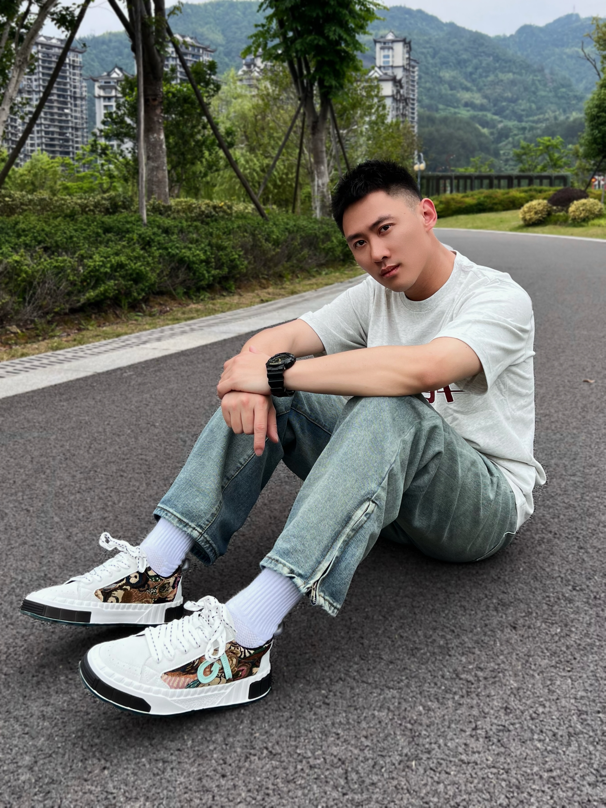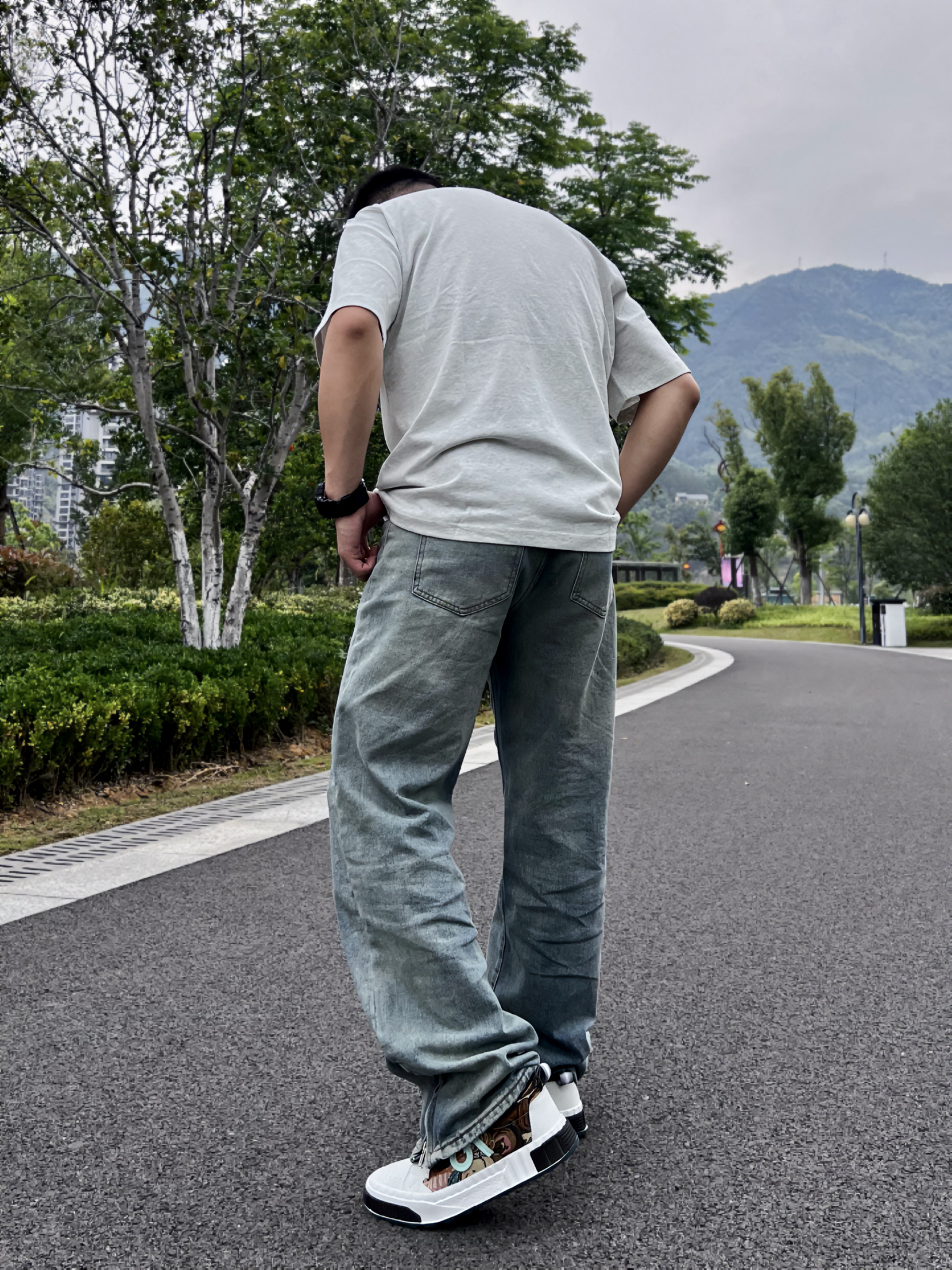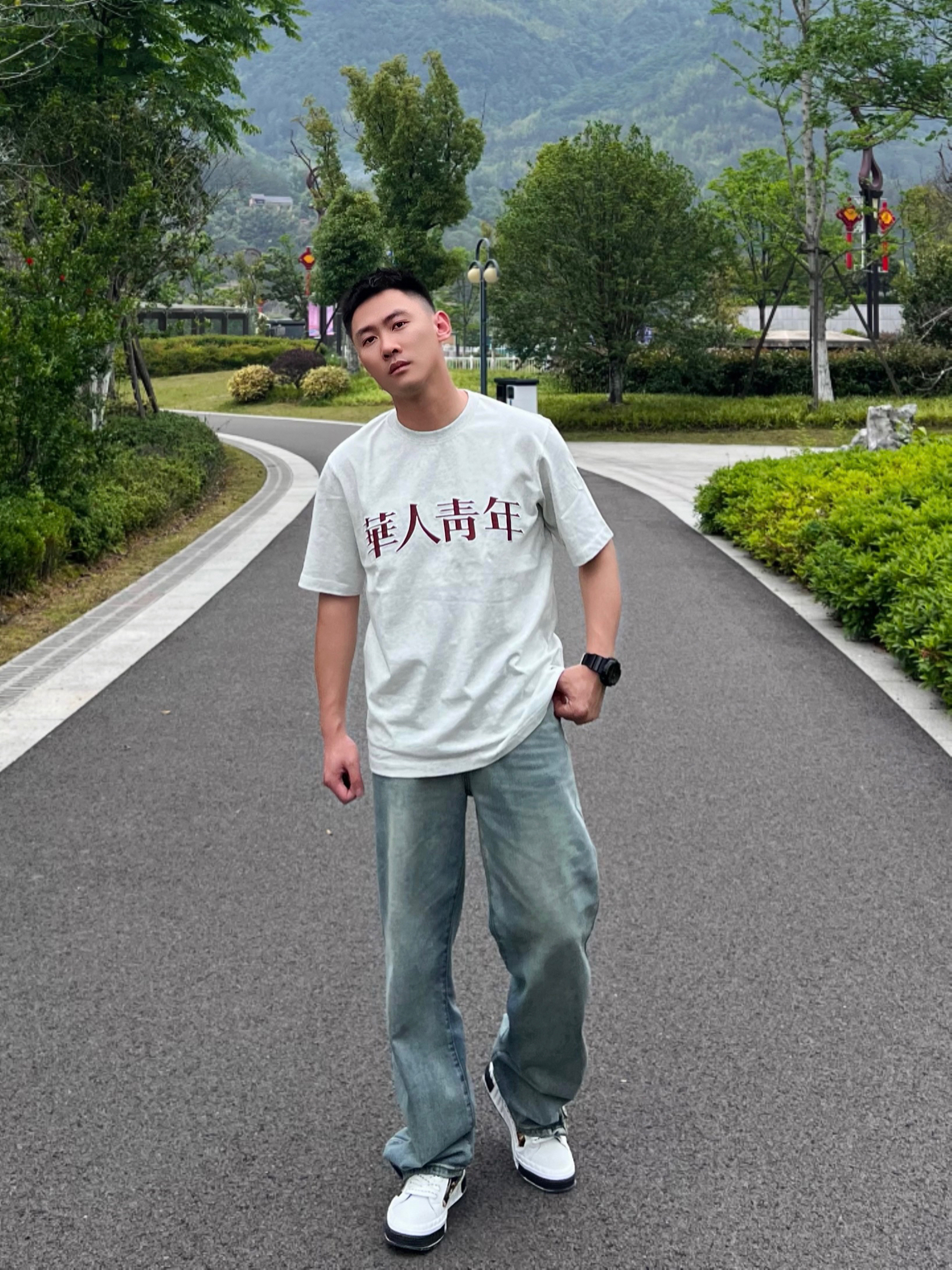 夏天对于微胖男生或者胖男孩来说,又是一个不太友好的季节。比如我自己,近140斤的体重如果选衣服没有选好就会显得很“圆润”。哦~NO~这不是我想要的结果。所以今天的穿搭还🉐️是显瘦! 浅灰色落肩宽松版型的短袖,胸前还有红色的字体,搭配浅蓝色宽松牛仔裤👖,看上去就是复古风格同时修饰了身形,真的很不错👍 白色板鞋,设计好看厚底增高,侧面的设计比较独特。搭配这身穿搭可以说刚刚好。颜色和衣服👔也存在呼应...