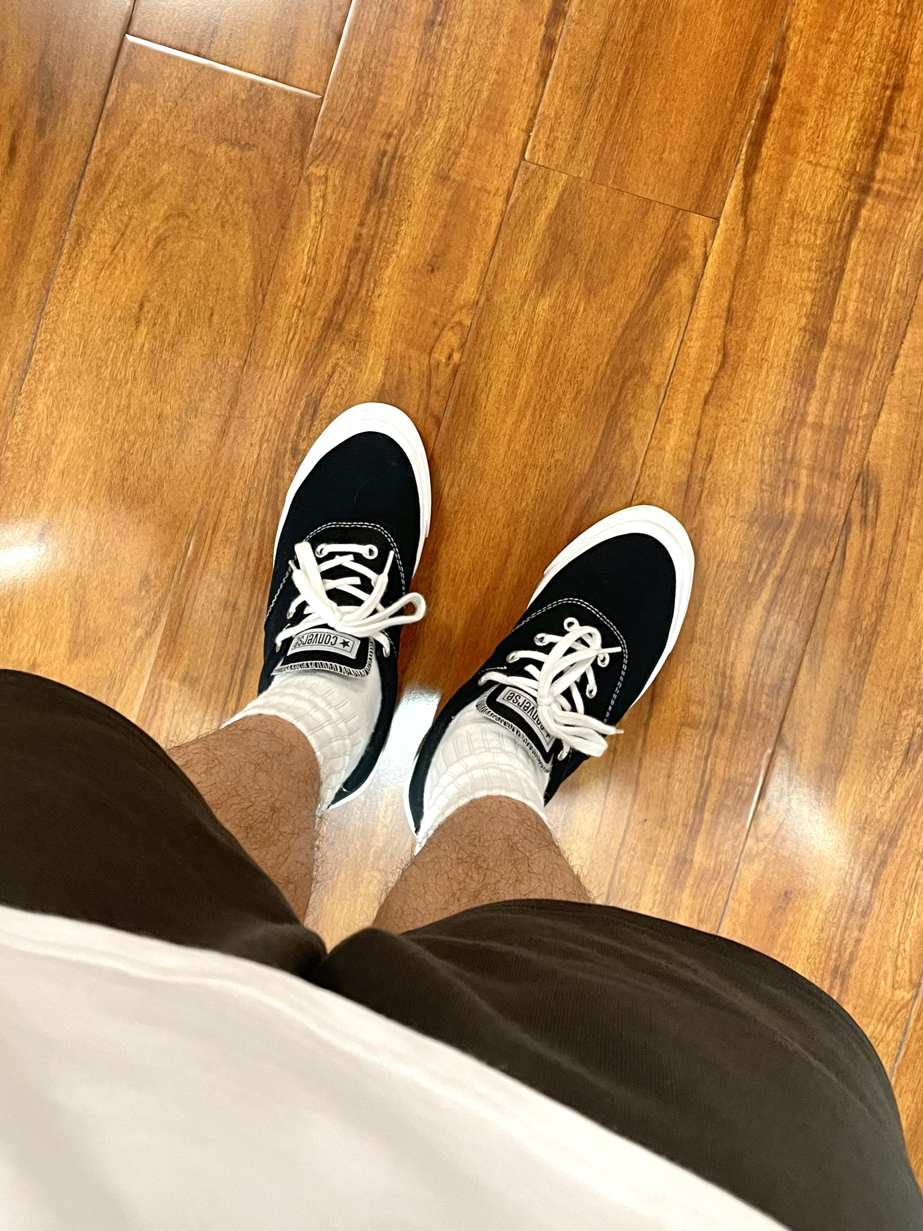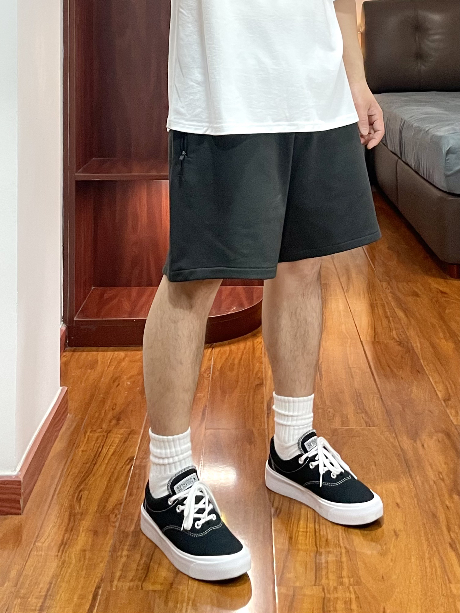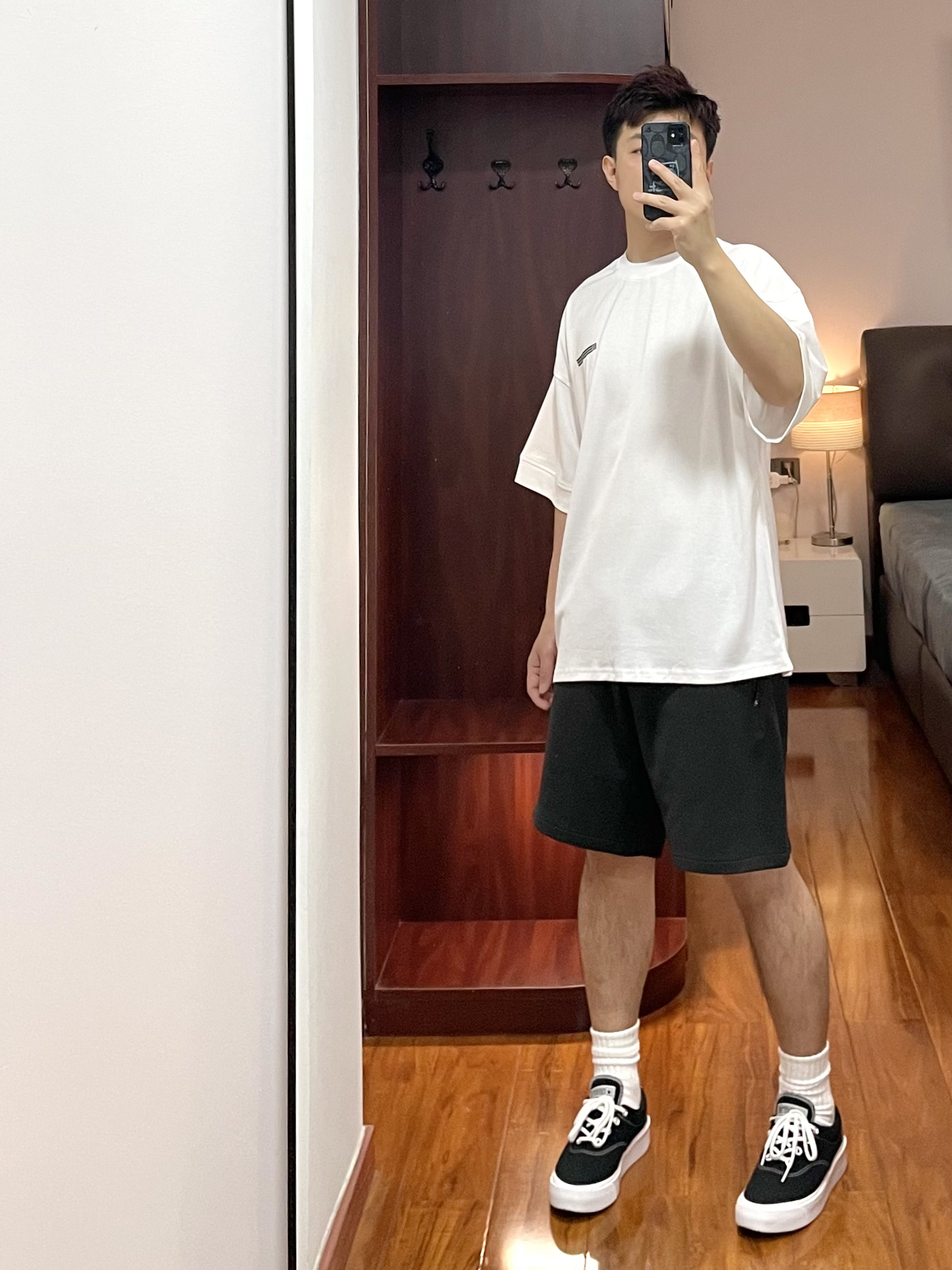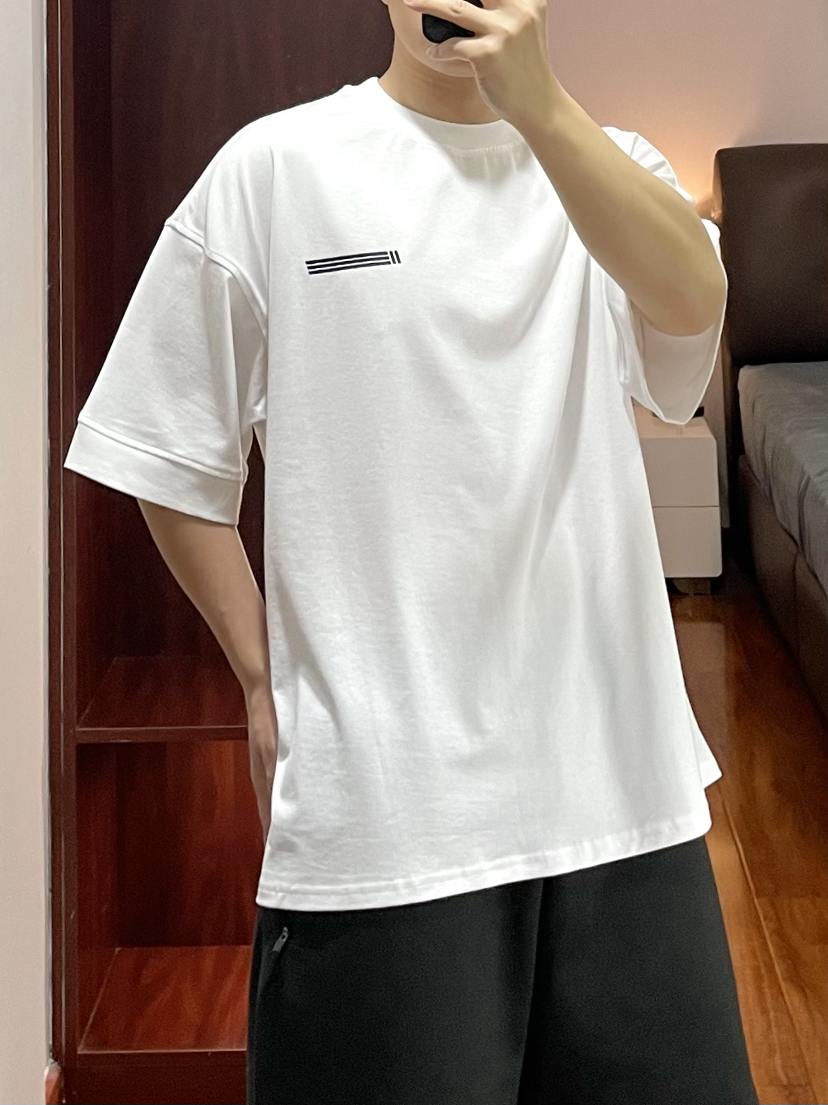 170cm/67kg 分享一个普通人的穿搭 - 👕:11ESTRANGER 短袖-S 白色T恤爱好者系列 领口螺纹宽大有质感,袖口也有螺纹 面料厚实立体,版型宽松舒适。 👖:11ESTRANGER 宽松短裤 宽松厚实的廓形短裤 深灰的颜色,很休闲自然 裤型宽大等满足各个裤型。 👟:converse skidgrip 休闲百搭鞋款。