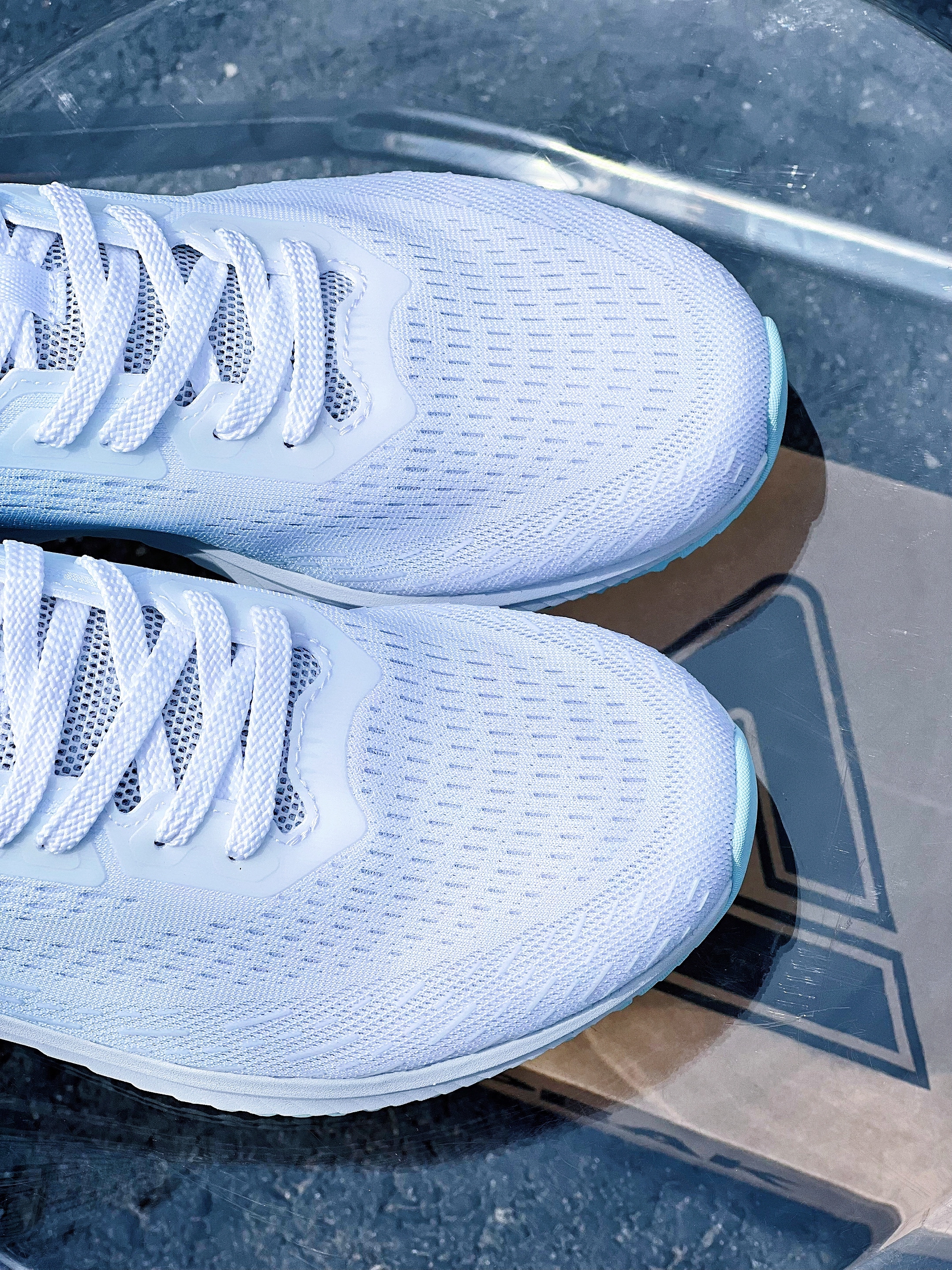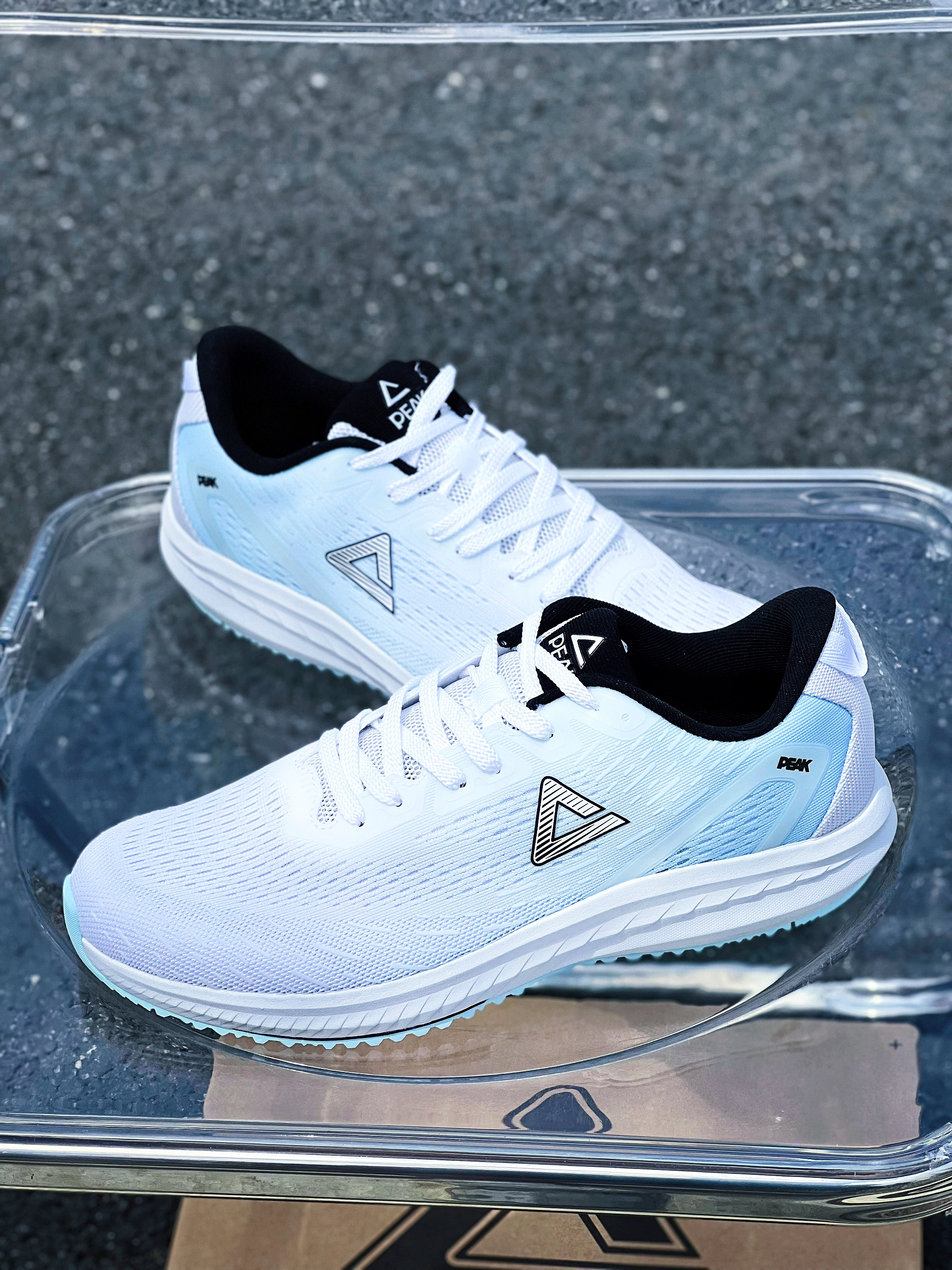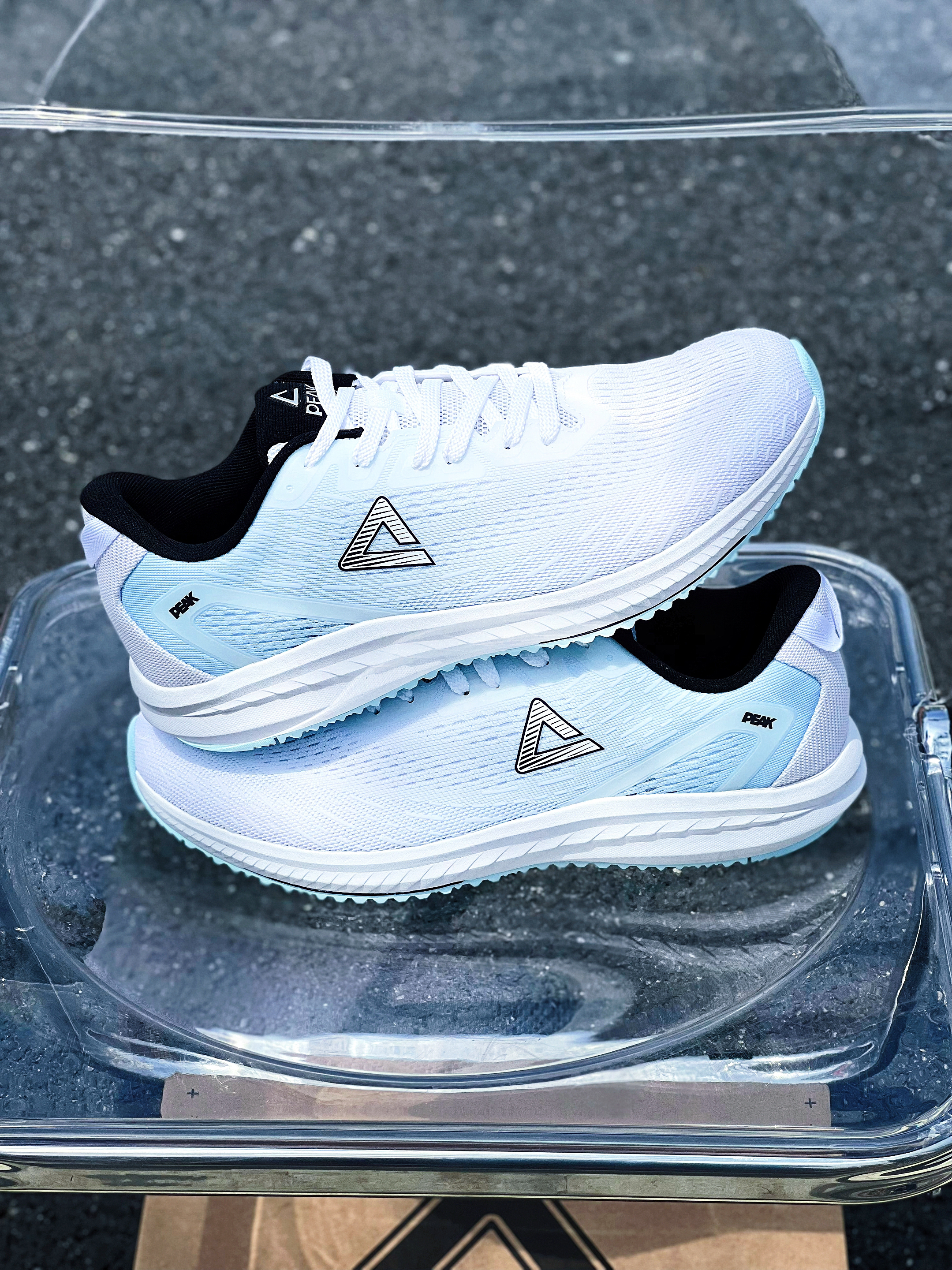 开箱即分享 今天和大家分享一款高颜值跑鞋 便是这款匹克 决胜100 白蓝 配色还是非常的干净清爽 可以说是夏天的专属配色 加上流畅的线条设计,整体的颜值还是蛮好看的 鞋面采用了提花贾卡面料搭配局部网孔编织设计 透气以及包裹还不错 中底搭载了超级魔弹科技+异性尼龙碳板 上脚比较的韧弹、前进推力十足 橡胶外底则加入了硬质的橡胶钉 抓地防滑性还不错 可以说是一款性能在线的体测跑鞋 尺码方面建议正码就可以