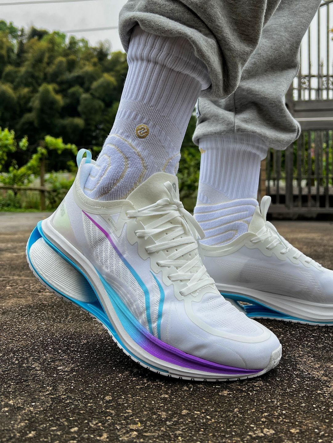 这期分享一双跑步鞋 李宁 吾适5s 3.0,一双定位休闲慢跑的球鞋,适合日常休闲通勤和初阶跑者,整体配色以白蓝紫为主,颜值还是很Nice的🤩 鞋面材质为针织➕网纱,有着较高的透气性,绒面鞋舌和厚实的后跟填充也提供了不错的舒适性,不过鞋子比较难清洗打理 ⭕尺码建议 码数正常,低足弓扁平足建议试穿,可能顶足弓,宽脚、高脚背穿着无不适感 ⭕球鞋配置 中底: 前掌弹性体➕后掌䨻,䨻材质很厚,软弹感出...