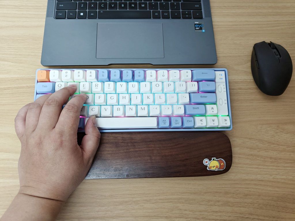 本篇笔记关联了LANGTU/狼途 GK65 三模 机械键盘 65键 热插拔 金轴 全键 双系统 客制化 混光 银轴 天蓝色GK65等商品,为用户提供真实的使用体验和购买参考。