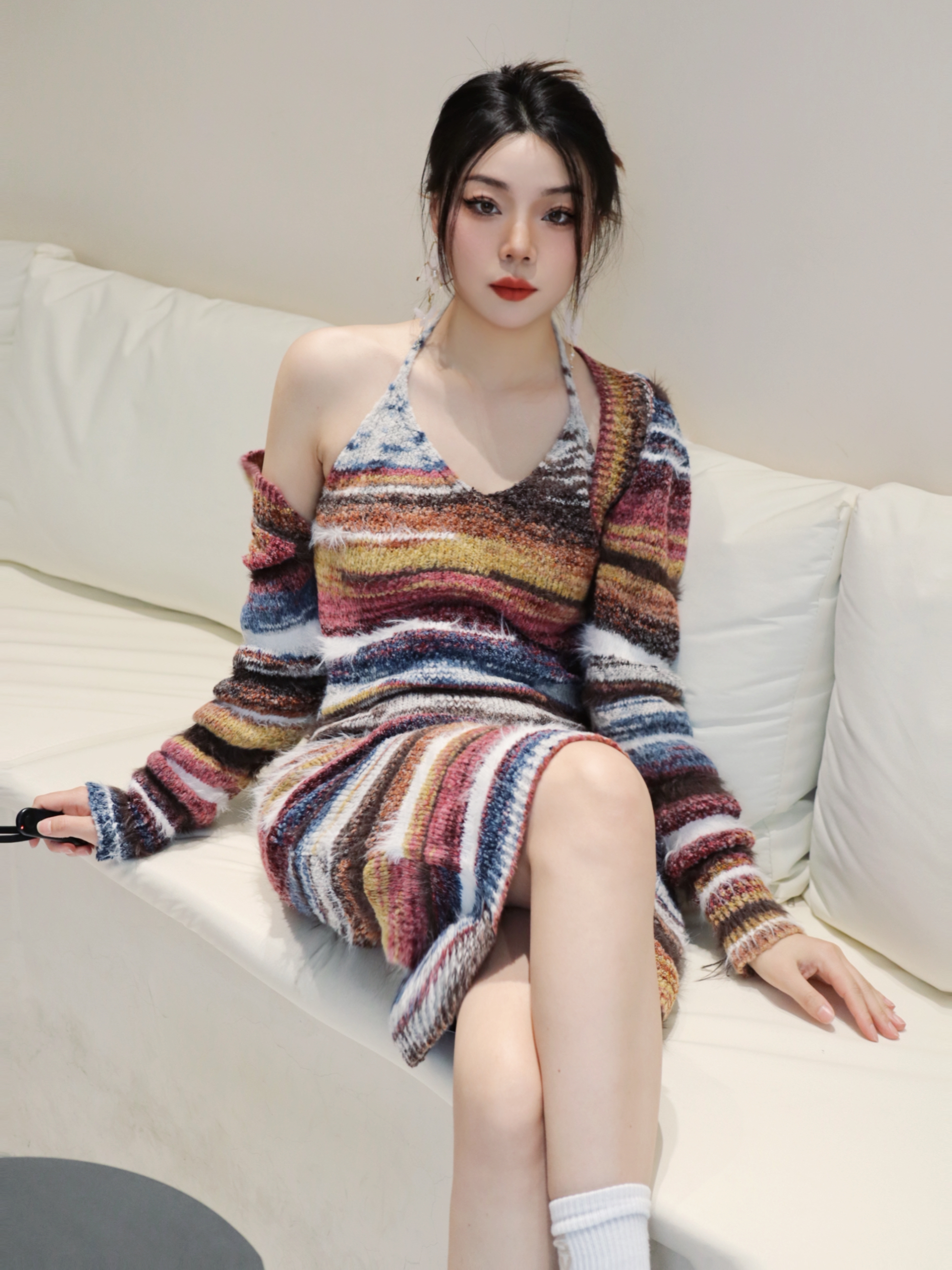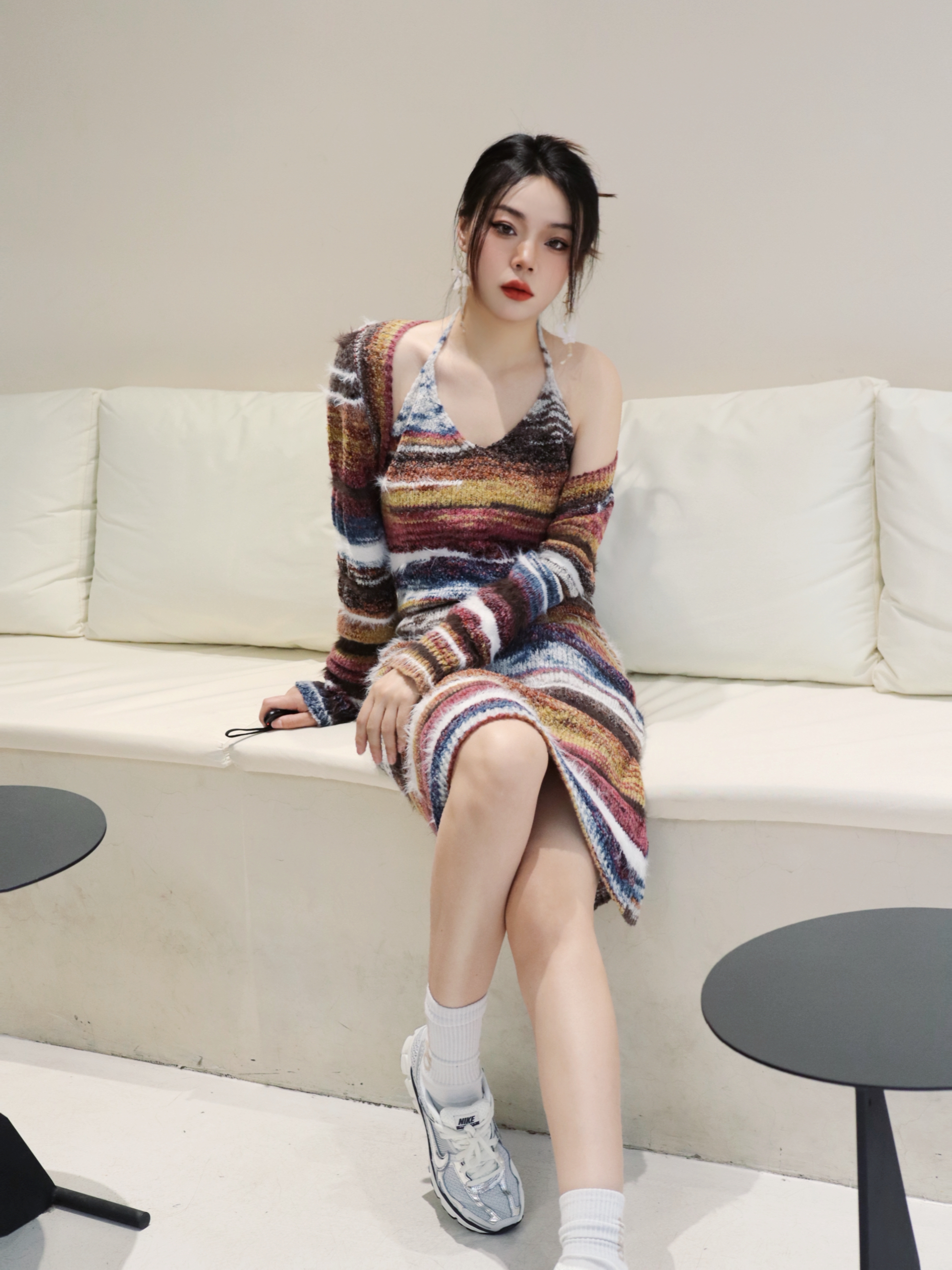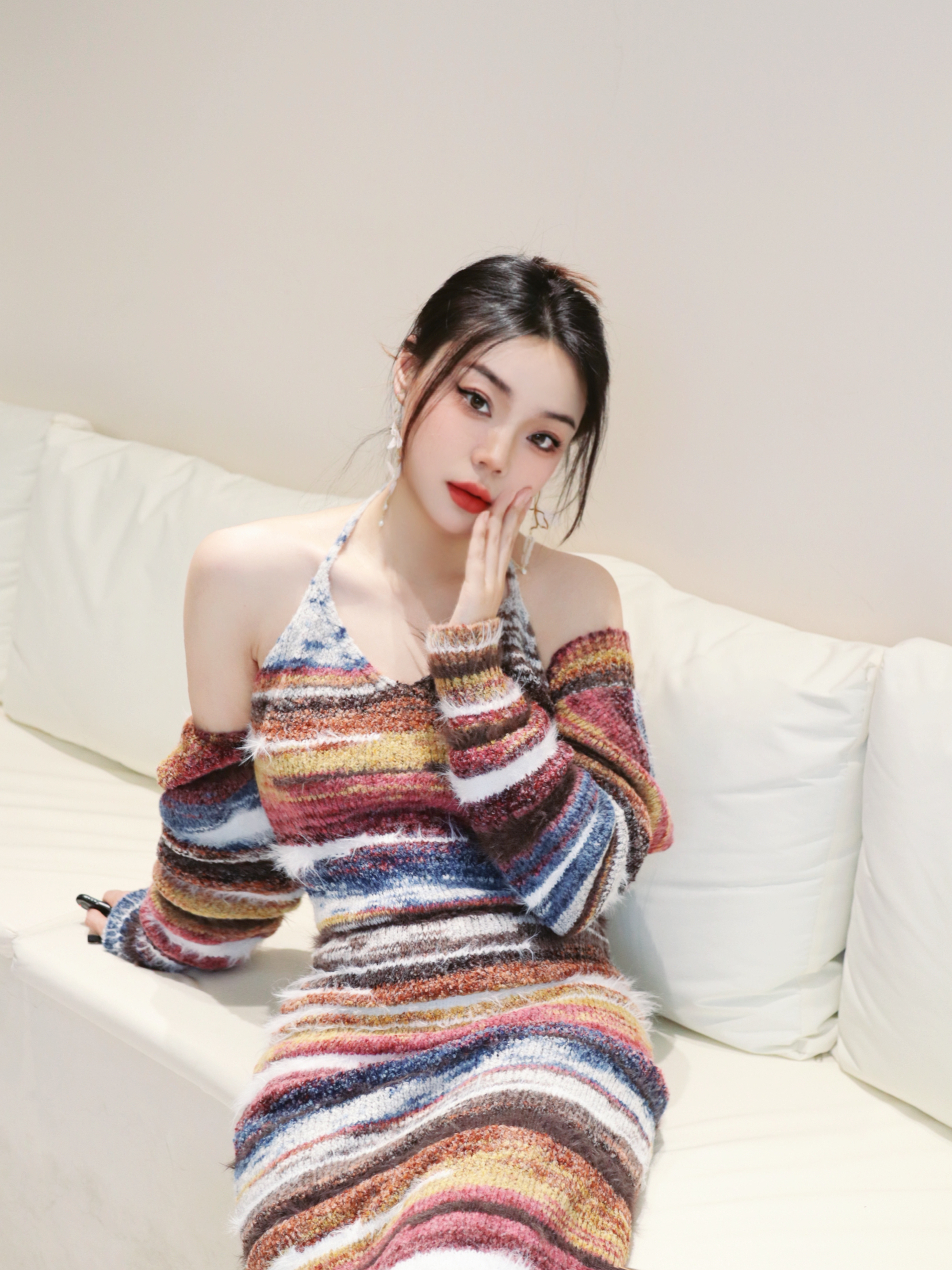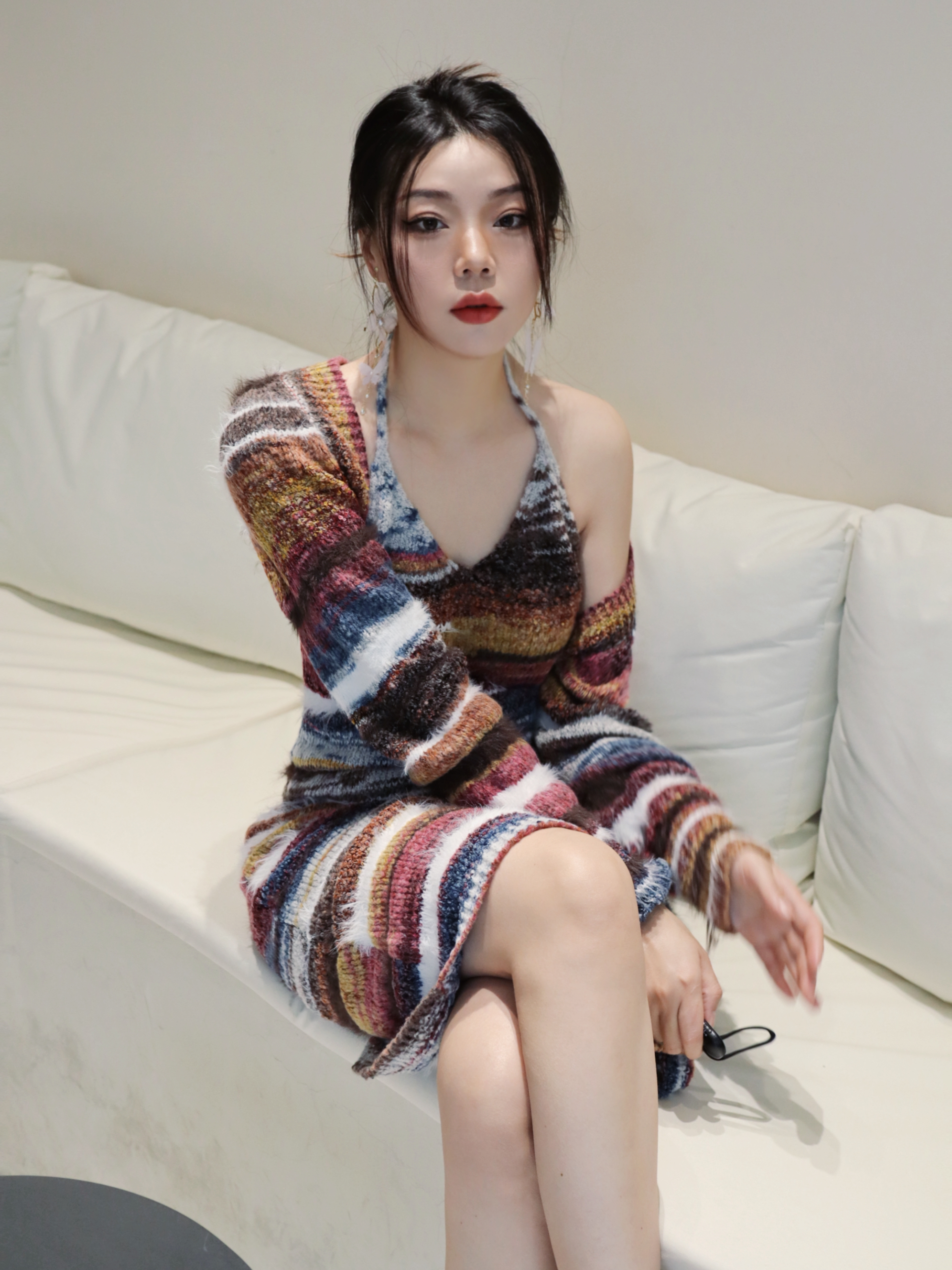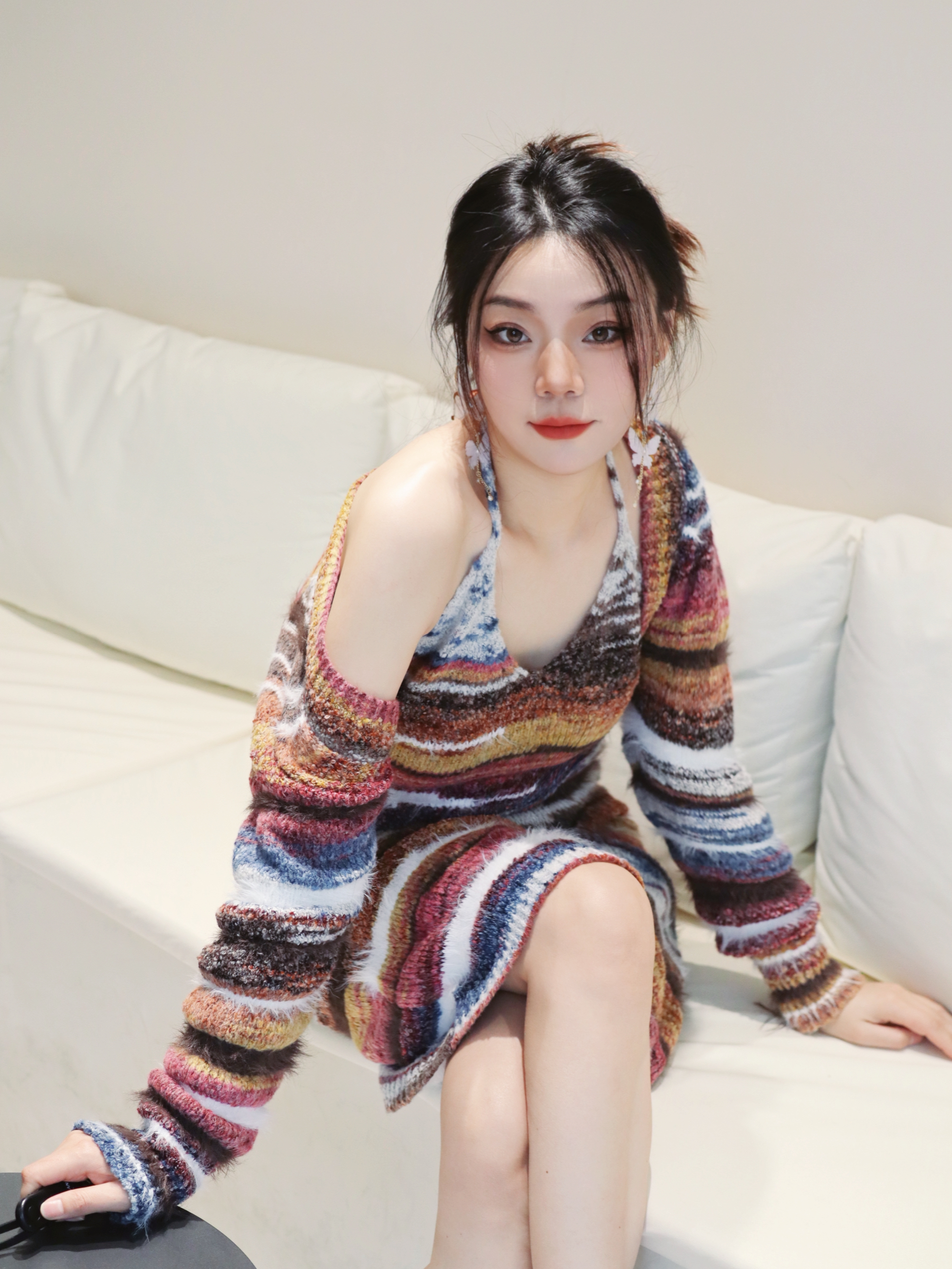 初夏谁会不爱彩色小裙子💓 我真的好爱这条彩色条纹连衣裙呀‼️ 生活里多点色彩真的会让心情变好 感觉变得很活力很元气~ 搭配蝴蝶🦋耳饰立马变精致‼️