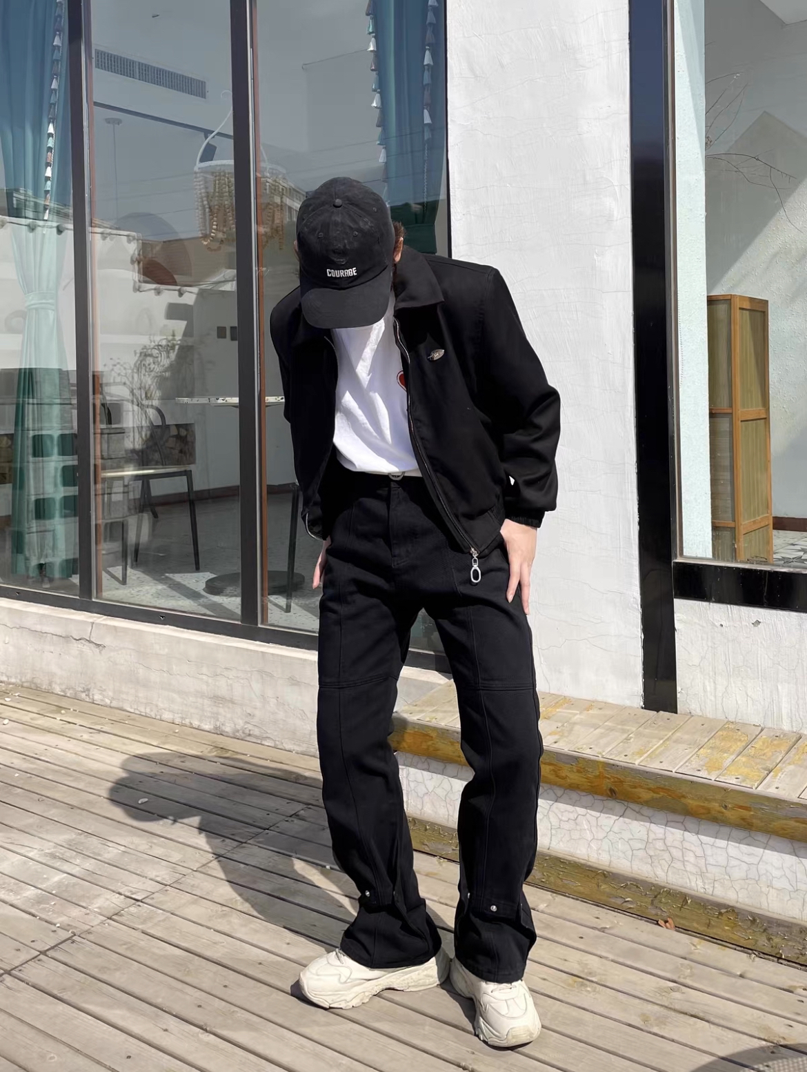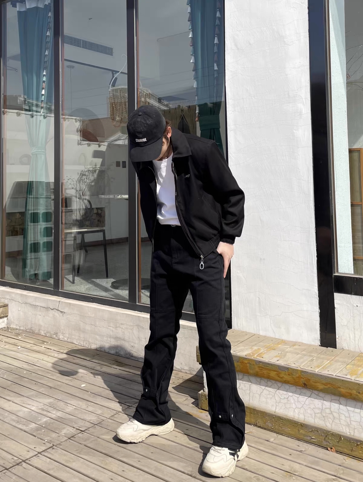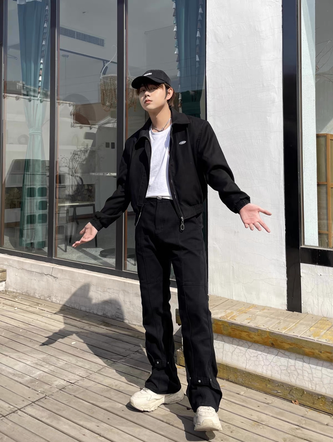 微喇的版型很显腿长,裤脚设计有纽扣,两种风格 一身黑很帅气❗️🉑