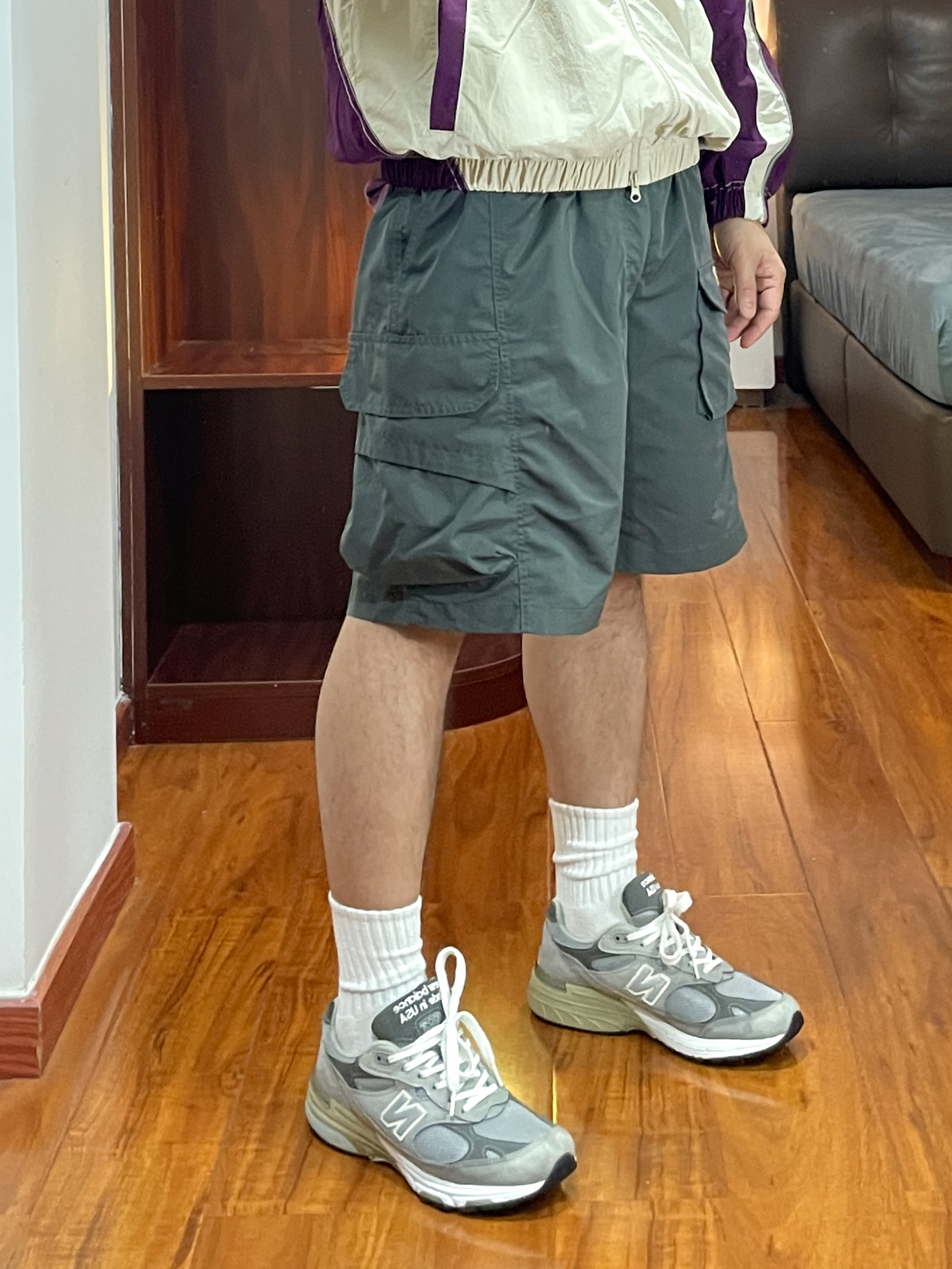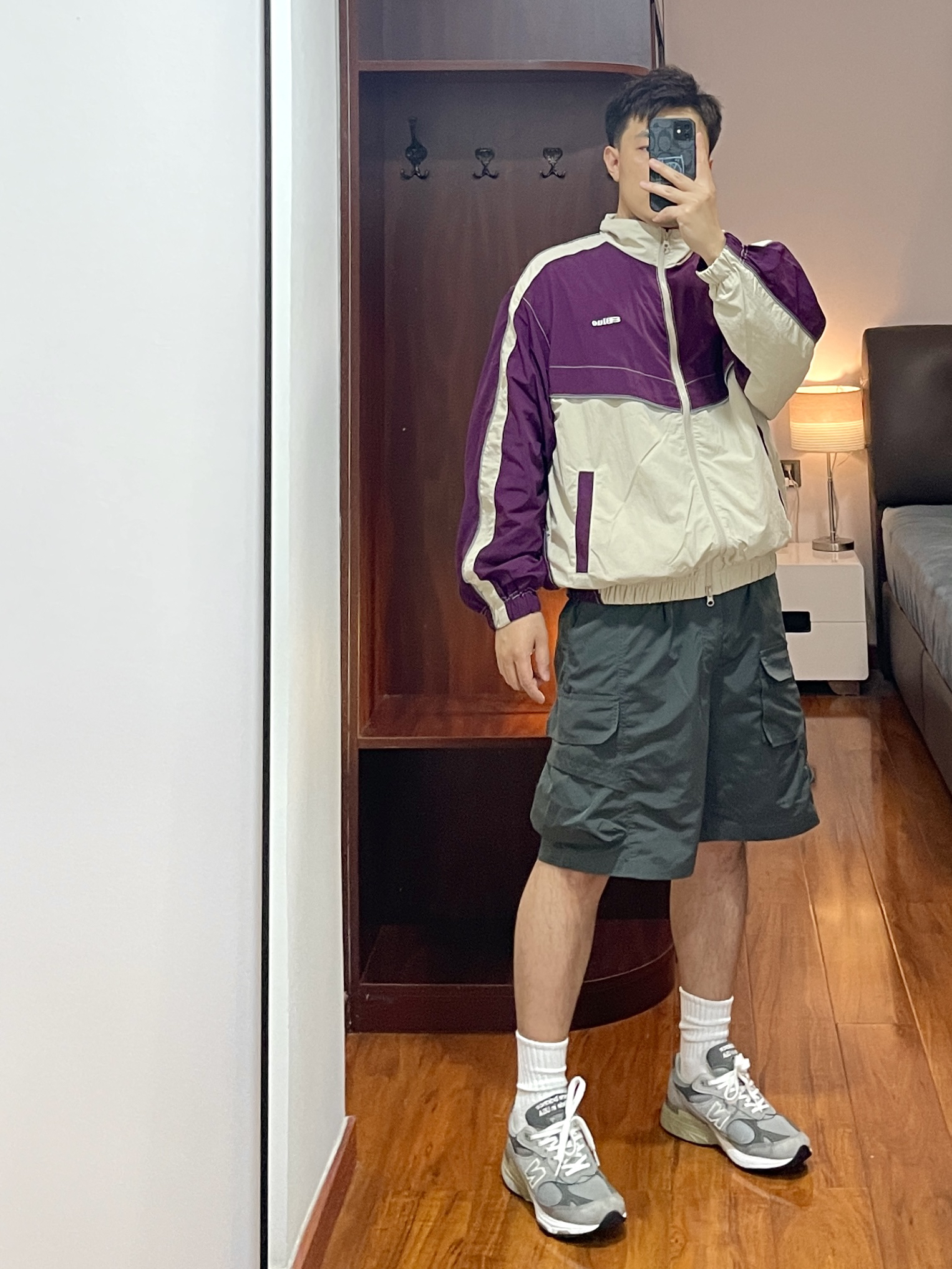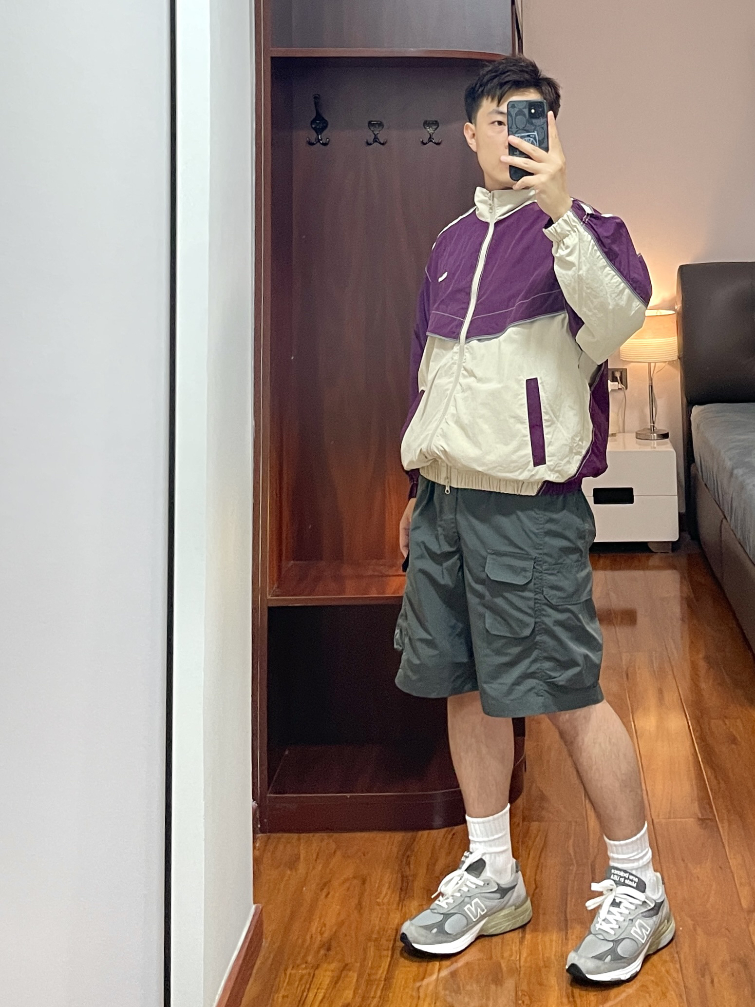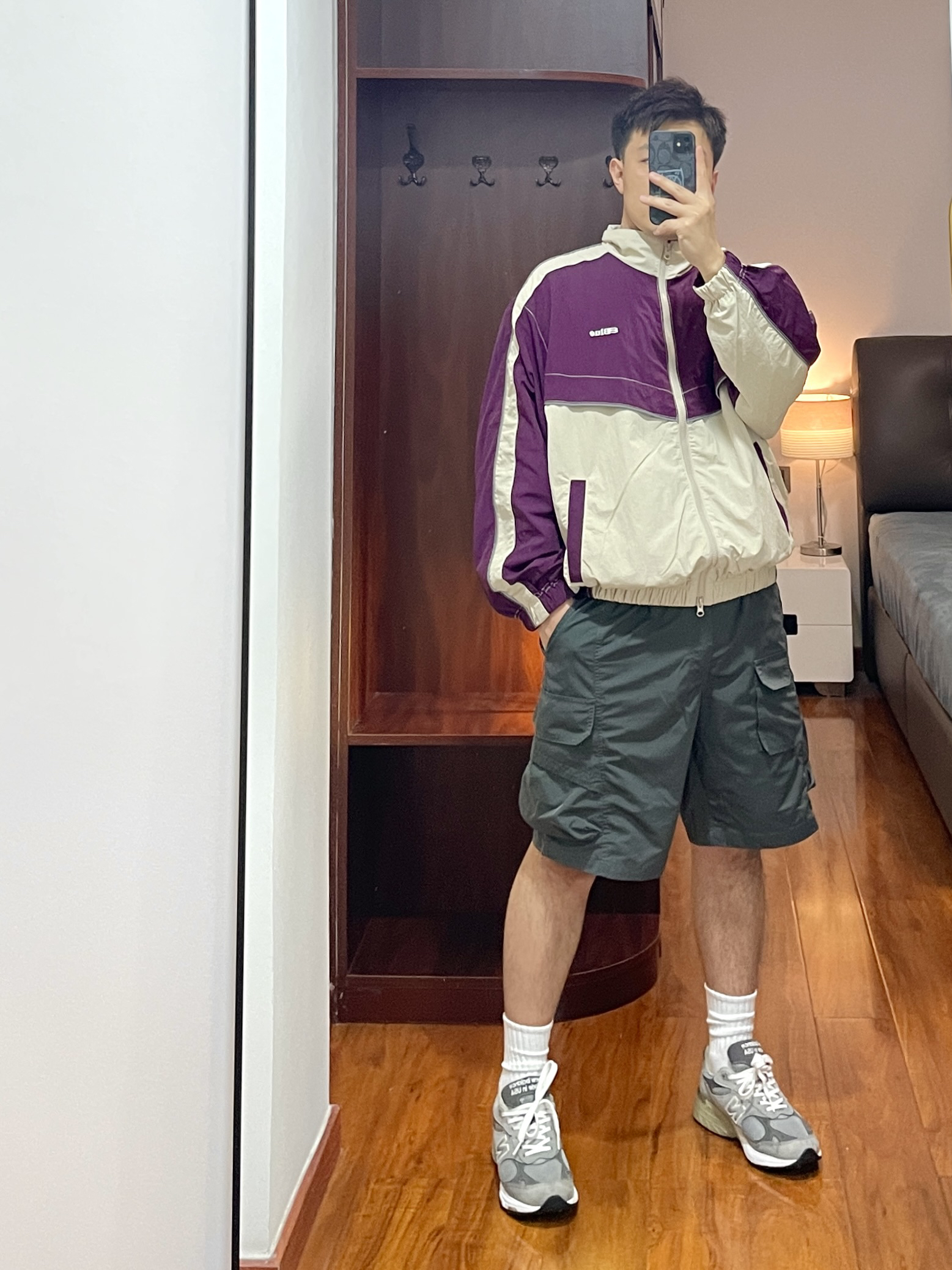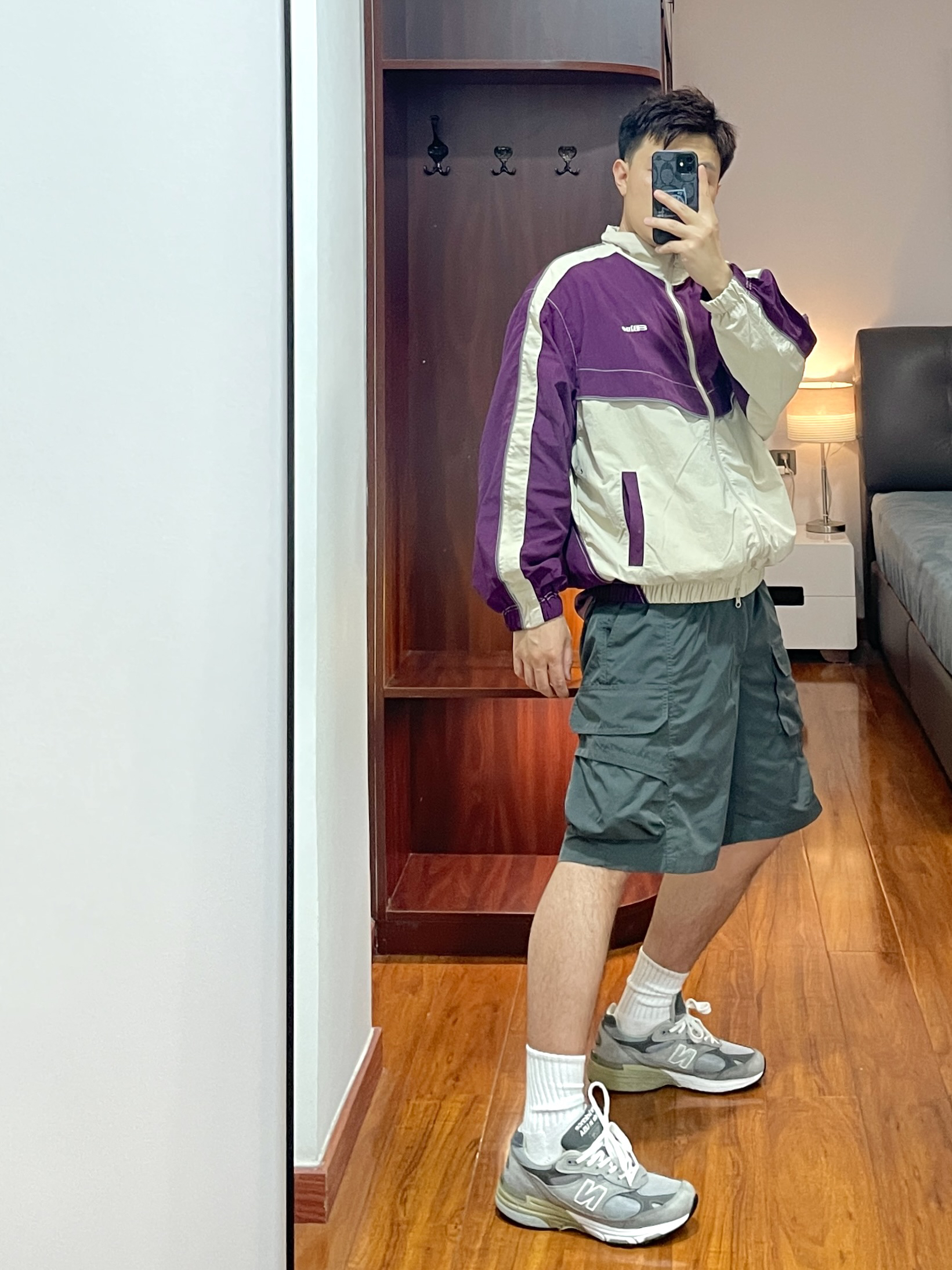 170cm/67kg 分享一个普通人的穿搭 - 👕:NOTHOMME 一眼看到就是被吸引的颜色🍆 紫色不仅限于女生,男生穿也好好看 防泼水的面料户外出行方便 衣服背后的通风排气口袋 增加了衣服的穿着场景 👖:户外工装短裤 宽松立体版型,通风透气 适合户外出行休闲穿着。 👟:new balance 993 元祖灰跑鞋。