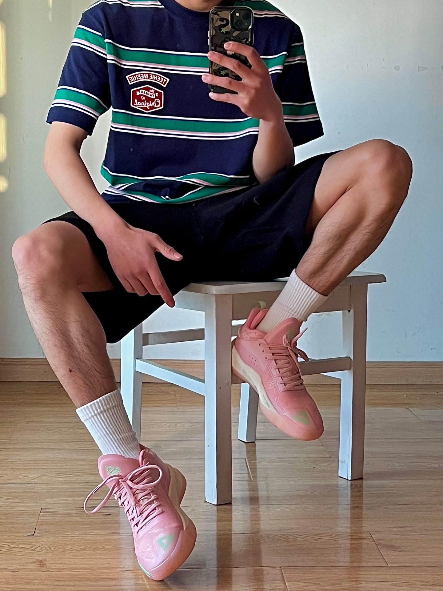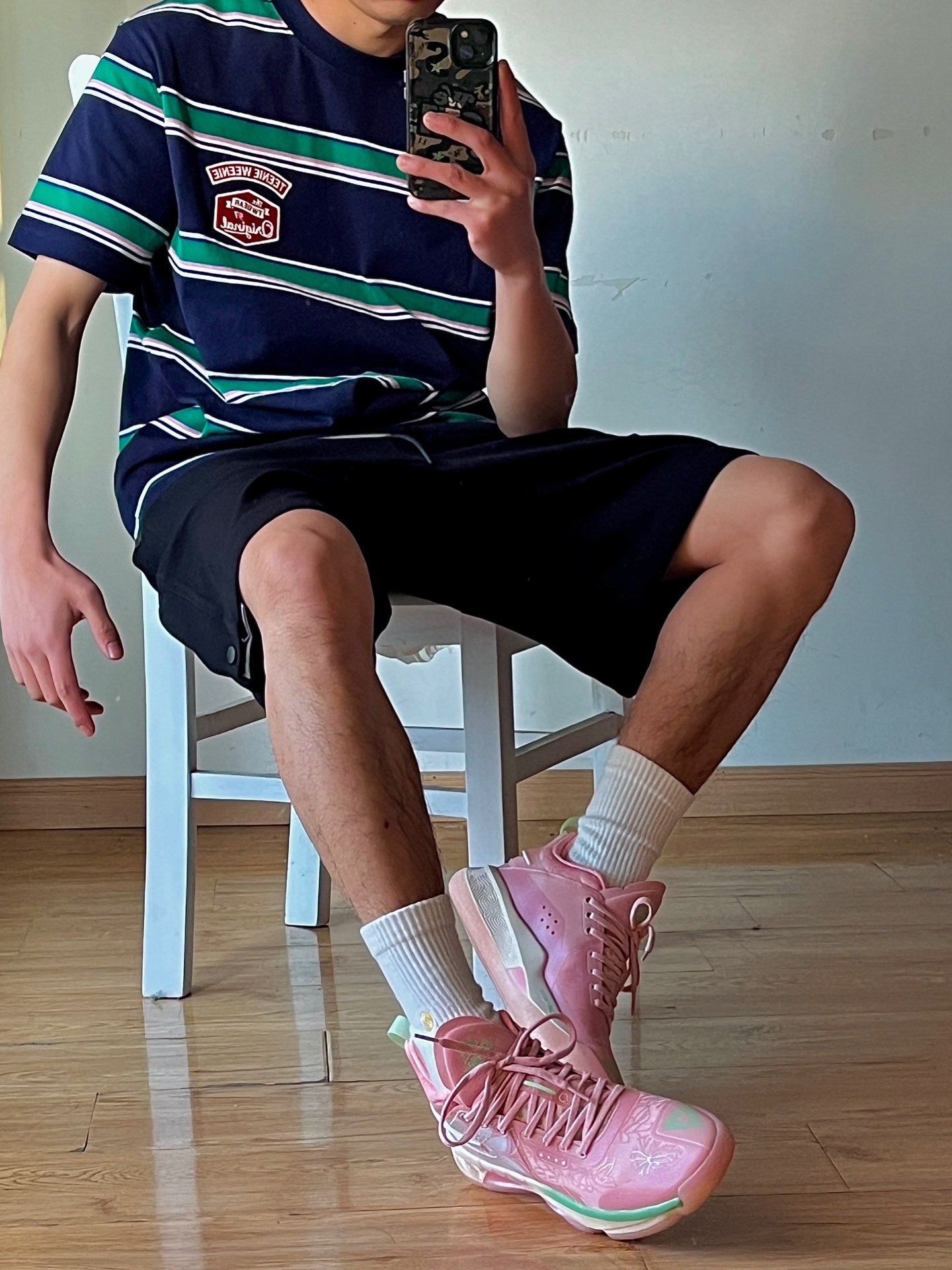 匹克的闪现4代绝对是一双被低估的球鞋,从上市到现在,一直没什么热度,但其实它的做工,质感,以及实战体验都是一双不错的球鞋,想要感受国产匹克球鞋的,可以尝试一下 🏀穿搭分享 今天的一套都来自teenie街舞小熊,黑色的排扣短裤百搭好看,条纹短袖也非常的青春,搭配一双篮球鞋,妥妥的运动校园风!#谁让我是粉鞋控 #匹克