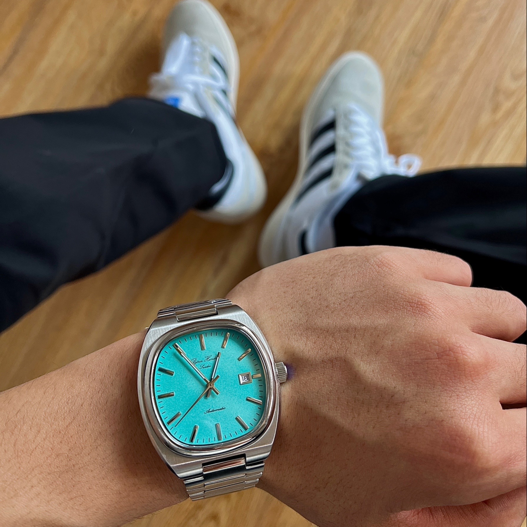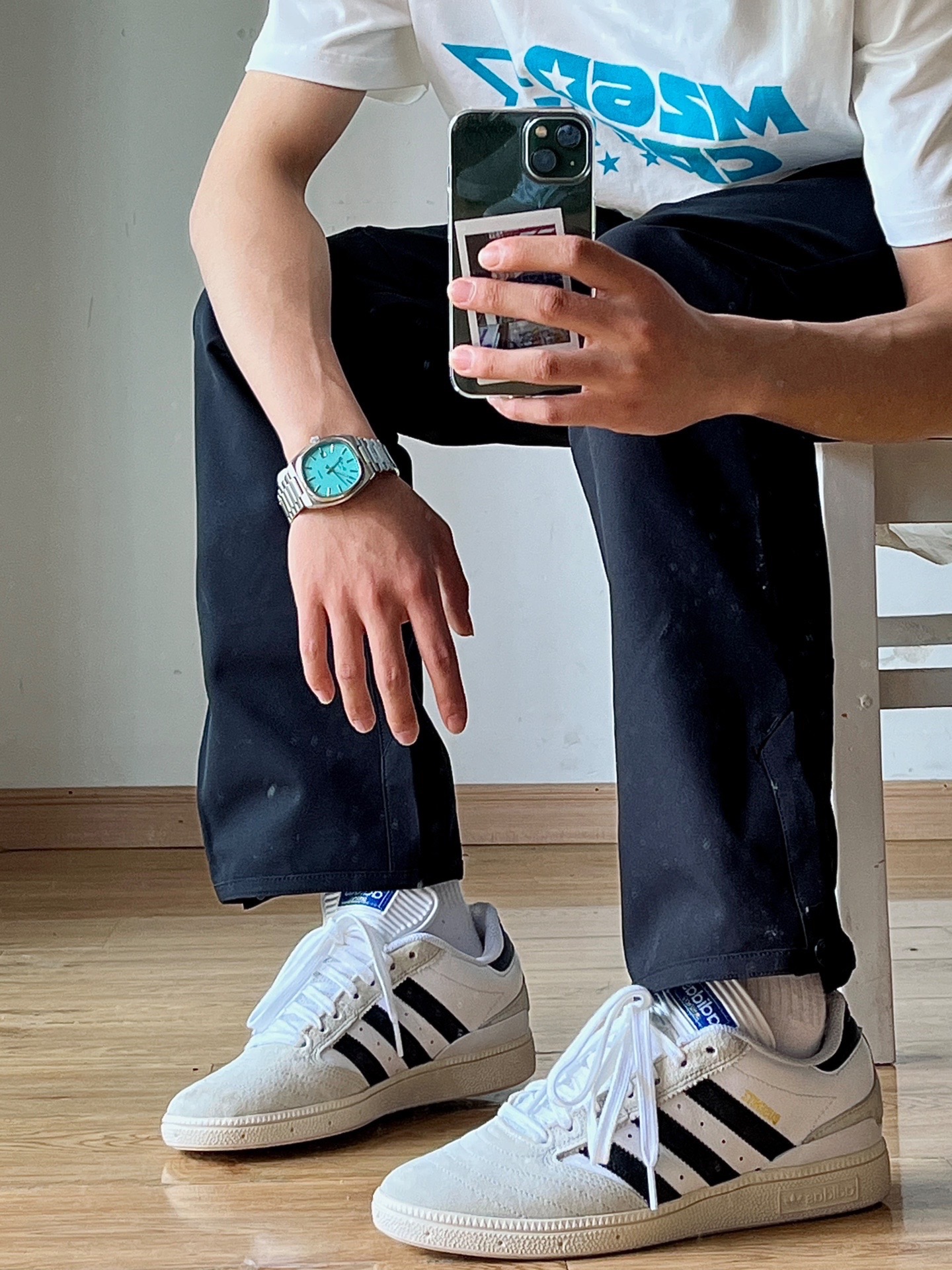 阿迪最近的板鞋真的挺火的,但是动不动就冲千元的价格实在让我们招架不住,可我无意中发现一款宝藏鞋,真的可以完美驾驭任何风格,就是这双busenitz,多种材质的拼接,百搭的鞋型,三叶草系列的高规格,真的是一双穿上就不舍得脱下的好鞋和最主要的价格还很香。 手表推荐:今天佩戴的手表是来自BjornHendal TV系列的腕表,这款最吸引我的地方就是蒂夫尼蓝色的表盘,十分清爽,跟现在的夏天简直是绝配,银...