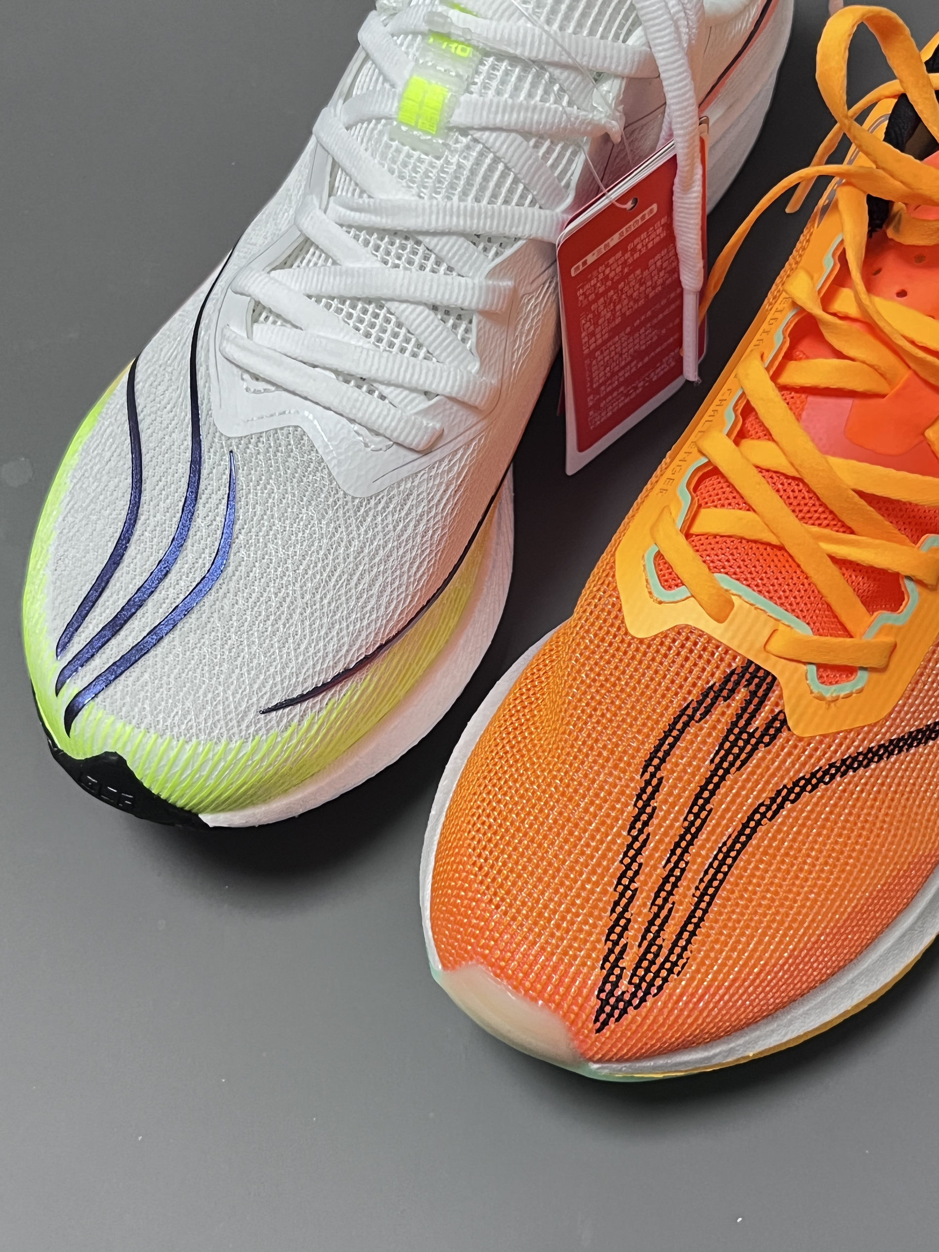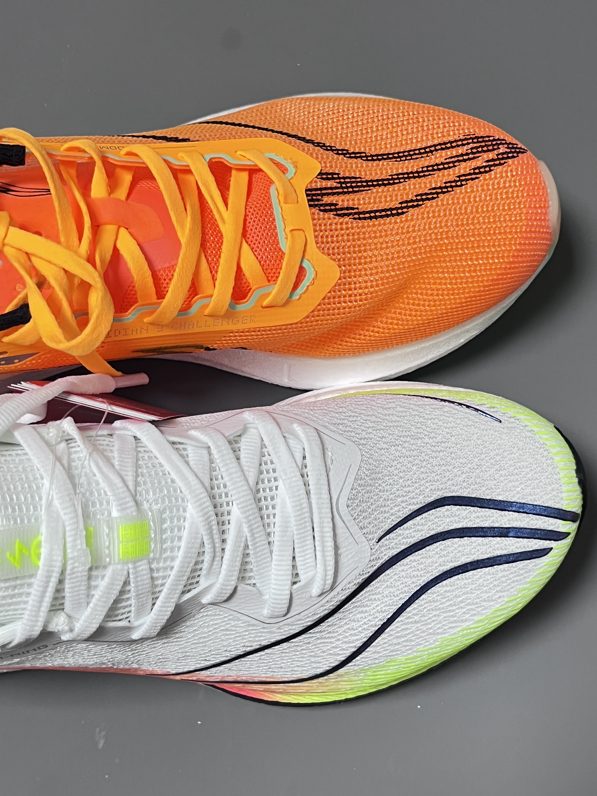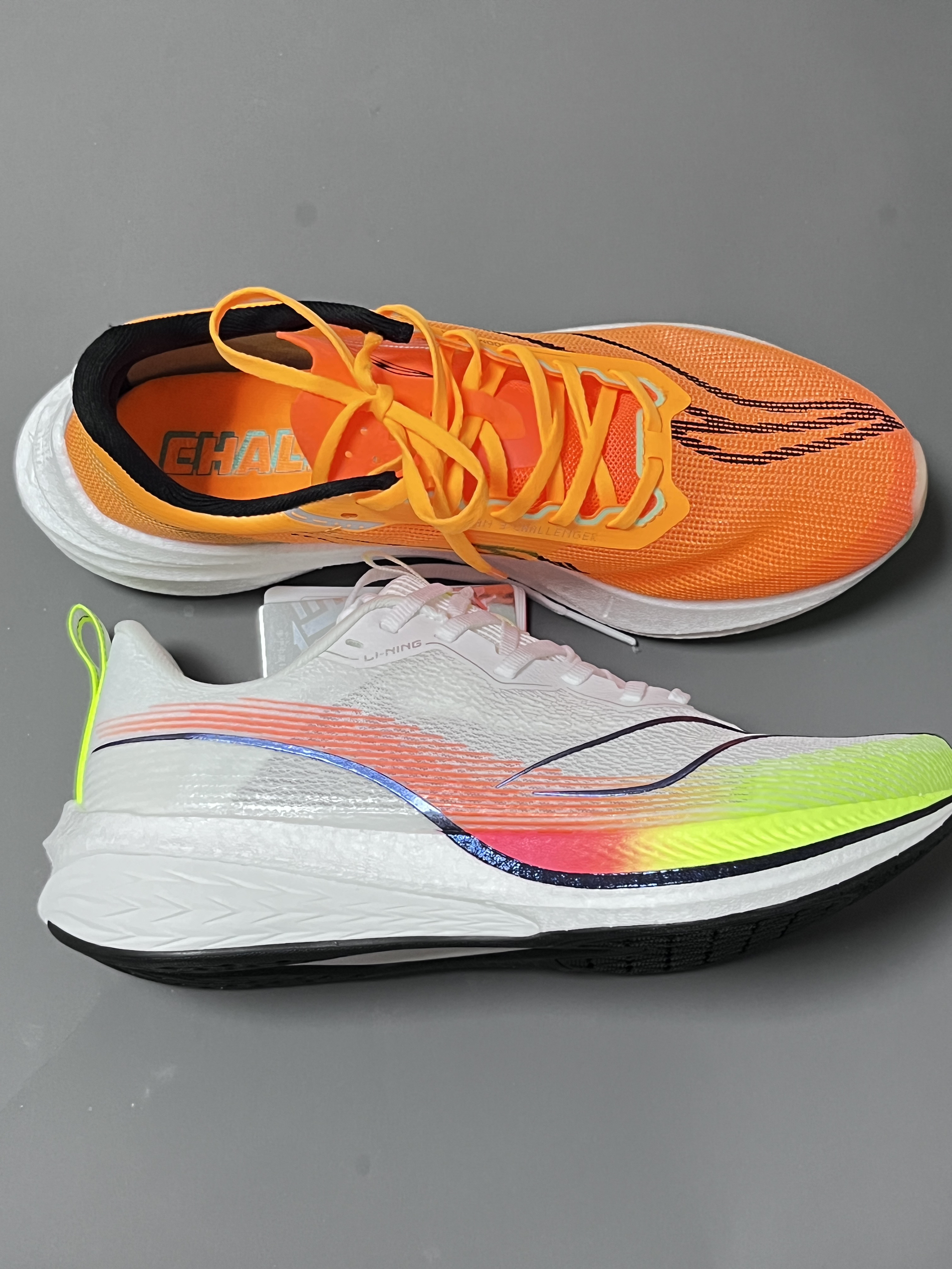 halo 阿迪来了,本期带来两双李宁的高🔥跑鞋,分别是这双赤兔6pro和这双飞电3challenger! 两双鞋不仅颜值高!鞋型看起来也很相似! 接下来我们就来分别看看两双鞋各有啥优势! 首先,说说赤兔6pro:这双鞋想必关注跑鞋的朋友也是都非常熟悉了!鞋型相比与上一代赤兔5pro来说,更加瘦长锋利,有速度感,不过鞋面部分基本没什么变化,赤兔6pro的鞋面和5pro的夏季版是使用一样的同款透气材质...