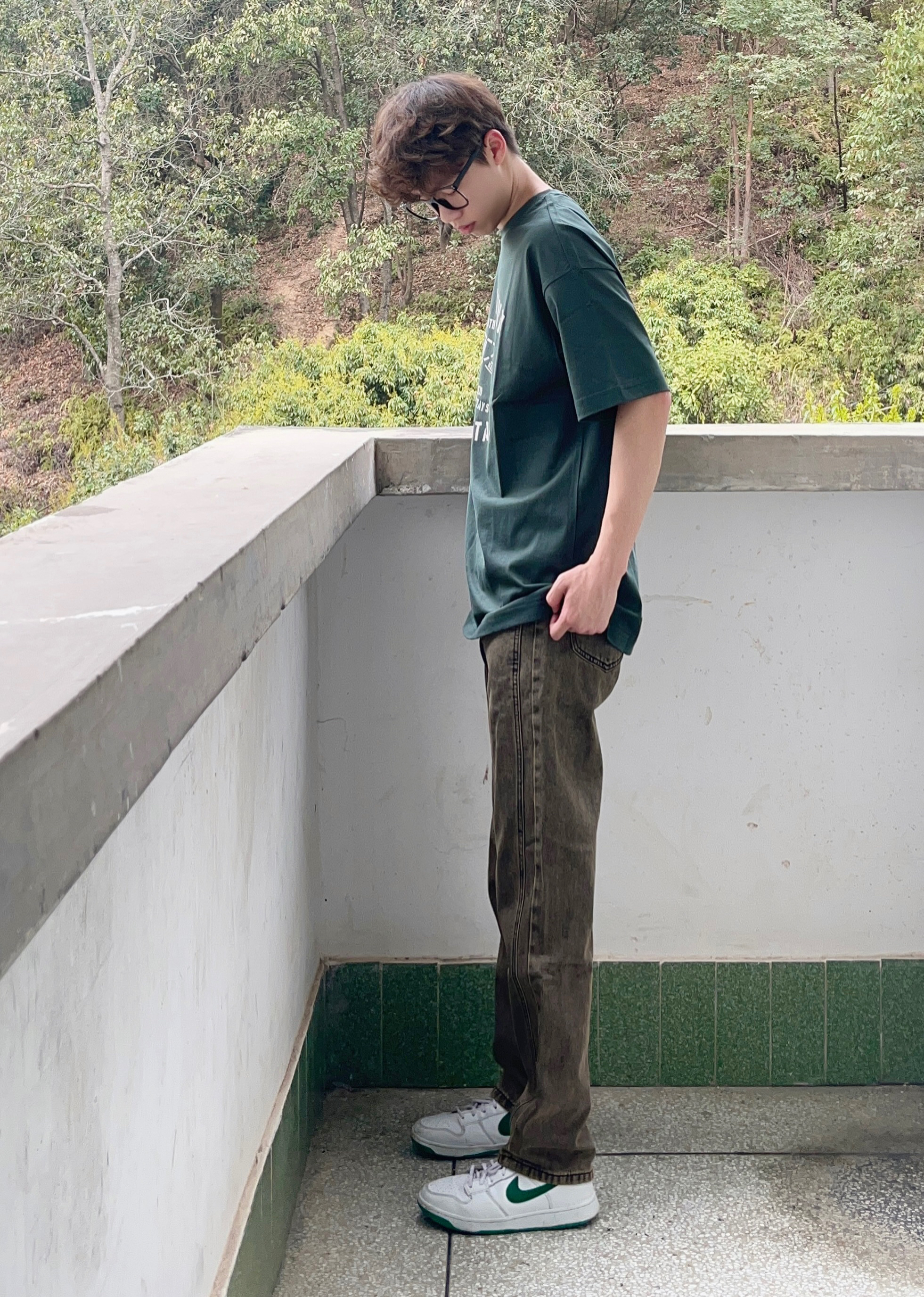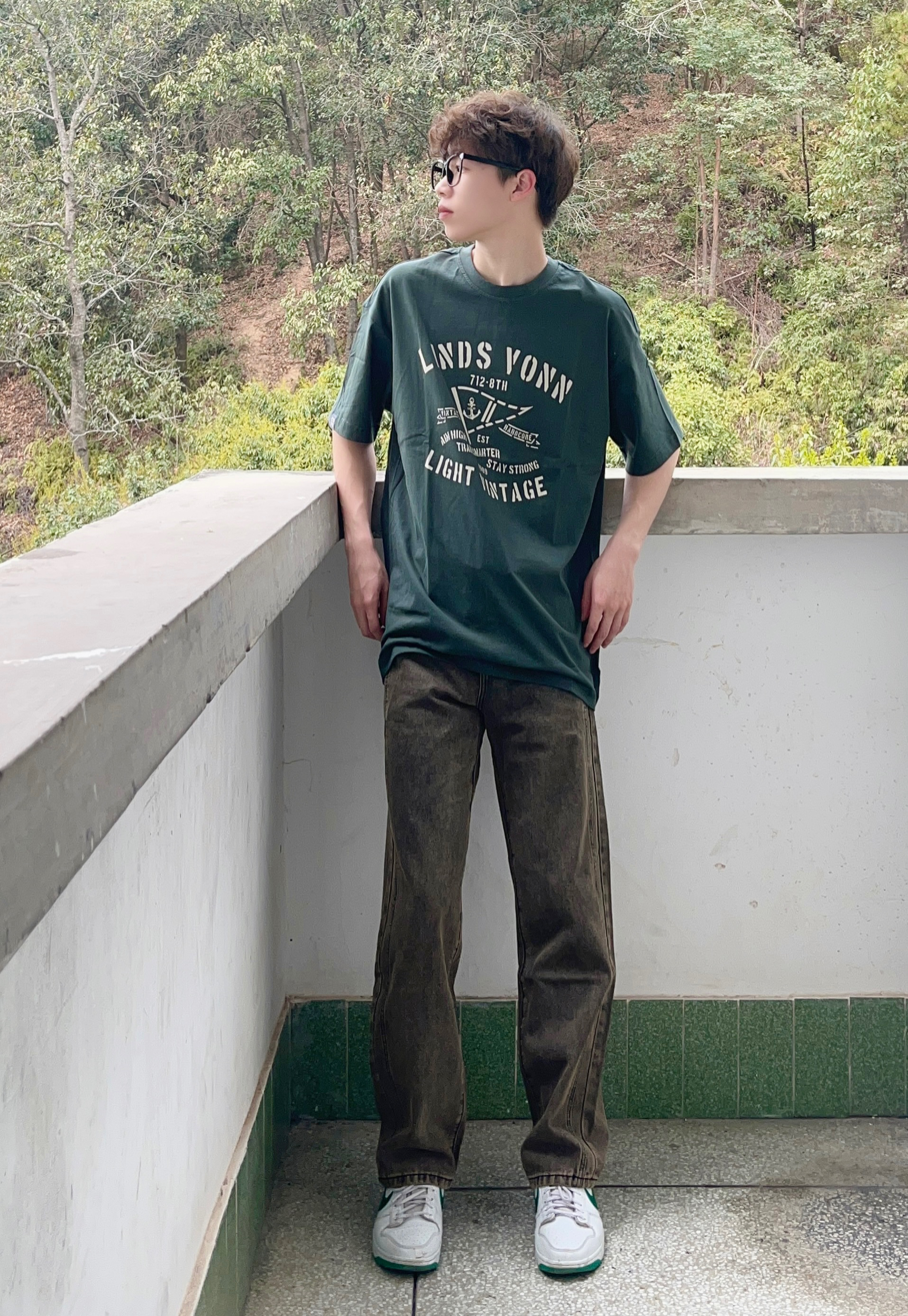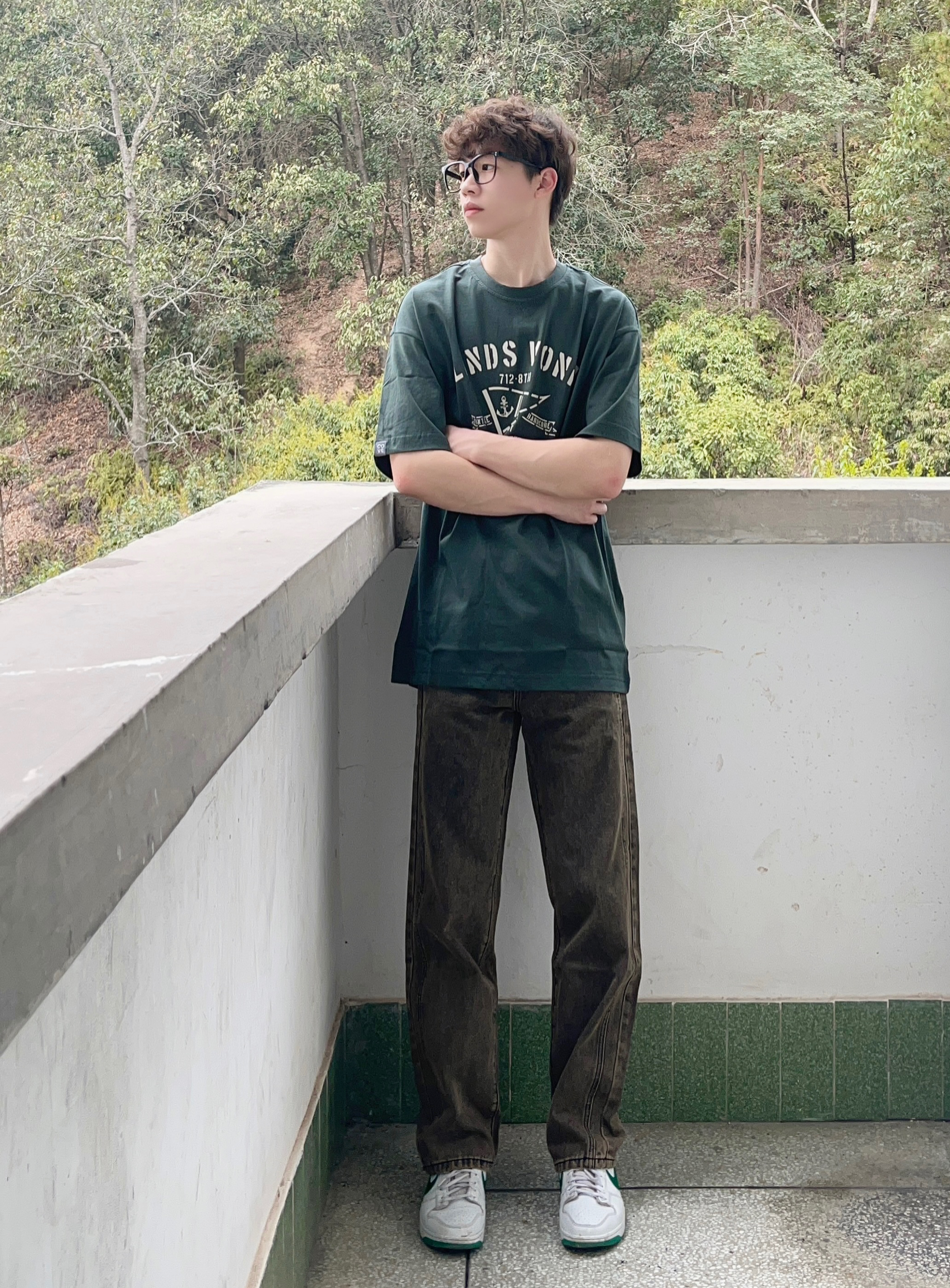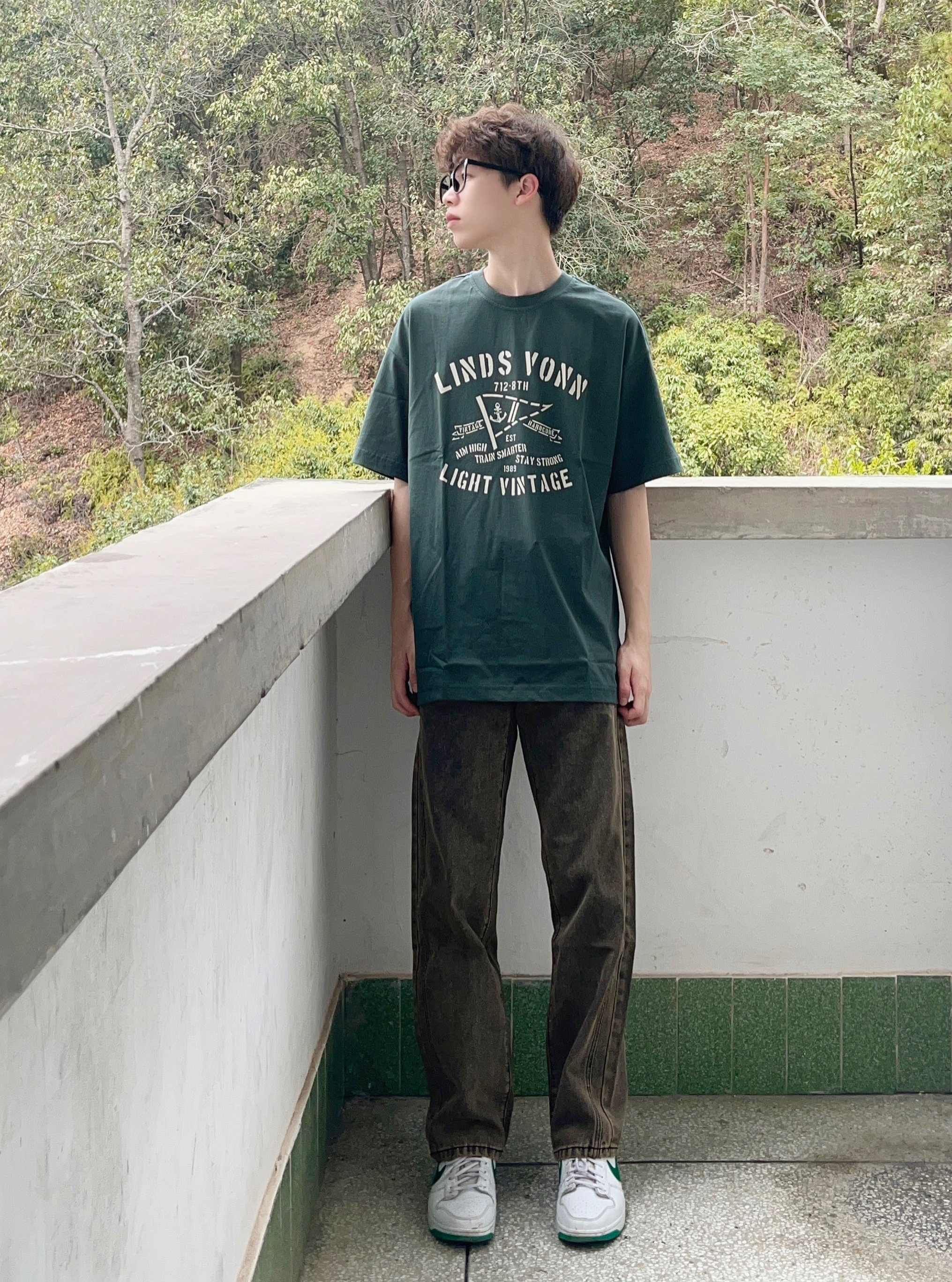 简简单单就是最好看的! 绿色美式短袖+黄泥色牛仔裤 真的巨好看!