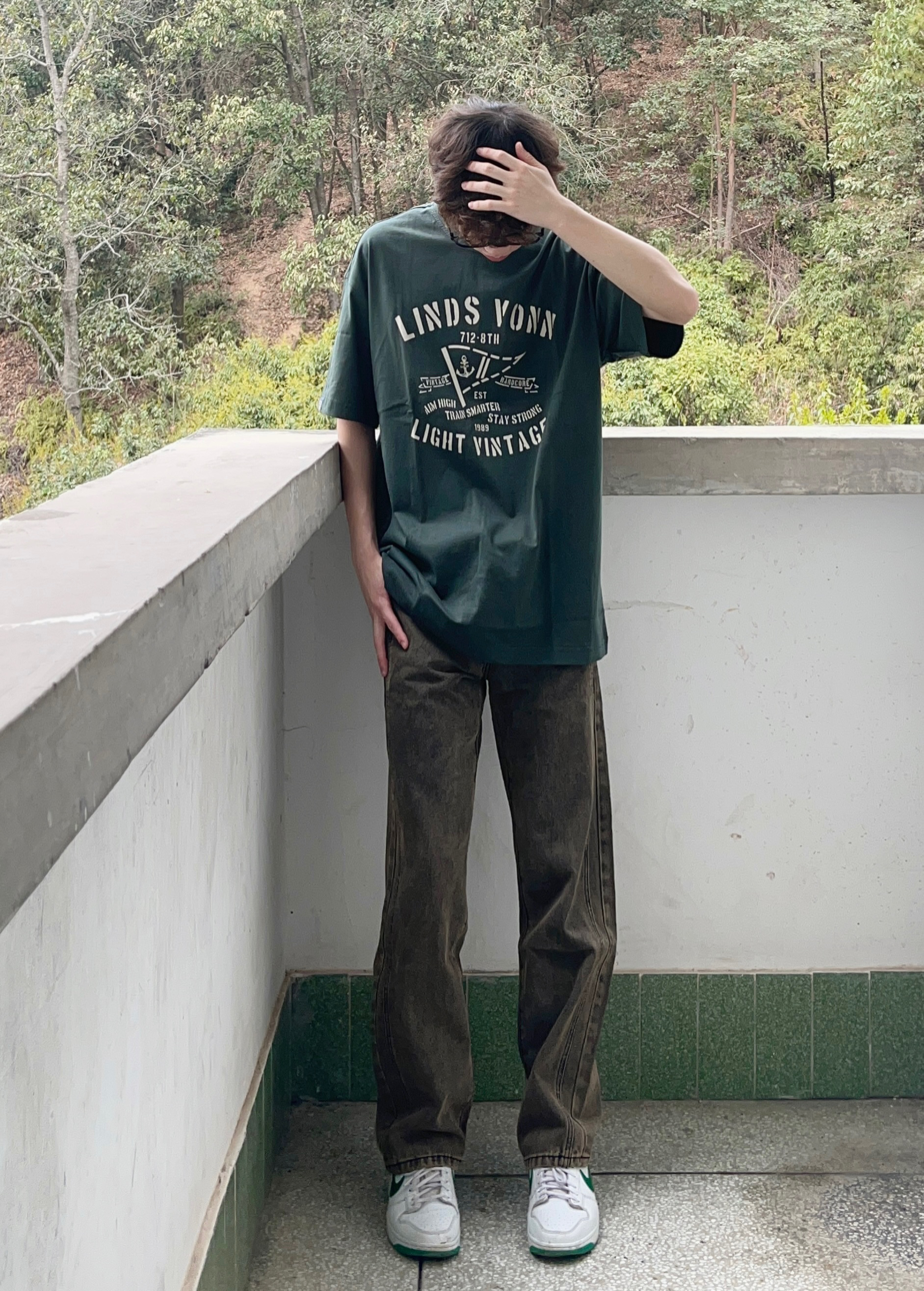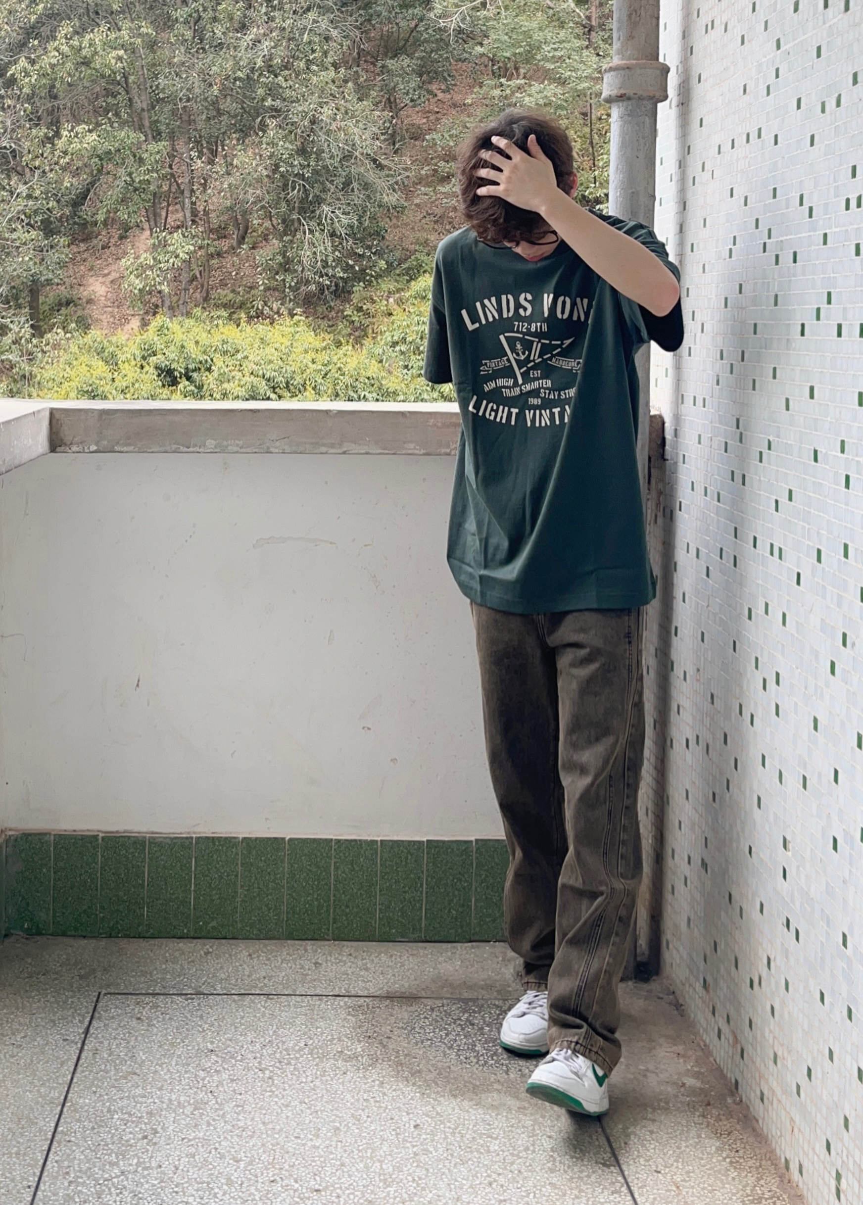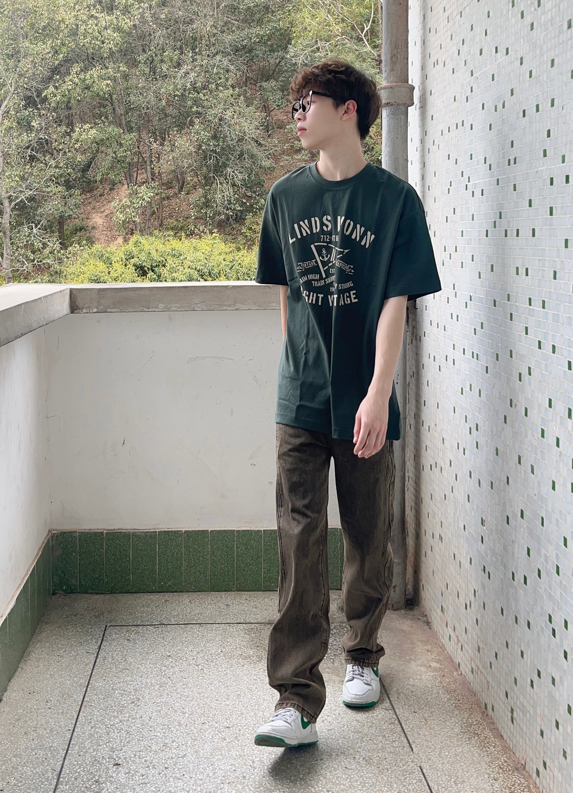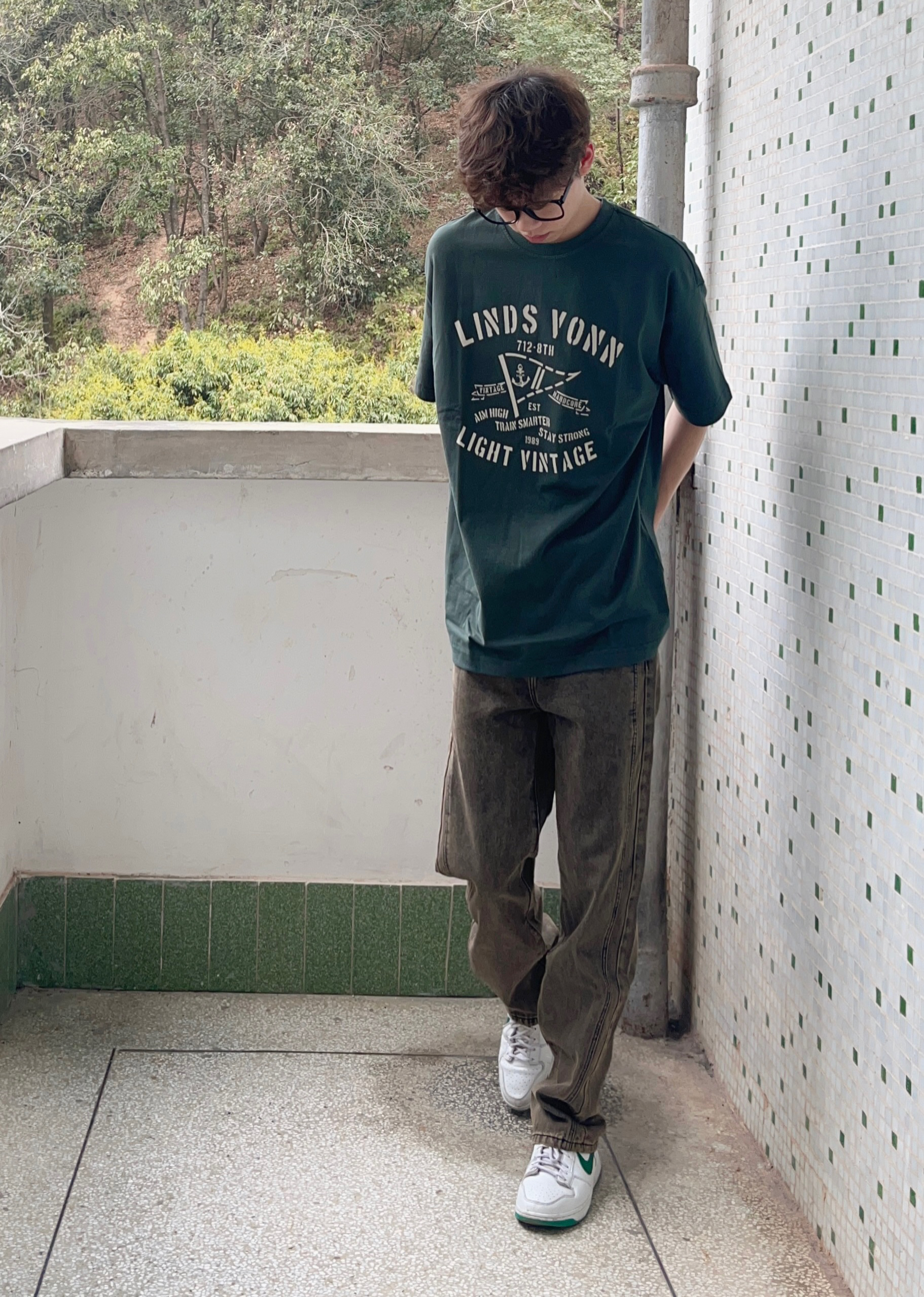 简简单单就是最好看的! 绿色美式短袖+黄泥色牛仔裤 真的巨好看!