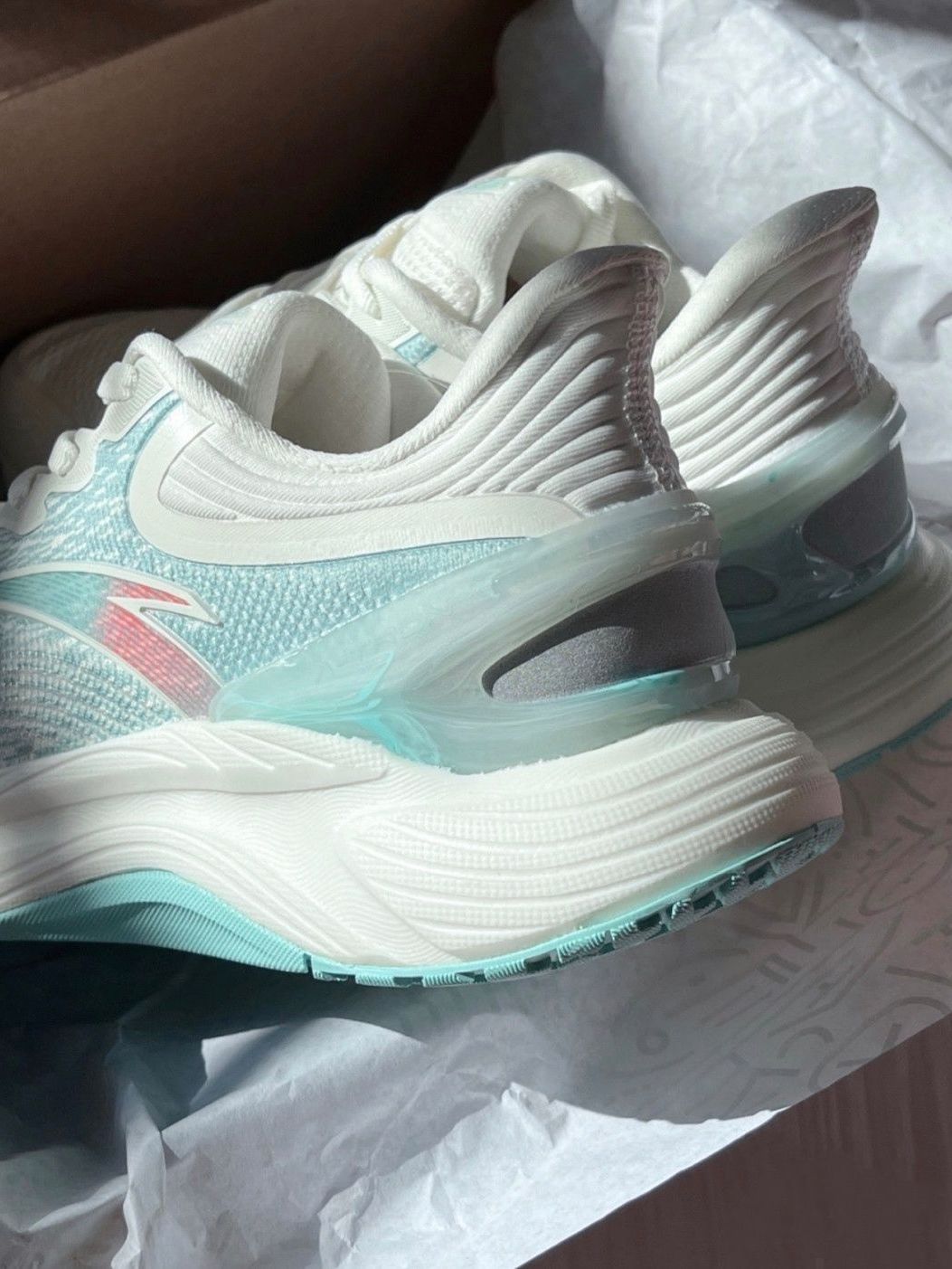 颜值:清新淡雅的蓝绿色,真的很亮眼,安踏的设计师对鞋的鞋底有一种特殊的执念,这个个鞋底配色真的是绝了,男孩女孩都可以轻松驾驭哦。 性能:这款鞋是安踏的创3.0系列,因为是三代,所以开发技术已经较为成熟,回弹和减震功能都是不错的,上脚你才知道有多香。😎😎😎 性价比:性价比真的很高,200价位中的跑鞋档中还是很不错的选择,所以还算OK,总之,还是那句话,喜欢>一切,自己喜欢...