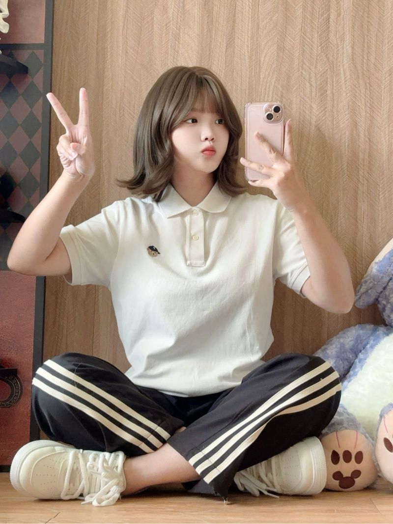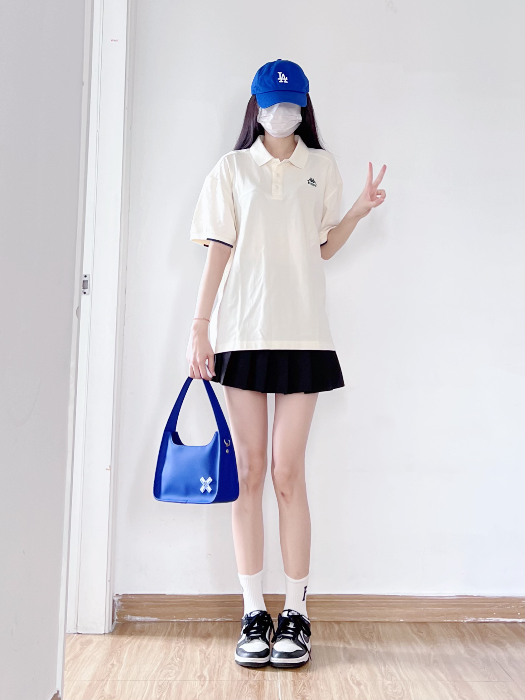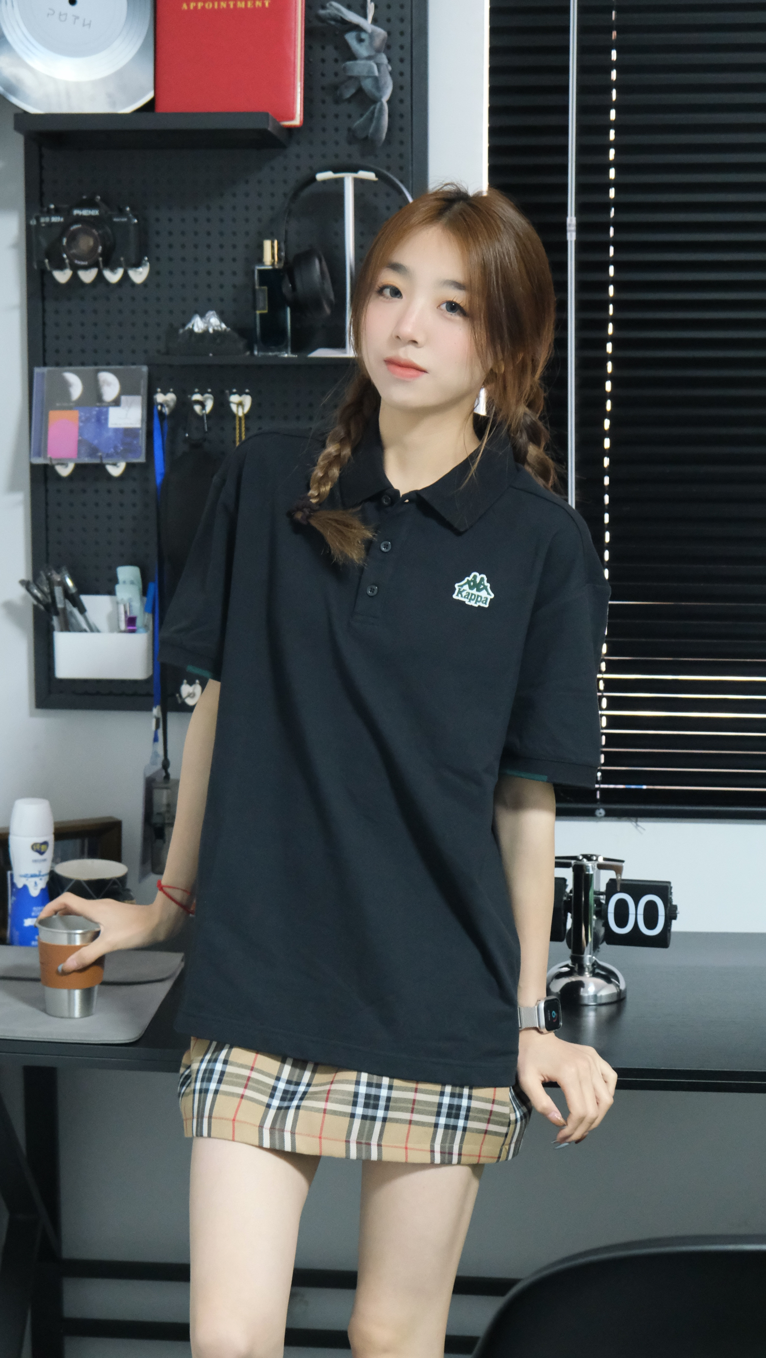 Halo!这里是小铭同学的穿搭分享频道口 身高:168 体重:44 风格:日系/街头/潮流 如果不知道穿什么的吋候就迭挃黑色♥吧~ 黑色的polo衫搭配格子裙好少女令诶~ 轻薄透气 搭配裙子裤子都很奈斯! 黑色系就很日常百搭!!
