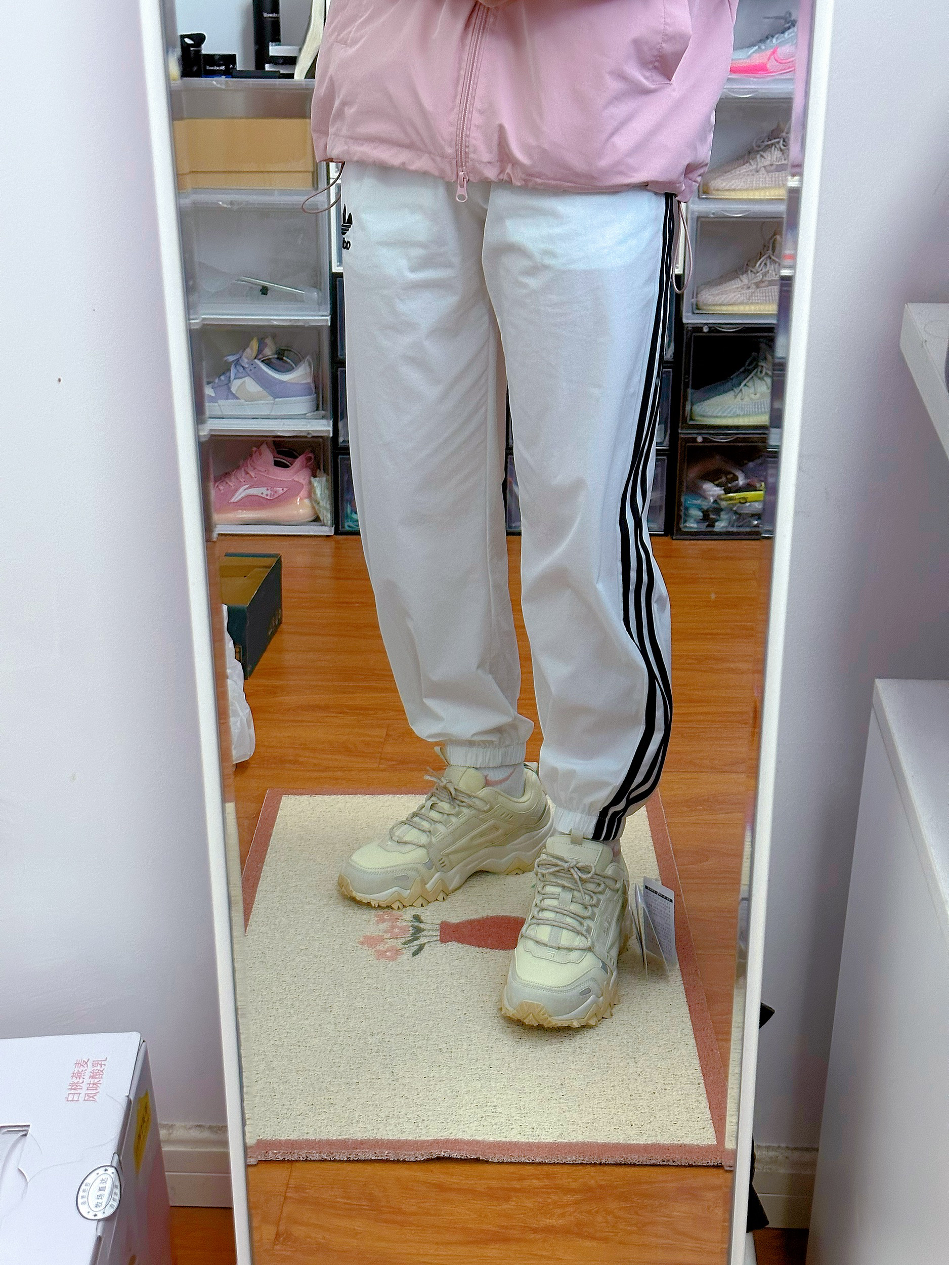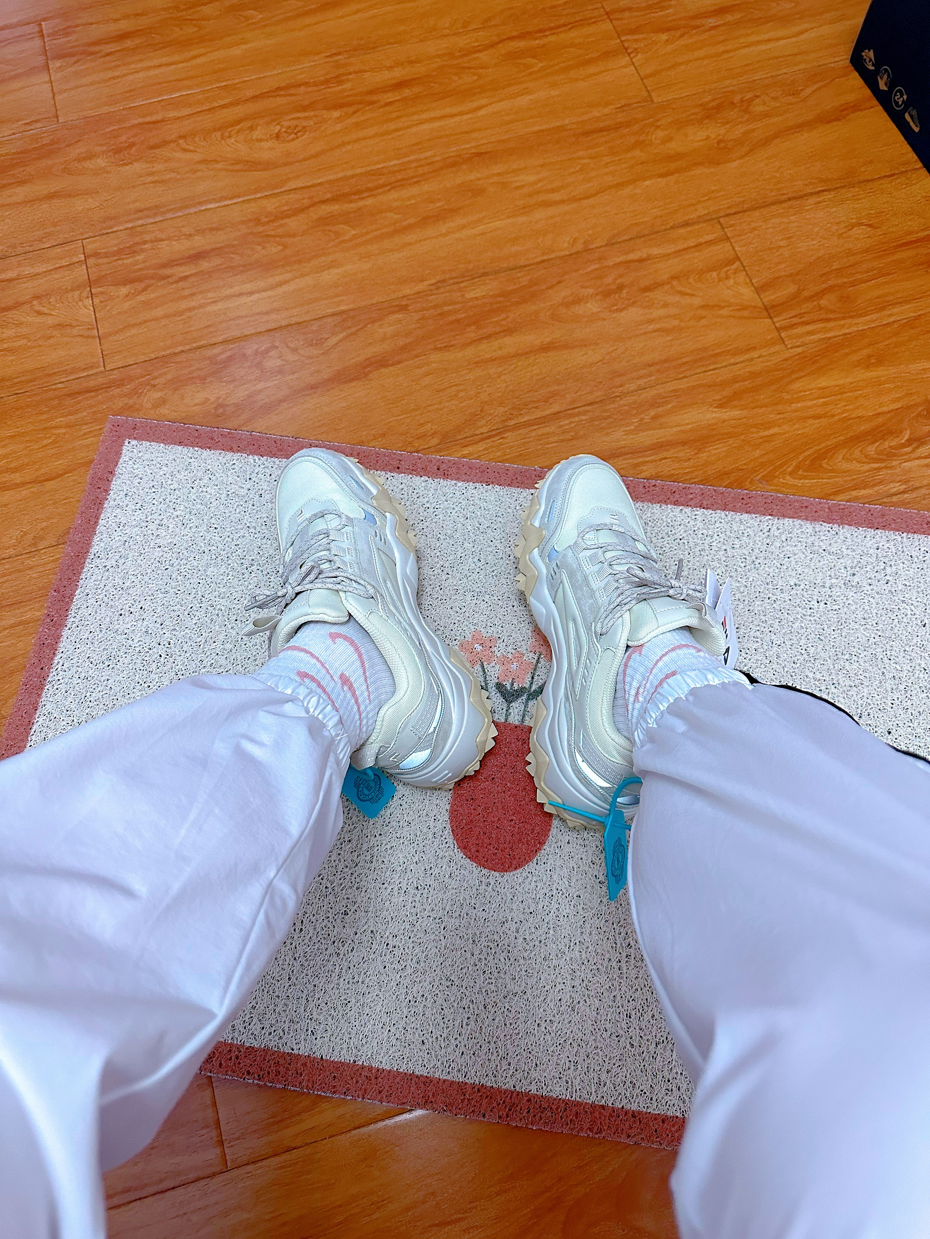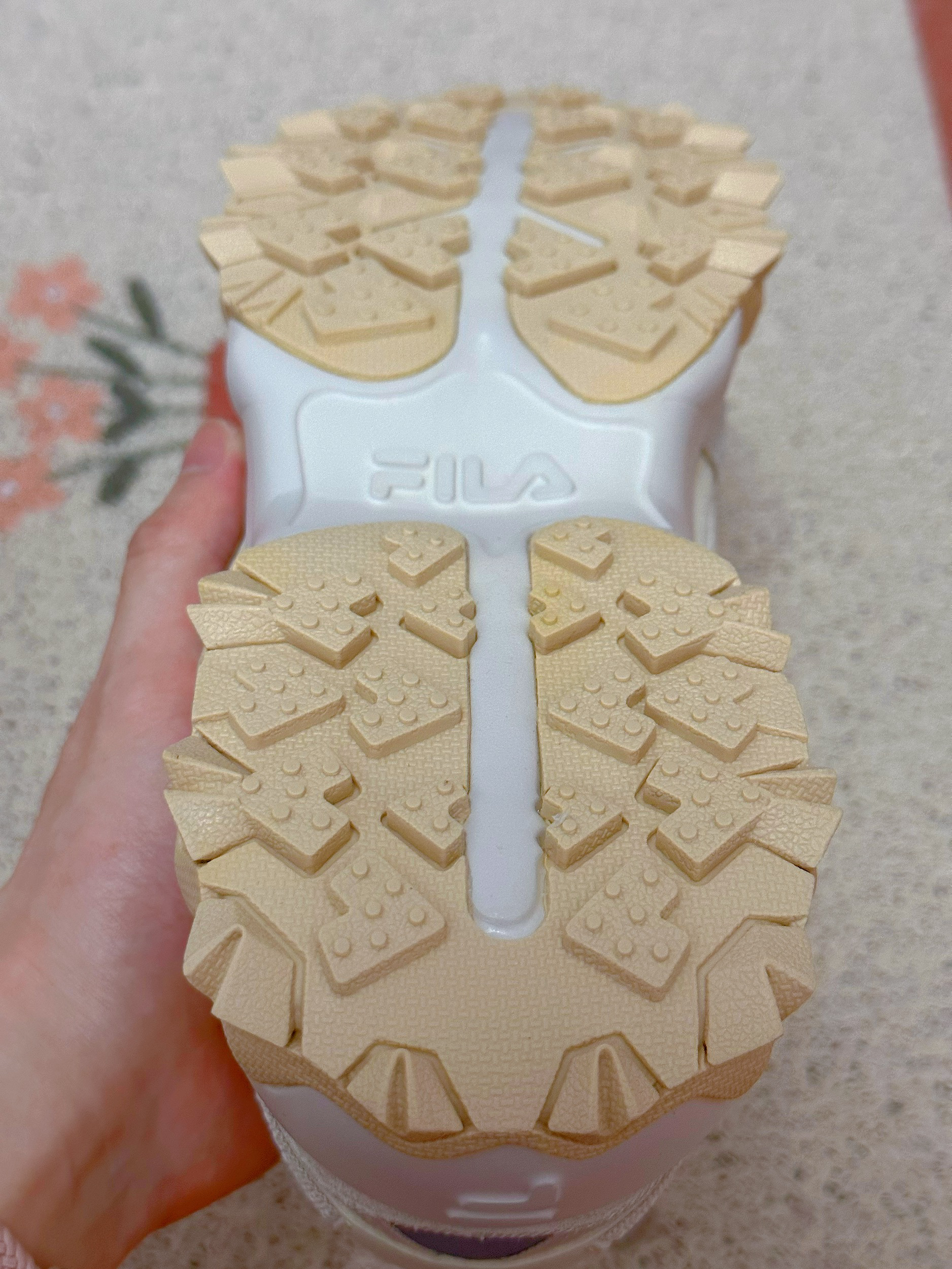 鞋子整体是白色、米白色调,属实好看百搭 鞋底有很多凸起纹路防滑,而且还有略微增高效果 鞋后跟和前面两侧有小部分反光条设计 脚感舒适,正常尺码拍