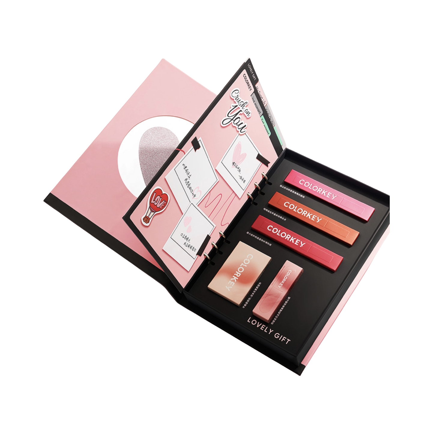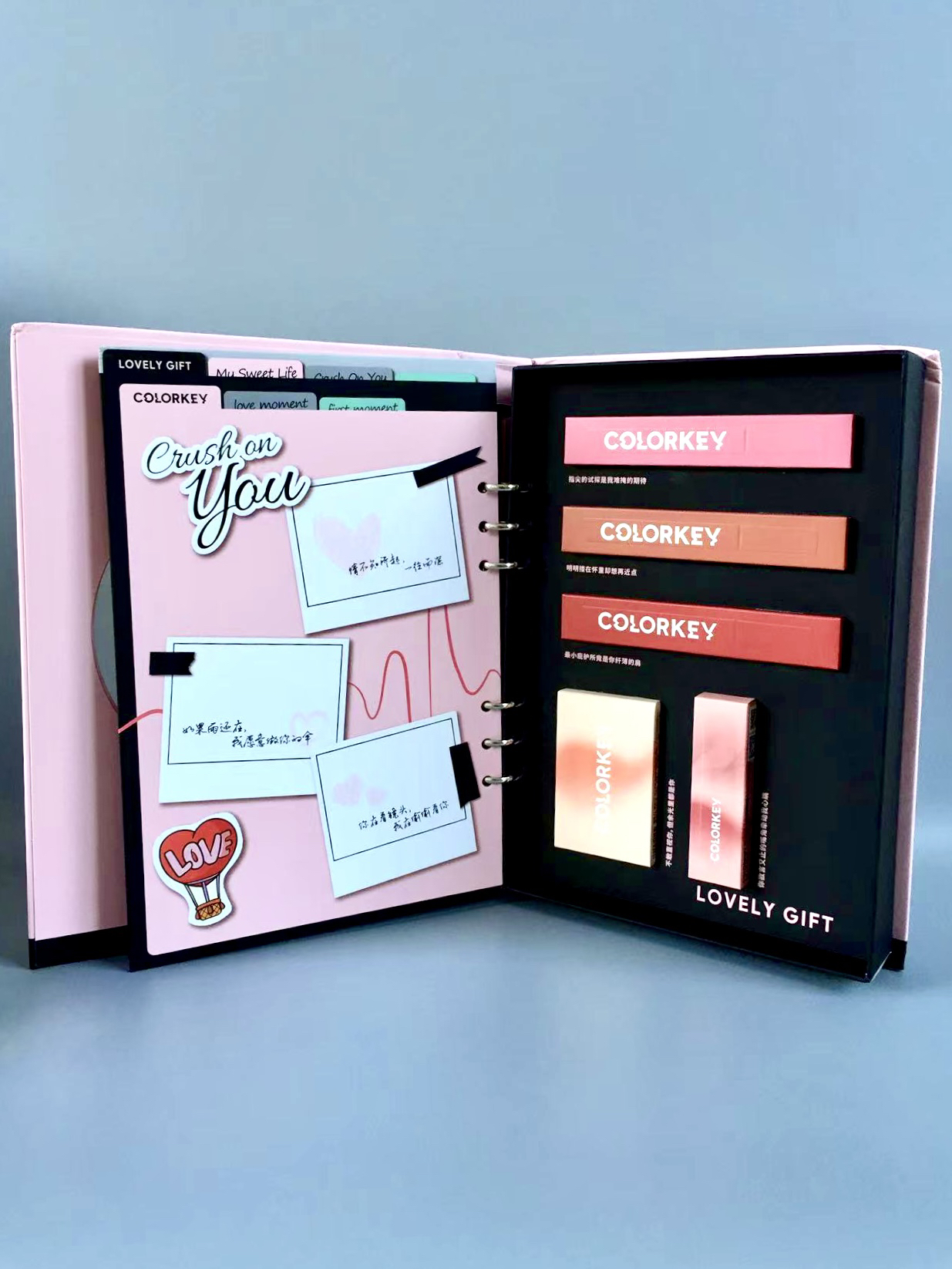 这个礼物直接拿捏到我了,也太懂我了🙋 黑粉搭配,甜酷那感觉马上就上来了,手帐设计真的无法拒绝👍 三支空气唇釉+一支小彩蛋唇泥,还有一个怎么搭配都不会出错的眼影盘▶️都是日常通勤能用得到的,颜色也都很正常(男朋友用于不送死亡芭比粉+魅力荧光粉了+血盆大口红了)真的深得我心🌟 试问谁会不心动啊💫