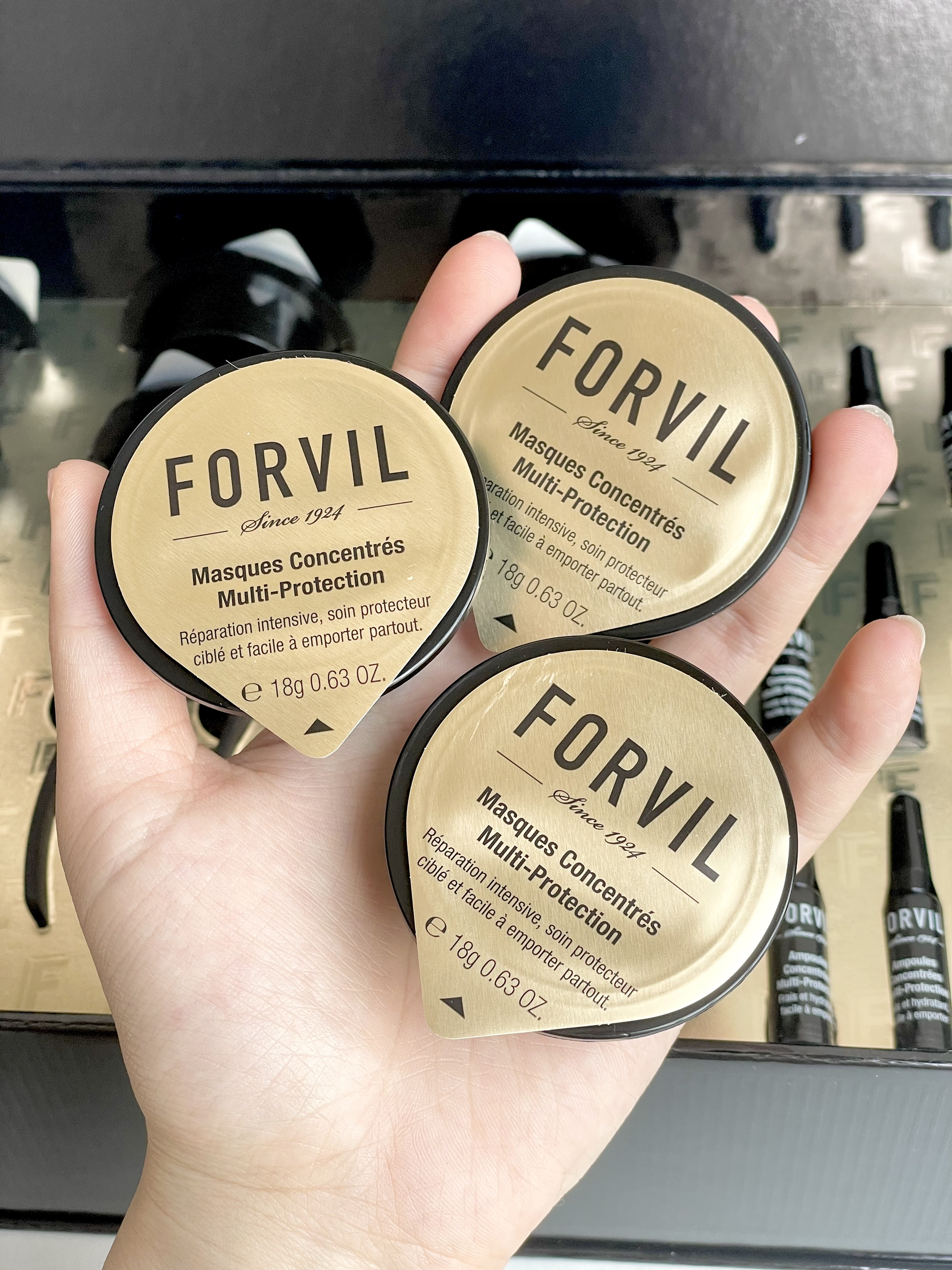 前段时间妈妈总说她头发干枯还容易打结 趁着母亲节给她准备了一套 ✨FORVIL温莎森林鱼子酱安瓶发膜 包装很高级👍🏻👍🏻 发膜和精华是分开的 使用前需要把安瓶精华倒在发膜里搅拌好了之后再用 妈妈收到之后用了感觉很不错 发质都变好了 头发也比之前柔顺了!!