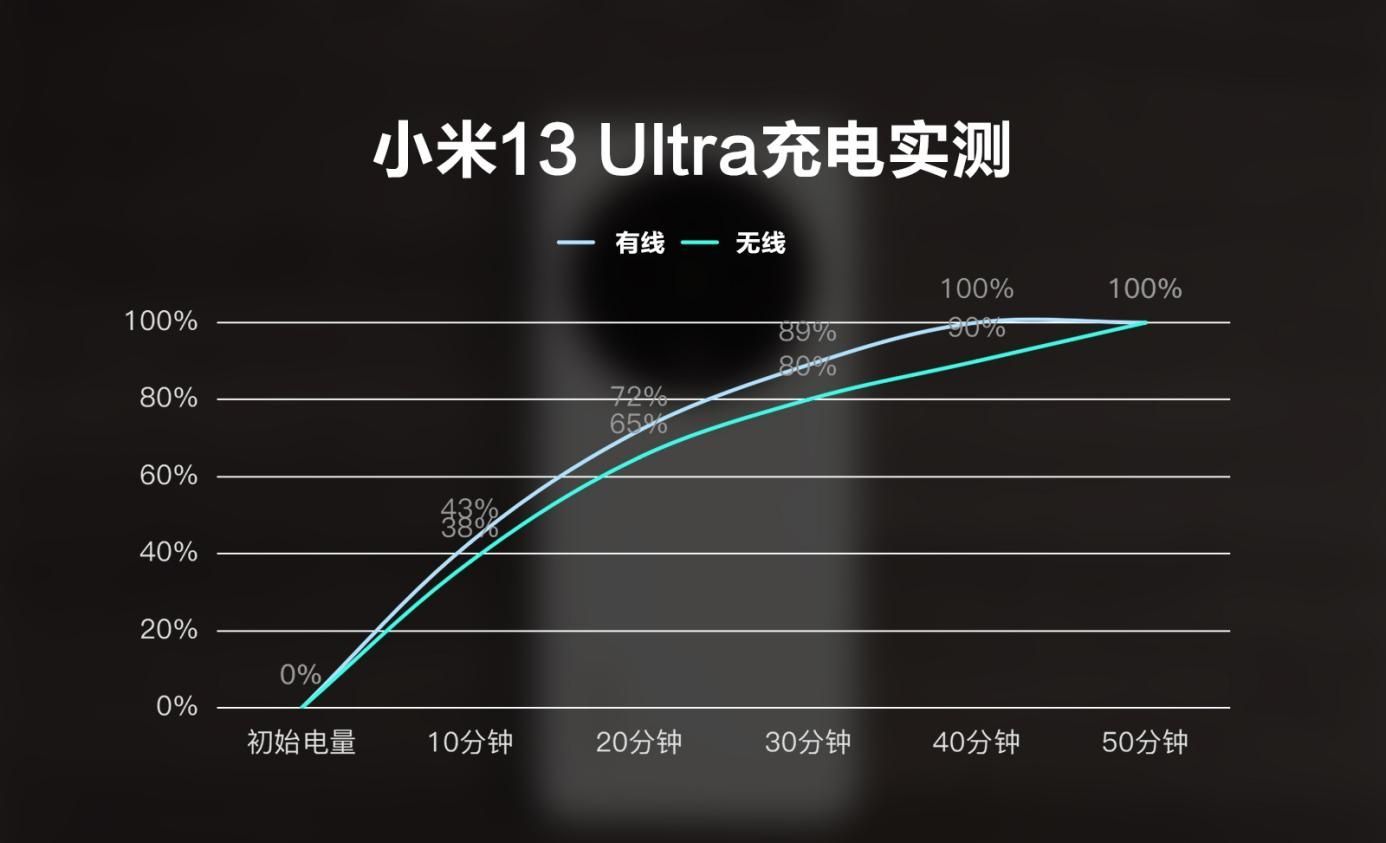 在充电方面,同样是25℃的室温环境,有线状况下,37分钟从0%充到100%,无线状况下,50分钟充到100%。