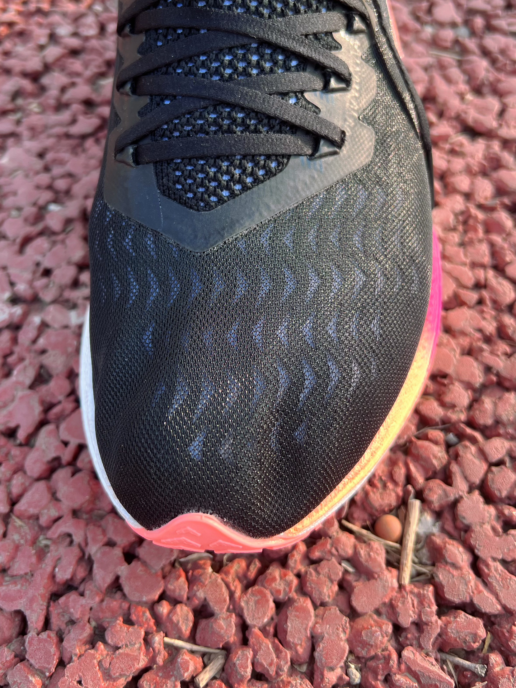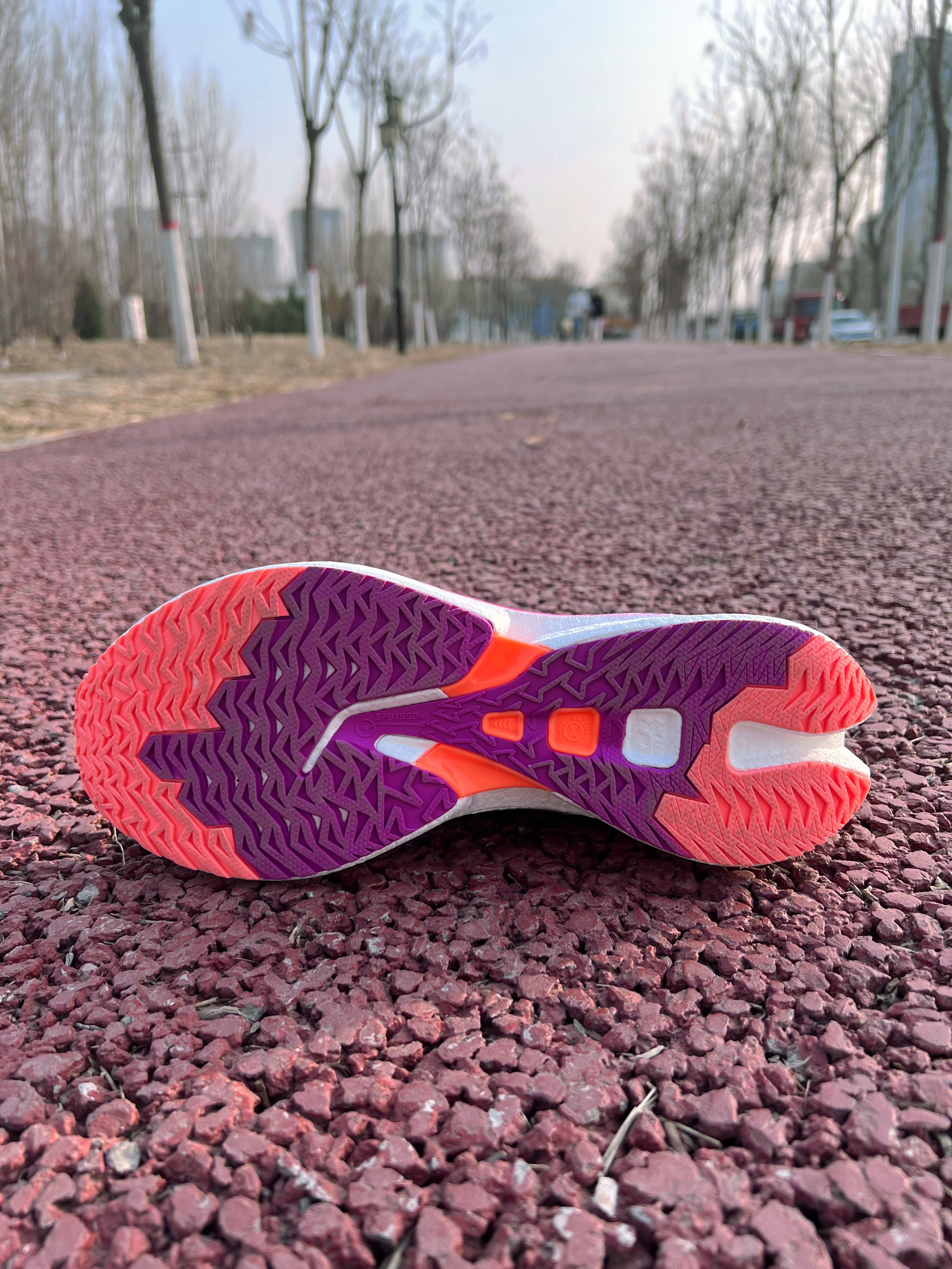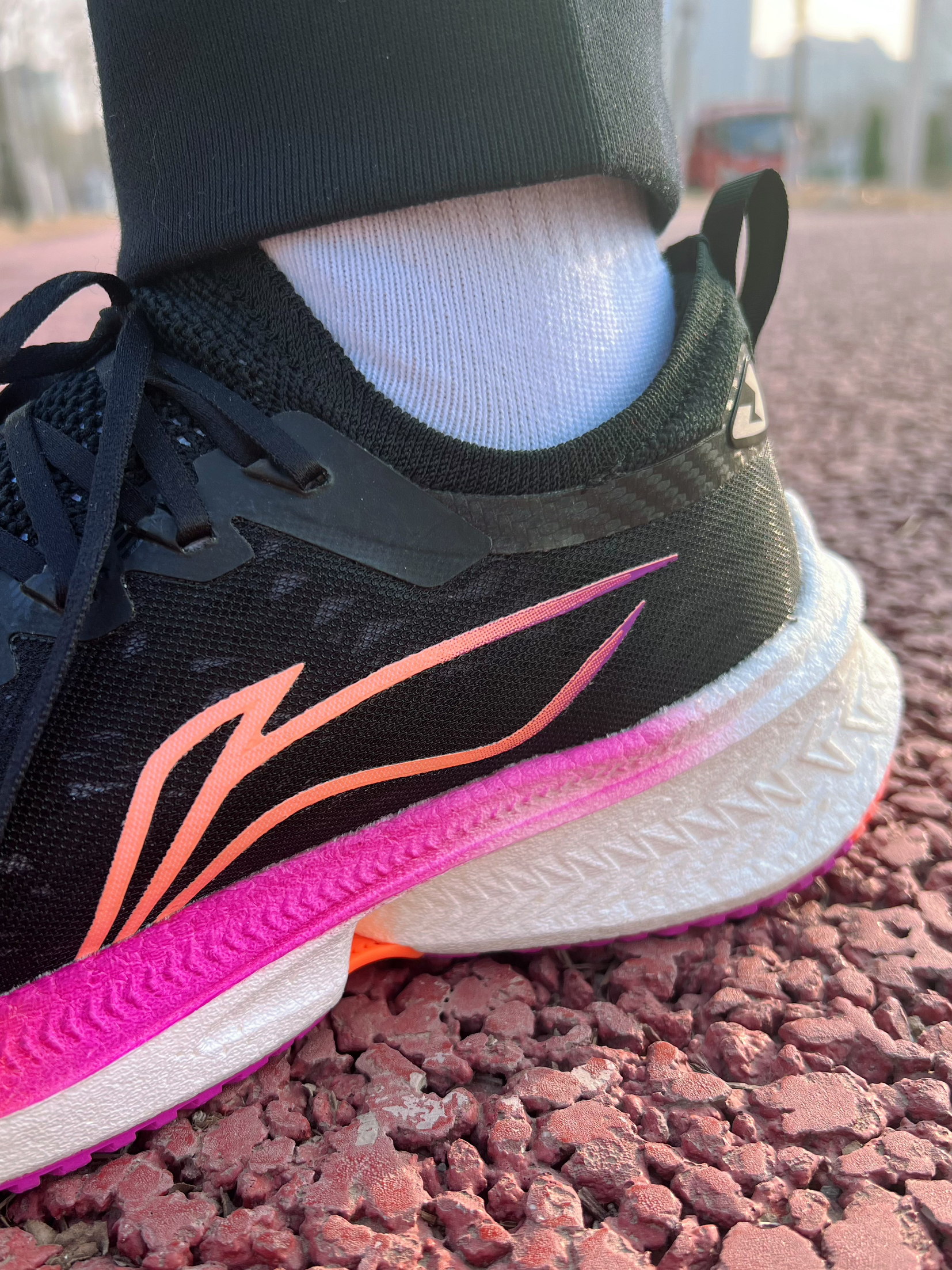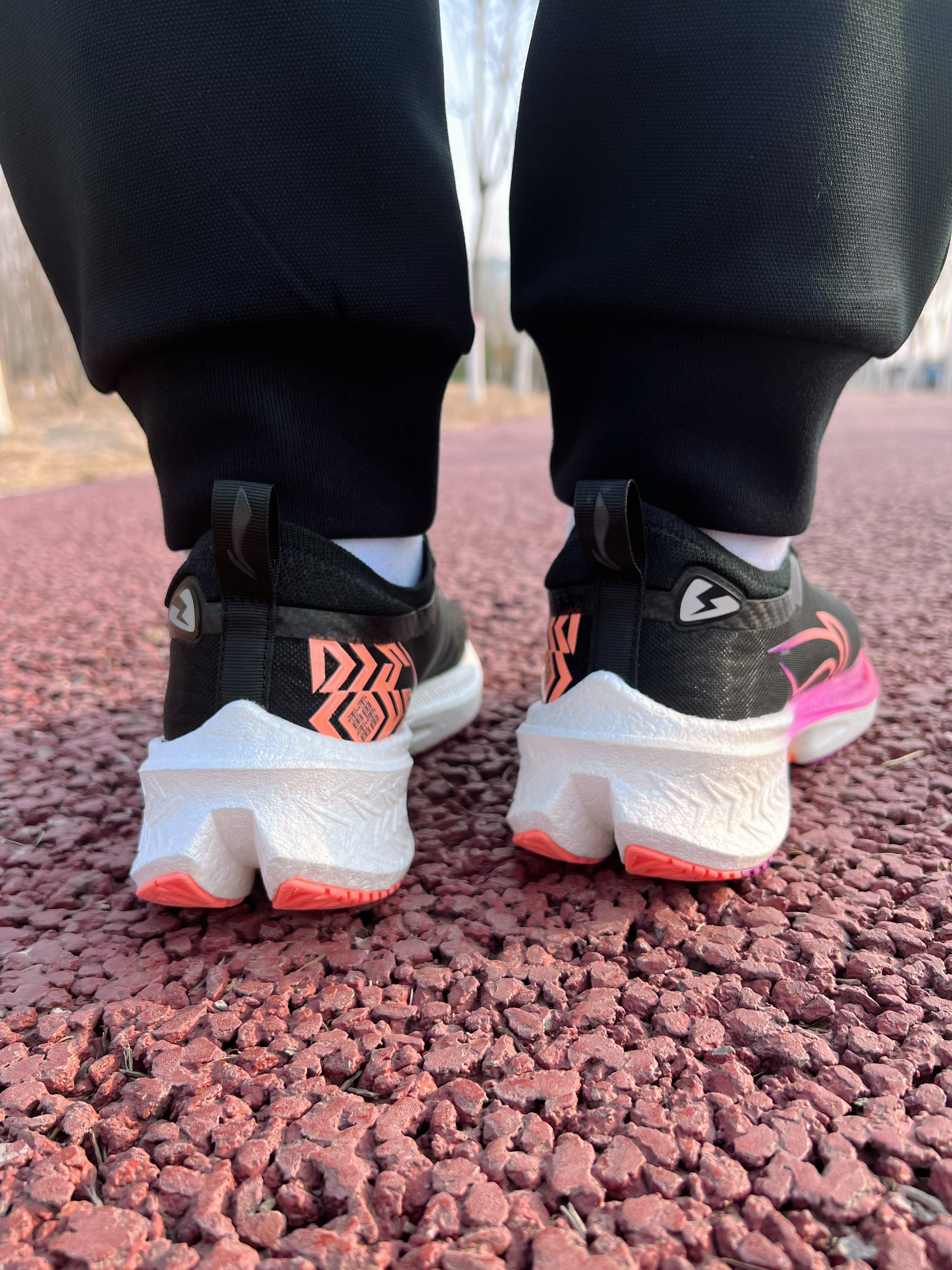 小飞电的实战测评,接下来通过几个方面聊一下我的上脚体验 在颜值方面,我觉得谈不上好看,算是一般吧! 在包裹方面,这双鞋依然延续飞电家族的一体袜套设计,非常的有弹性,带来的是一种极致包裹体验,对宽脚或者胖脚来说是不太友好,跑起来会有明显的勒脚感觉,如果是宽脚或者胖脚的朋友,建议先去试穿在考虑入手。 在透气性方面,这大网眼是真的很哇塞,同时也兼具支撑和包裹,33度的天气里跑起来还能感觉有风在穿梭...