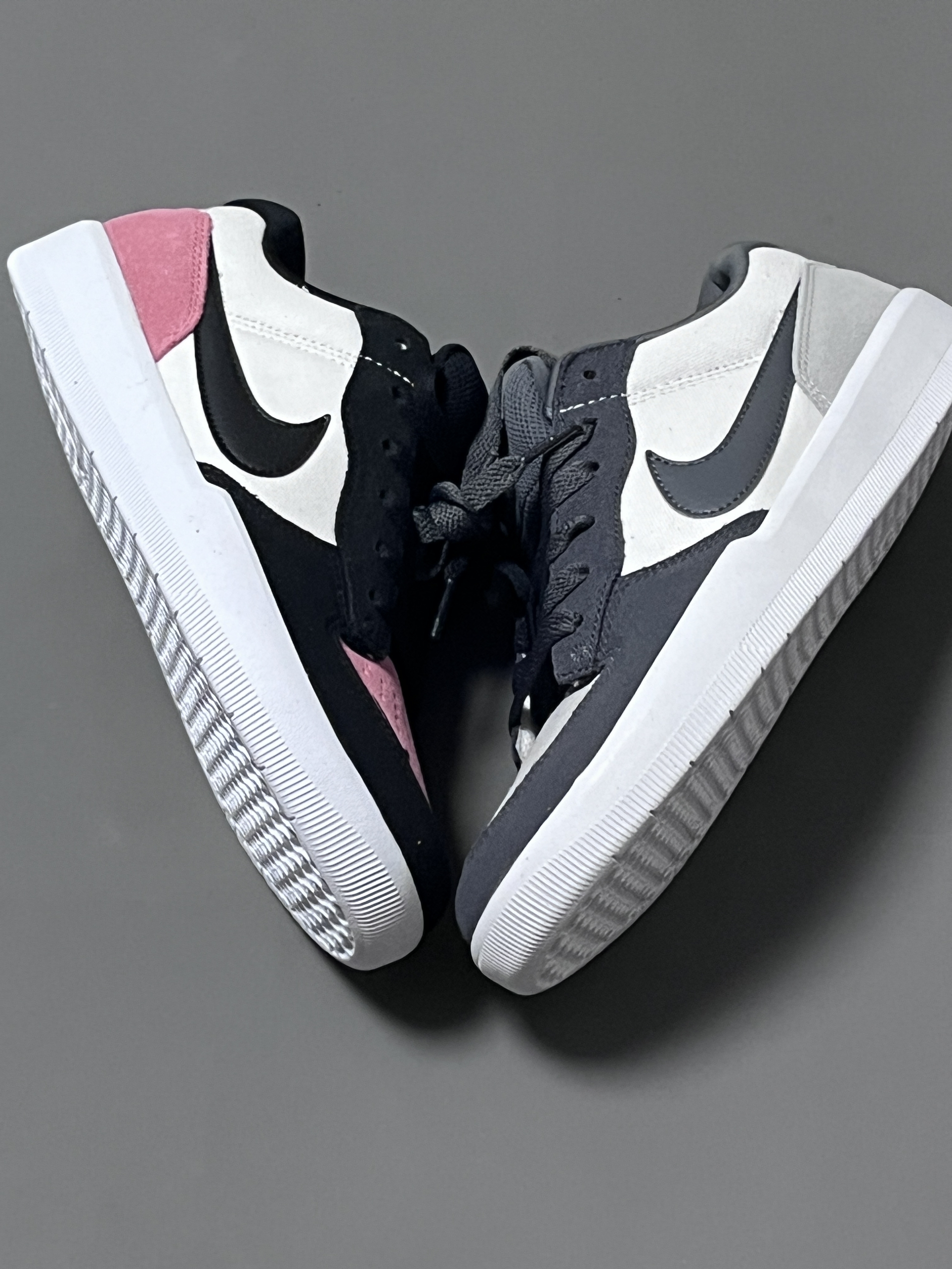 halo 阿迪来了,马上就到520了,本期为各位潮人带来两双情侣好鞋!没错,就是这两双Nike SB Force 58“黑灰”和“黑粉” 首先,我们先说说这双“黑粉”非常经典耐看!特别适合酷酷的小姐姐! 柔软翻毛皮和织物组成的鞋面,侧边大钩,鞋头精致刺绣小钩,藕粉色男生穿也很帅, 加厚的鞋舌舒适贴合,鞋头打孔透气设计,弹性内衬包裹住,耐穿的硫化鞋底。 而另一双“黑灰”整双鞋采用包边设计,经久耐穿,...