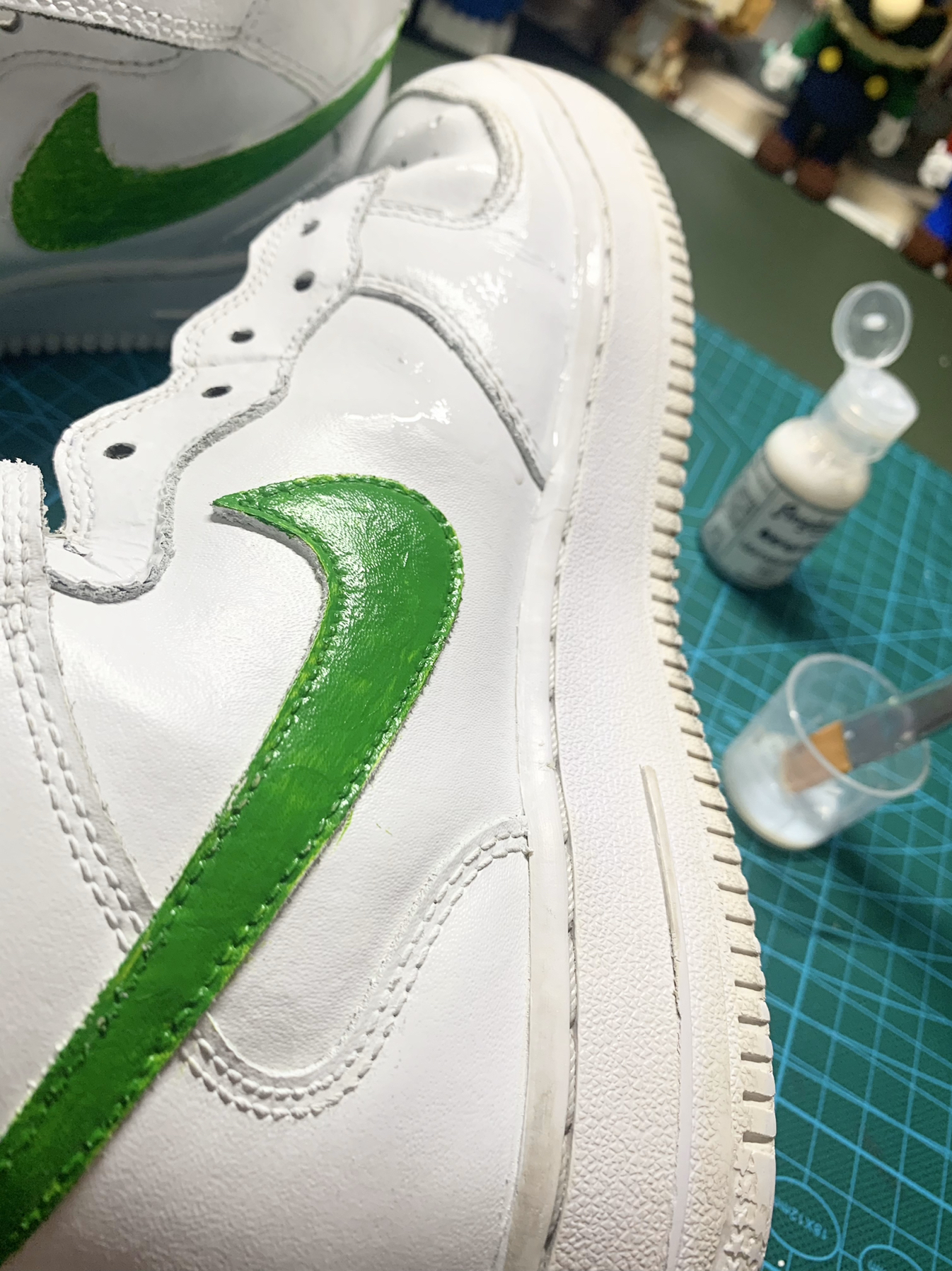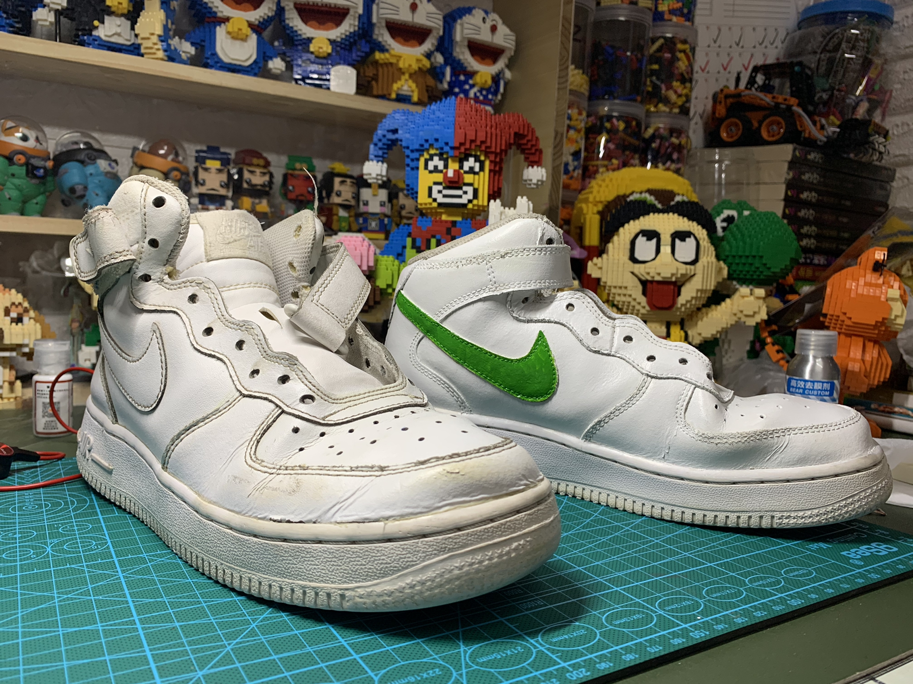 它真的是一双很破烂的鞋子,穿了好多年了,我妈最后忍不了了给我扔了,我又偷偷的从垃圾桶捡回来了,想着体验一下改色,我从网上买了安格鲁斯颜料🎨,然后又白了球鞋氧化剂,空军一号最大的毛病就是变黄,先把氧化剂按照比例拌匀,静置一天,虽然不能达到全新但是效果还是很明显的,然后涂上去膜剂,这样好上色,我涂的白色,空军一号还是白色最好看,然后把勾子涂成绿色,晾干后再涂上保护剂就好了,在晾干整个过程并不是难,我也...