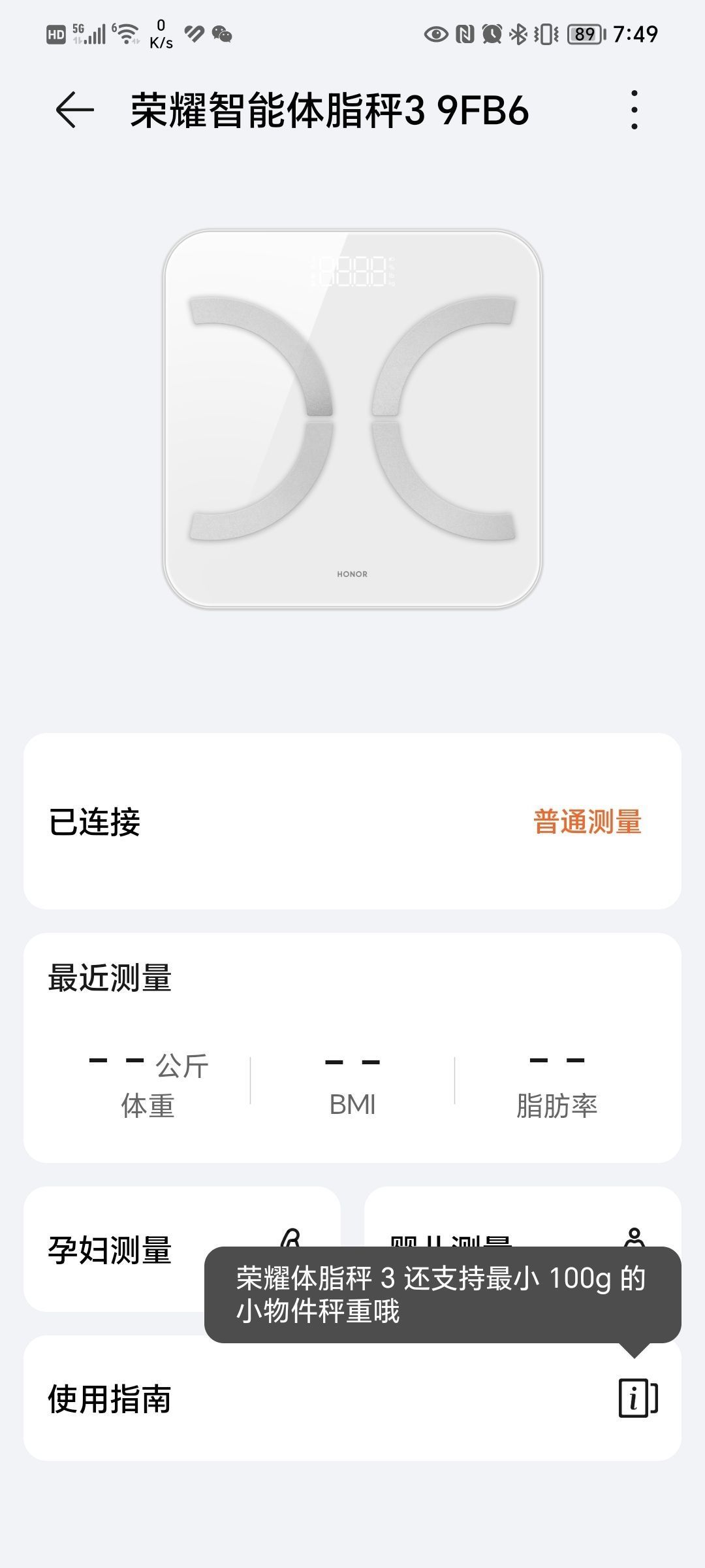 本篇笔记关联了HONOR/荣耀 体脂秤3 健康秤 智能 减肥 双连接 体重监测 蓝牙 高精度 测脂肪 白色等商品,为用户提供真实的使用体验和购买参考。
