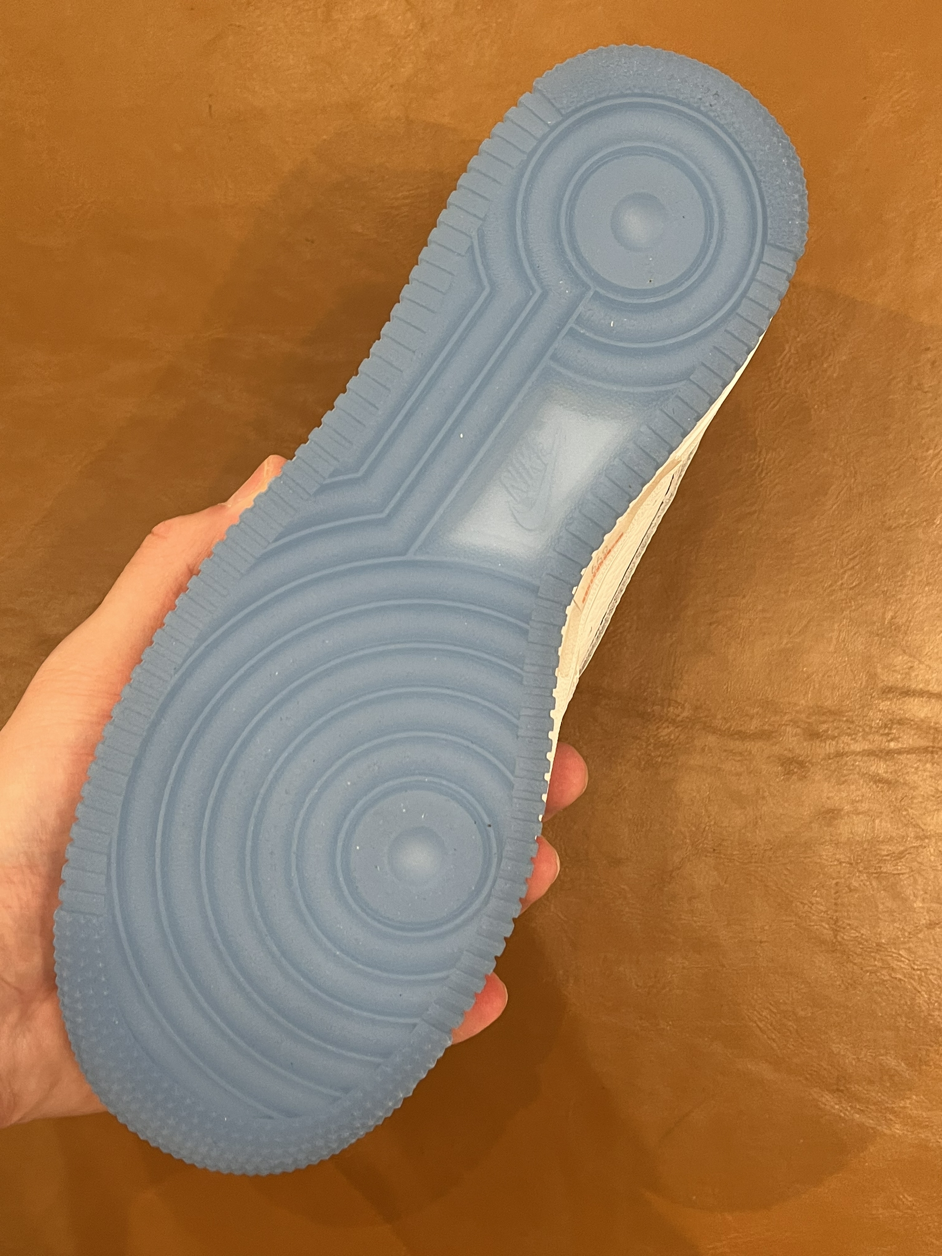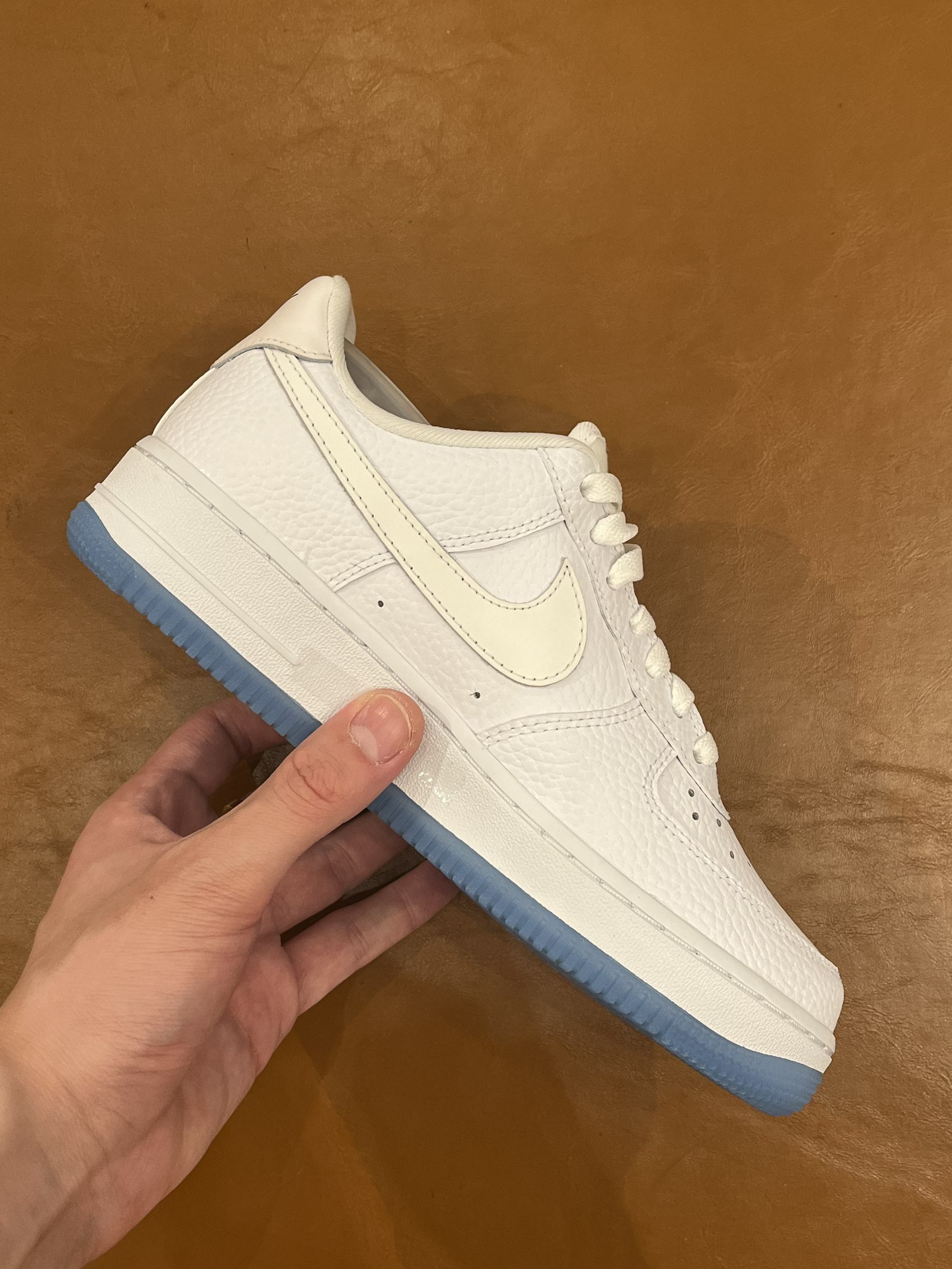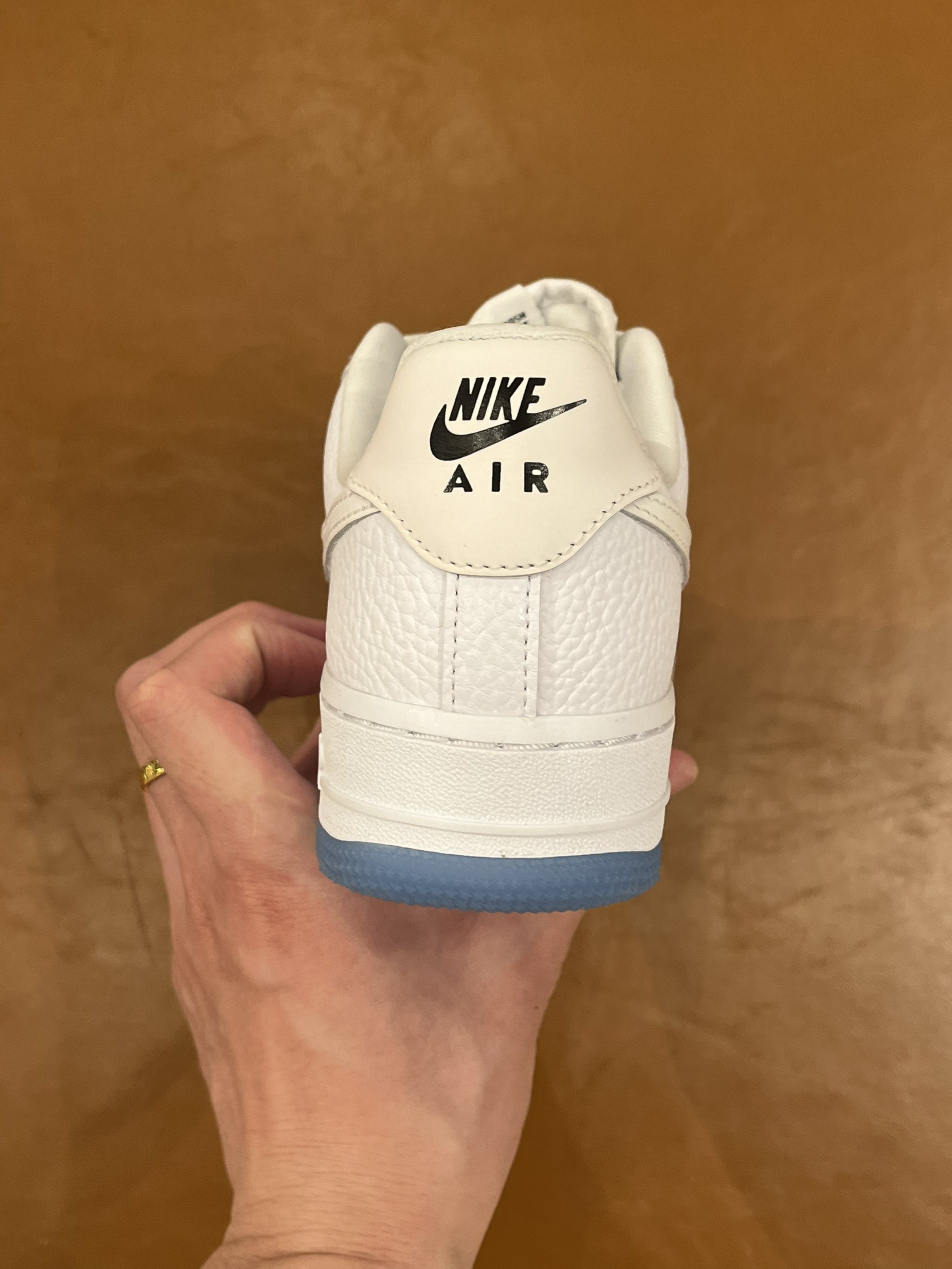 🎨外观配色 开箱一双特殊元素的空军一号,本款球鞋在鞋的后跟处具有热感应的效果,能够在光线下呈现出不同的颜色哦。当然在鞋底也是水晶底的颜值在线,整体纯白的球鞋加上后跟处黑色的耐克LOGO点缀。 👟尺码脚感 本款球鞋的脚感呢在日常的穿着过程中也是较为舒适的。 🥼日常搭配 简约百搭的白色融入了天蓝色的水晶底元素。 💯整体打分 颜值在线加上设计感细节满满,同时一个特殊的热感应元素。