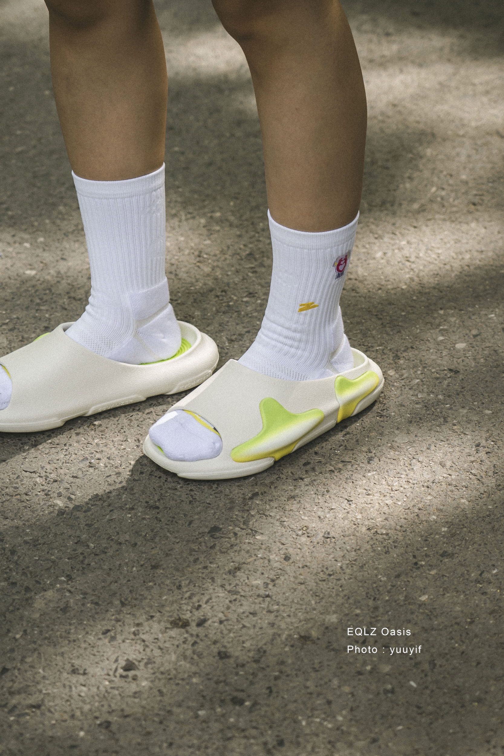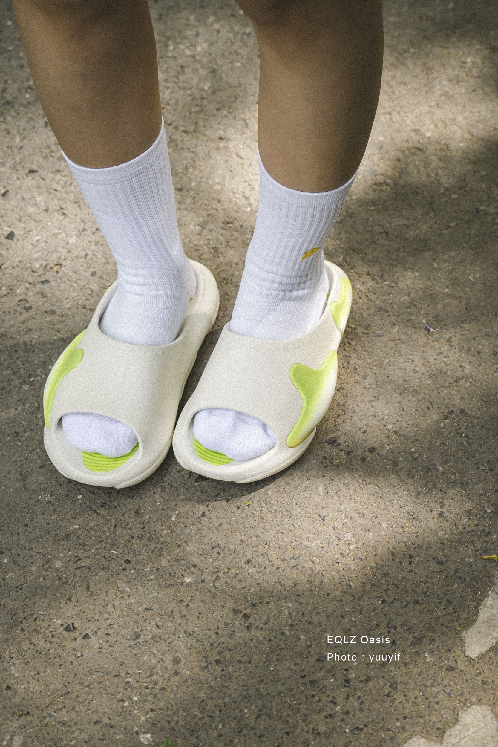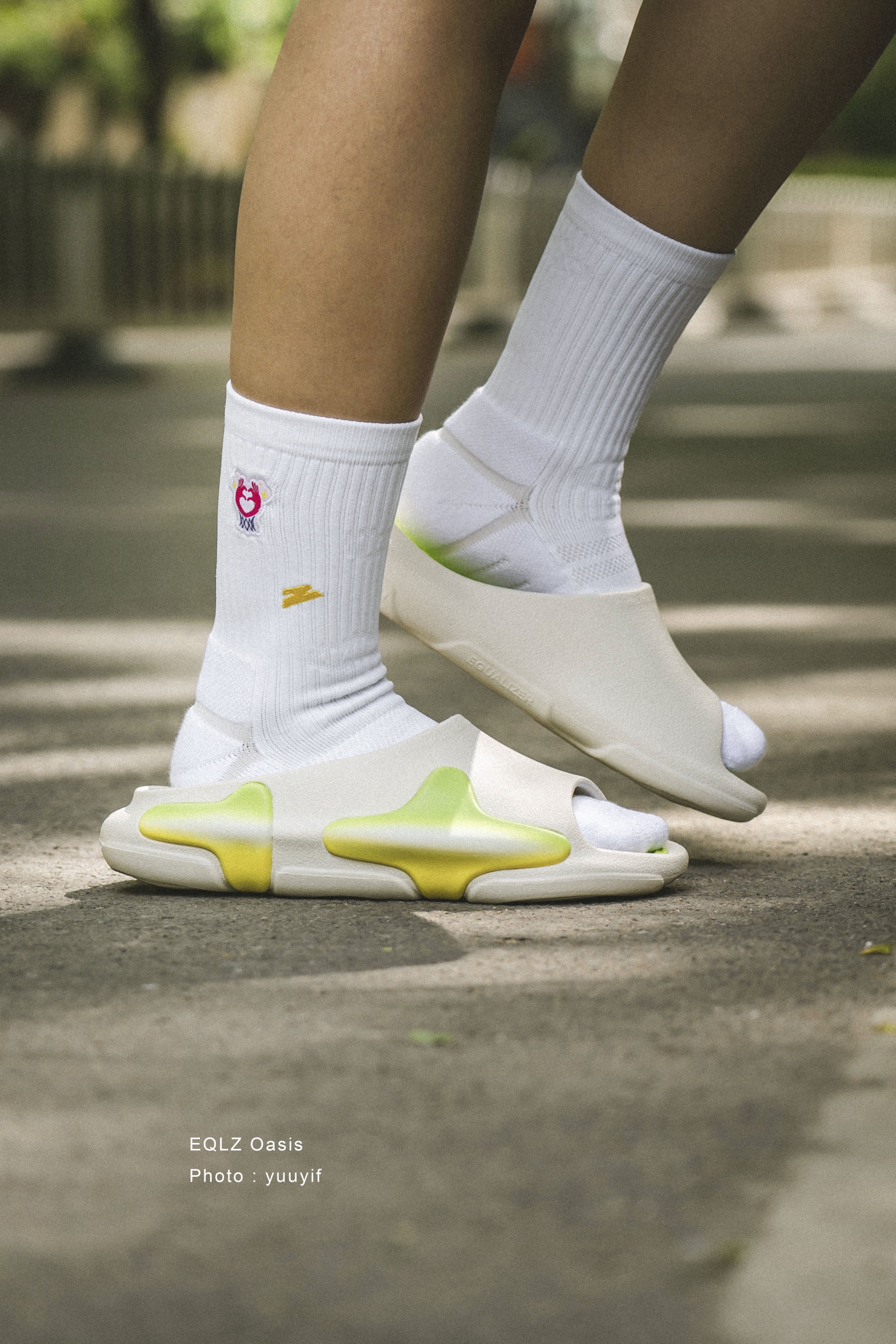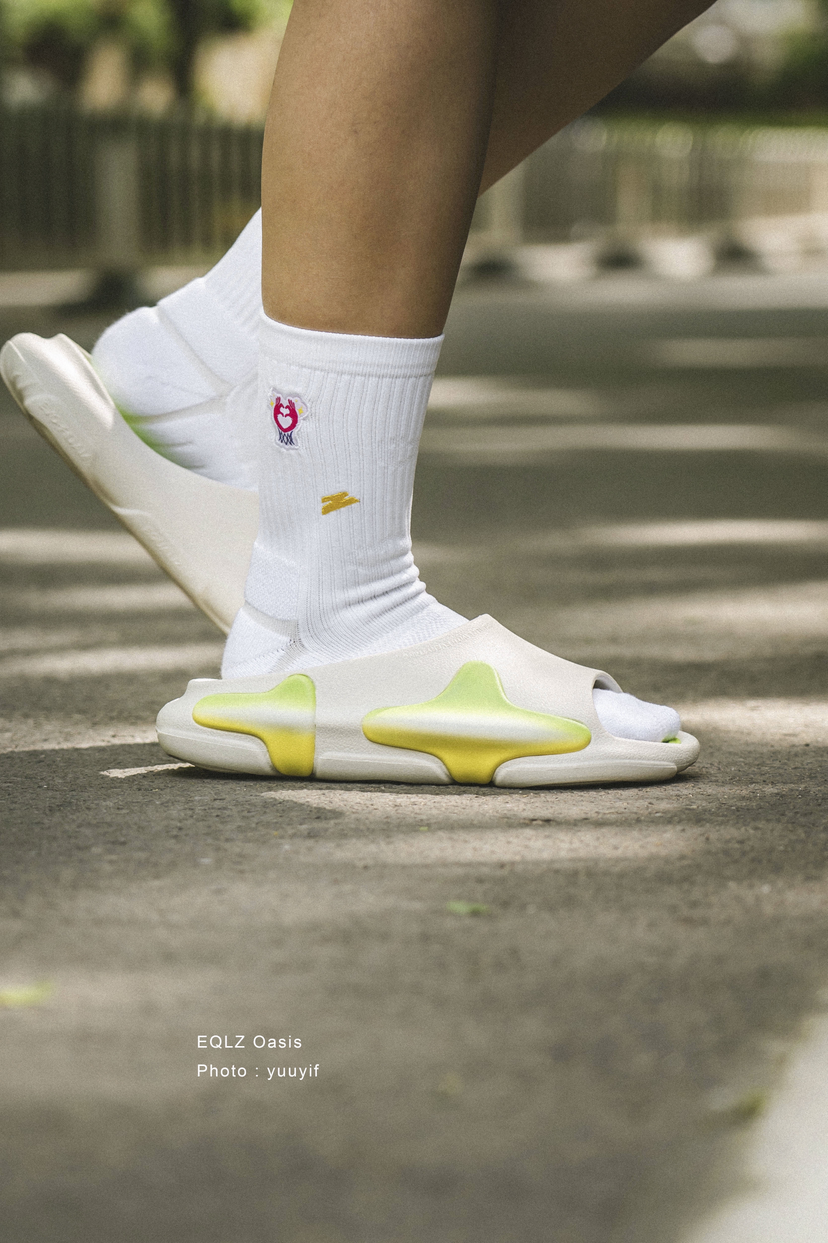 随着拖鞋产品的数量越来越多,大家多可选择范围也变得更广,但挑来挑去你会发现,还是Oasis拖鞋最耐看。 最近新出的几款配色也都超好看,比如今天上脚这双层云翠,白色主体,在LOGO部分应用了黄绿白渐变的效果,简单搭配个白袜,上脚真的超好看。