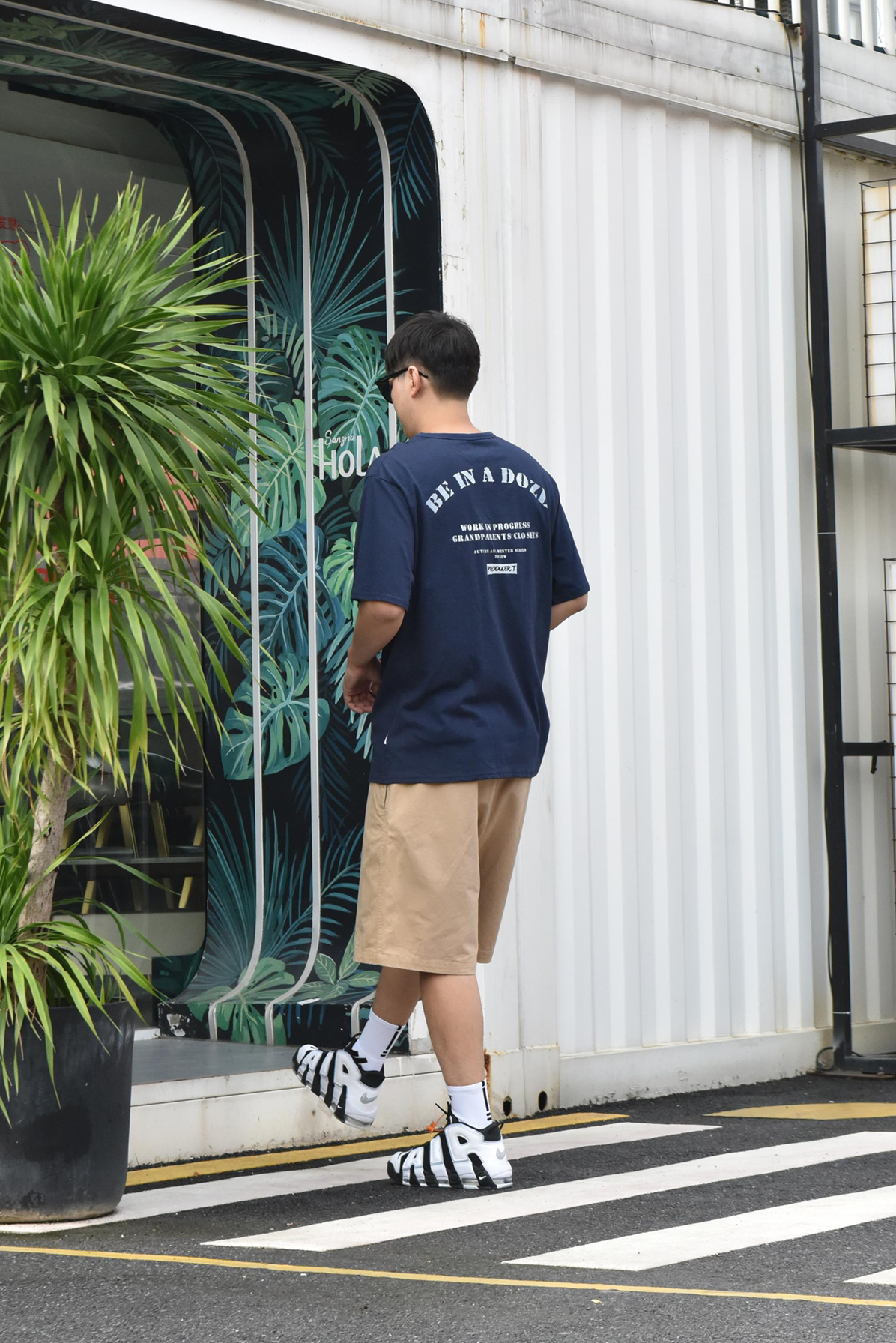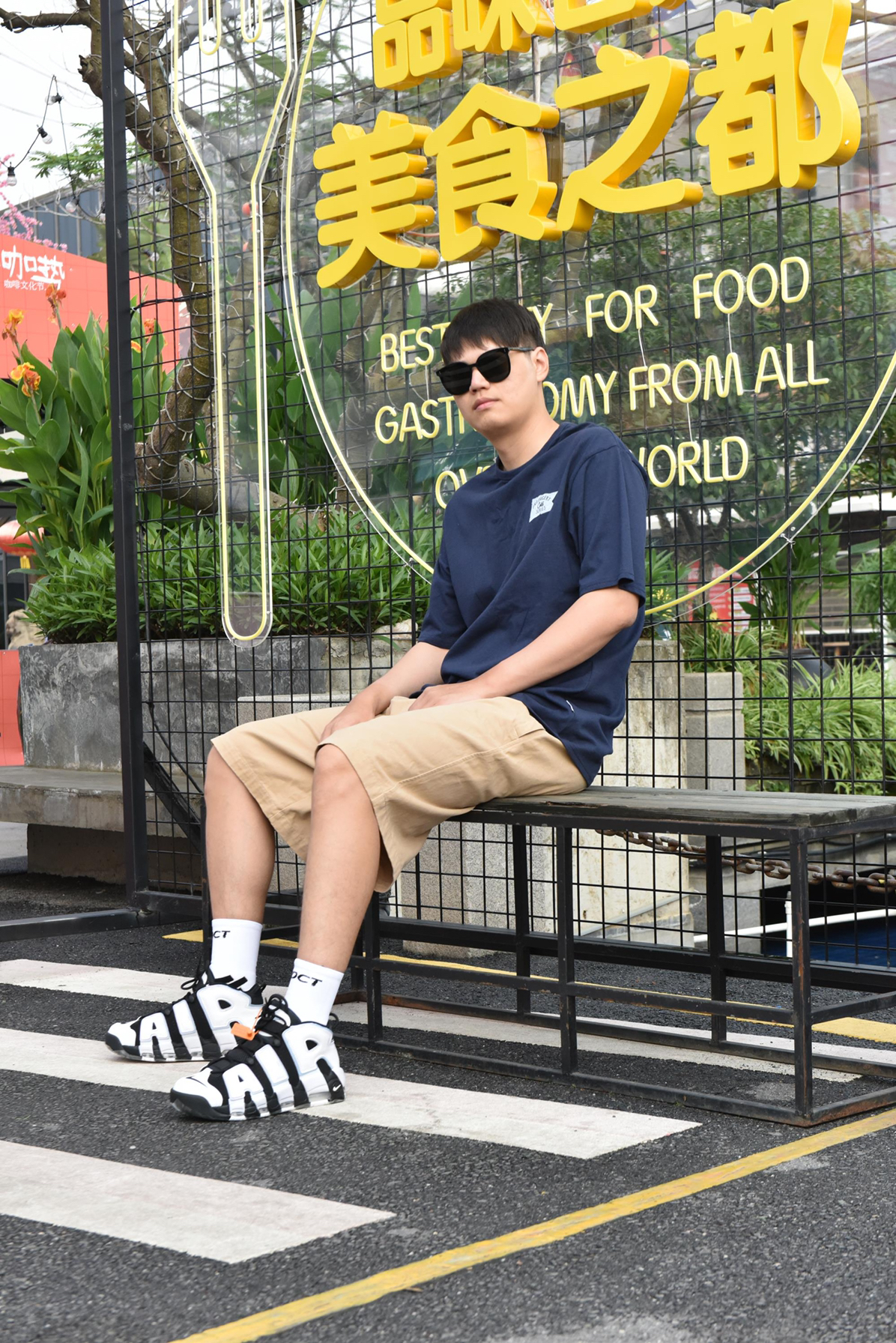 身高|体重:183 84kg 🧍♂️ 穿搭风格:日系休闲风 卡其色廓形短裤绝对是日系单品最佳 不仅有随性随意的感觉 还能百搭大部份宽松的上衣 再配上经典大Air 👔 上衣:日系街头短袖 👖 下装:日系廓形短裤 👟 鞋子:大air白蓝 🎒配饰:pdct精英袜
