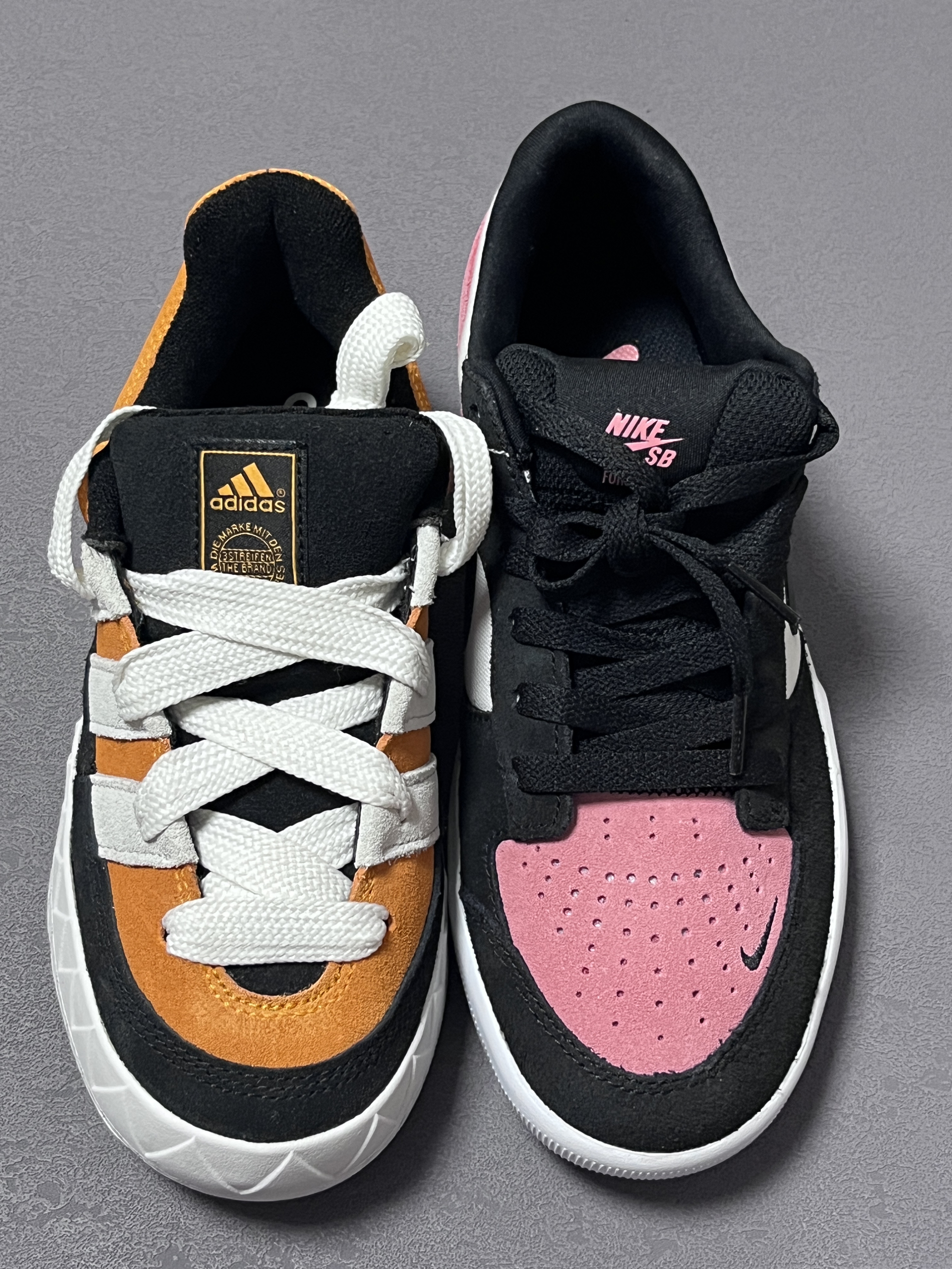 halo 阿迪来了,本期带来两双日常出街潮鞋!分别是这双三叶草的adimaitc 鲨鱼面包👟和这双nike 的sb force 85! 首先,我们先说说这双黑橙adimatic ,整双鞋是以脏🍊色为基础的绒面革鞋面,辅以白色三条纹细节与品牌标识,复古质感满分!鞋头是连续三角形的鲨鱼齿造型、非常的形象,鞋后跟是经典的阿迪达斯橘色小圆标、og感拉满! 再来,是这双SB force 85 ,采用柔软翻...