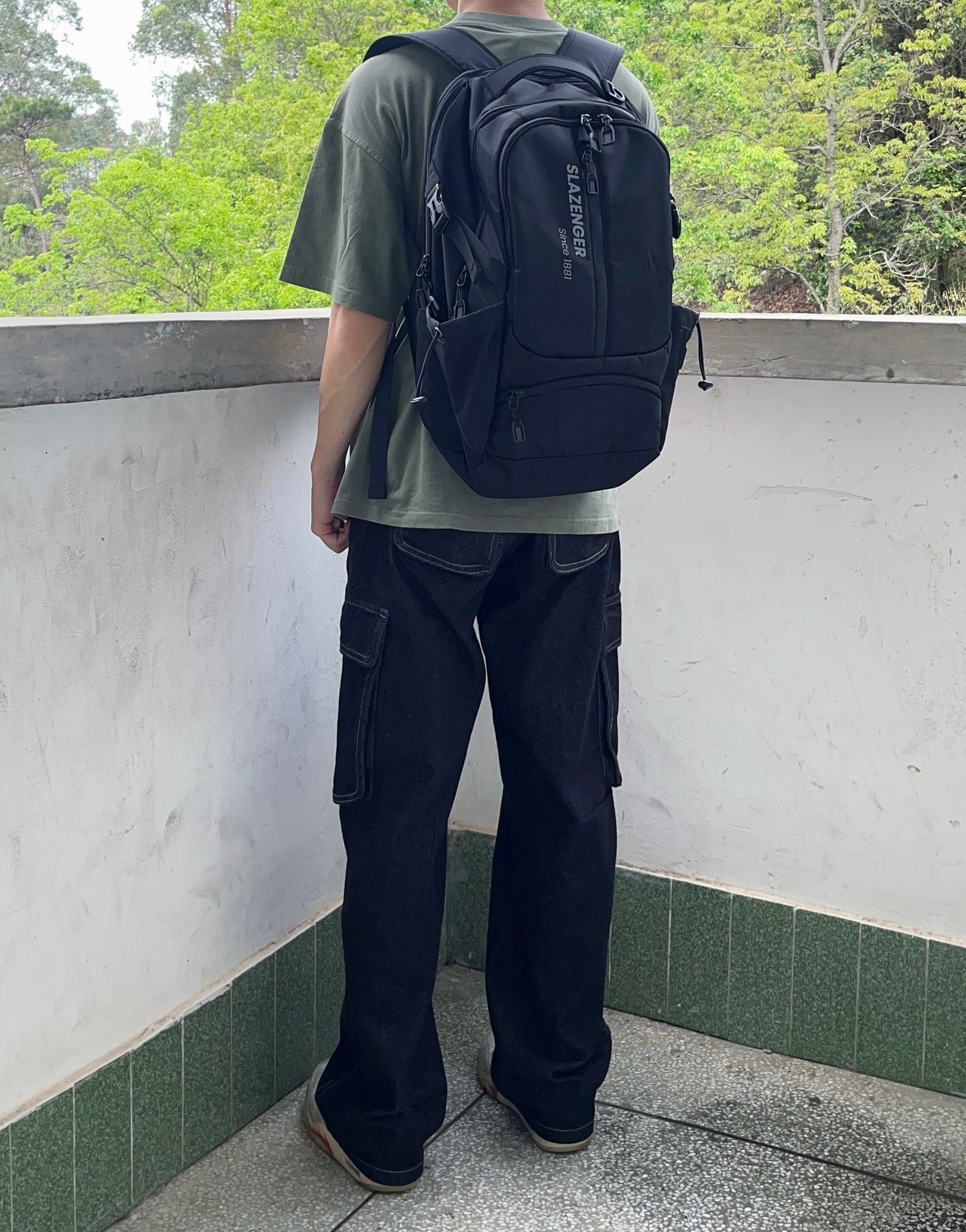 - 今天分享的是一款黑色机能风双肩包 颜值简约时尚 外观很潮酷 内部空间也很大 户外运动非常合适 日常学习出行也可以背 -