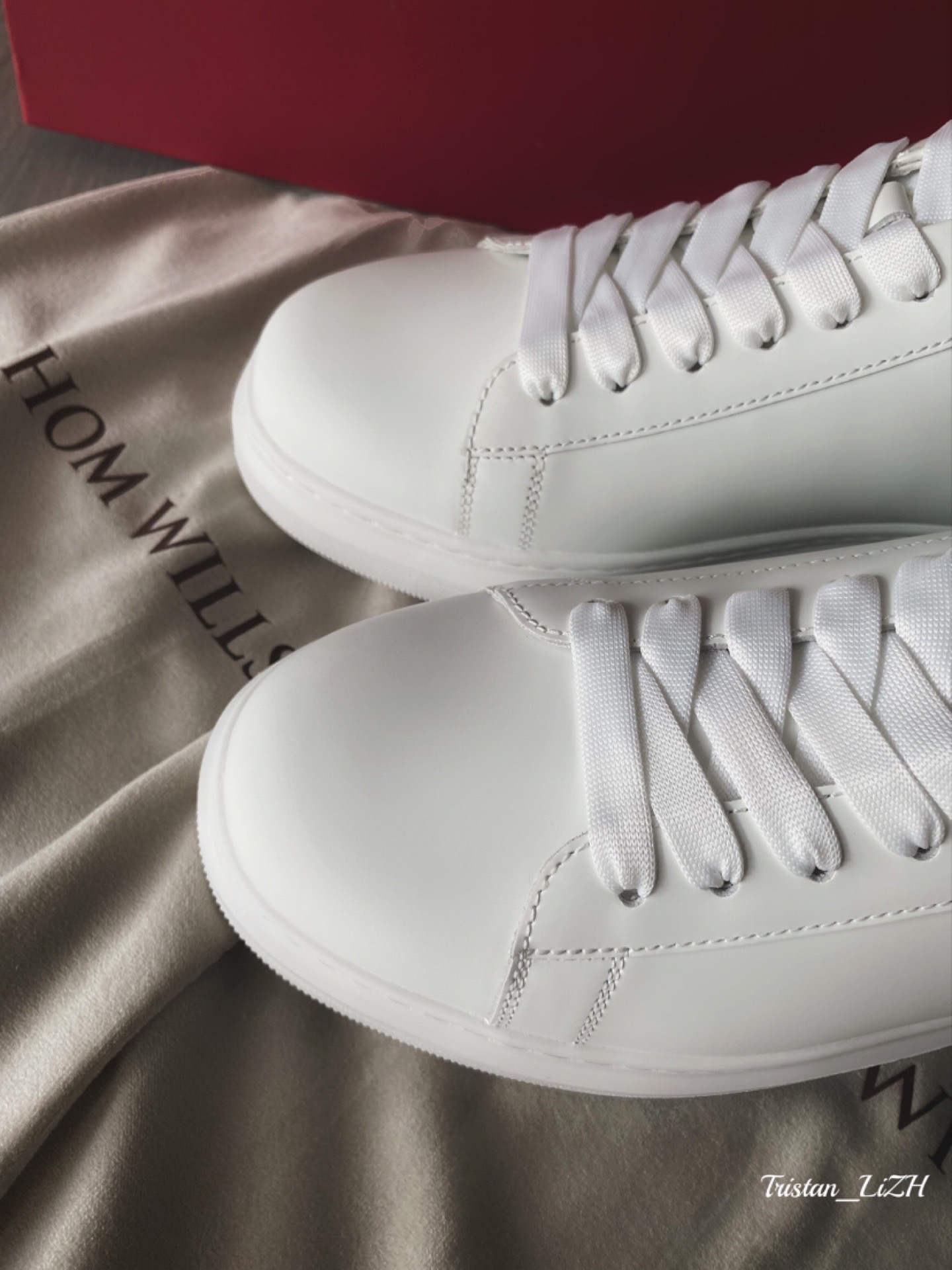 今天给大家分享的是一双Thom Wills的增高小白鞋👌 鞋面采用牛皮材料,手感细腻,黑色的小尾巴上面点缀着金属字母装饰件,整齐的走线搭配侧面的小气孔,外观真的简约大气👌 中底有一定跟差,后跟增高约有3cm,新型EVA材质混合硅胶元素,提升穿着舒适度和轻量化鞋身👍 百搭好看增高好穿的小白鞋,快来拥有吧😍