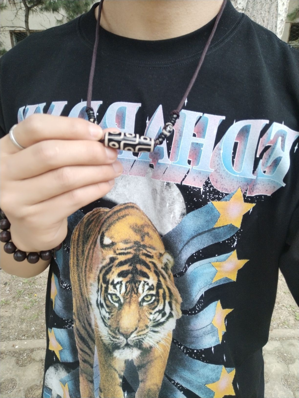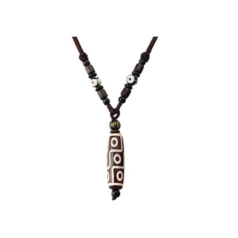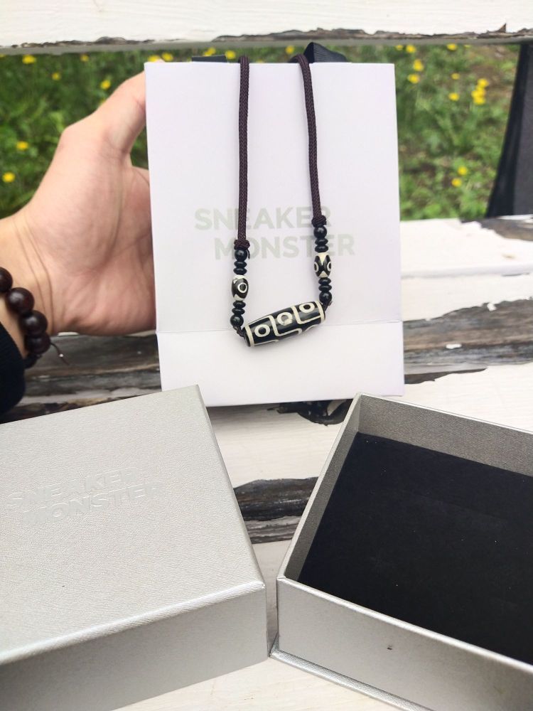 最近特别流行复古民族风配饰 今天给大家推荐一款新中式藏风天珠项链 它主体为黑白 两段扁平,中间鼓 加上形似眼睛👀的设计而且有九支 给人一种神秘古老的感觉 它们由编织绳串联起来, 末端有活动扣可调节活动度 相传这是藏族人民为防止雷击而铸造的平安符 所带之人会一生平安吉祥!!!