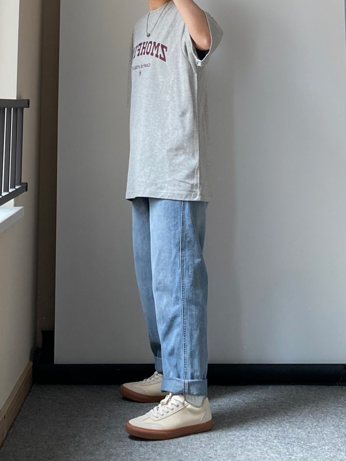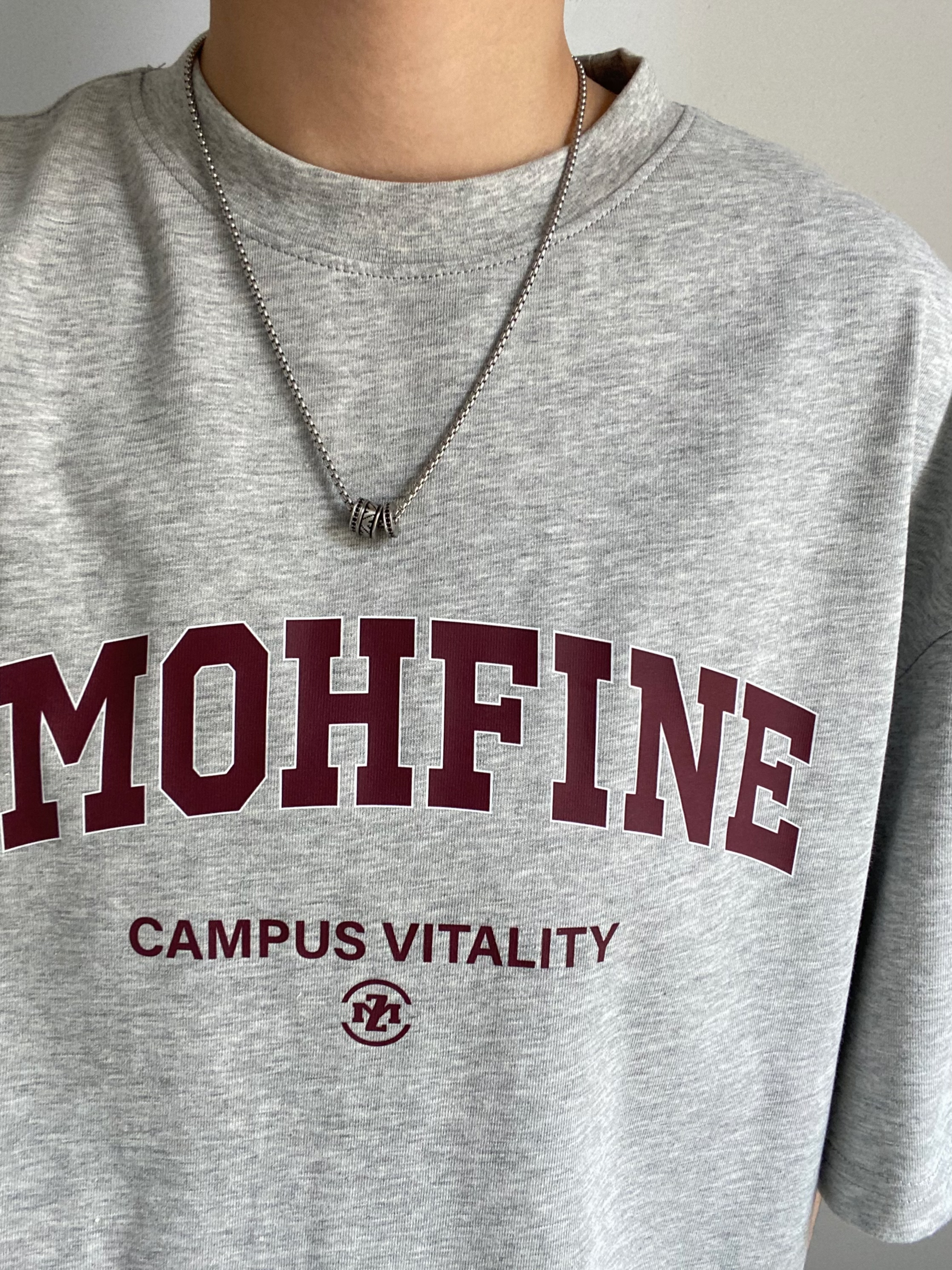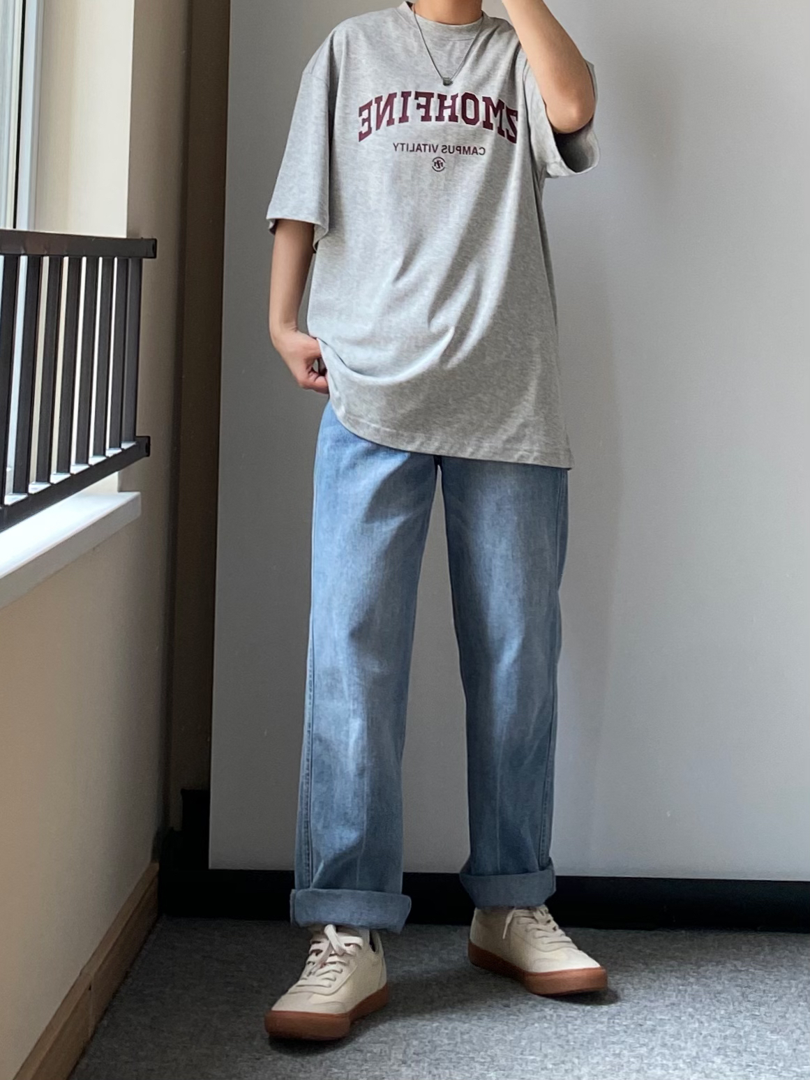 今天是简约的蓝色牛仔裤👖➕灰t搭配 搭配一双复古德训鞋👟 男生日常通勤出游都可以这样穿 今日搭配的点睛之笔就是这个阿玛尼的串珠转运项链啦👍🏻 吊坠上面印刻了鹰标logo 十分有阳刚之气 外围镶嵌了两圈黑色水晶设计 龙虾扣可以随意调节链条的长度 夏天搭配圆领T恤👔真的是很百搭吸睛啦 - 👔ZMOH 👖白告studio