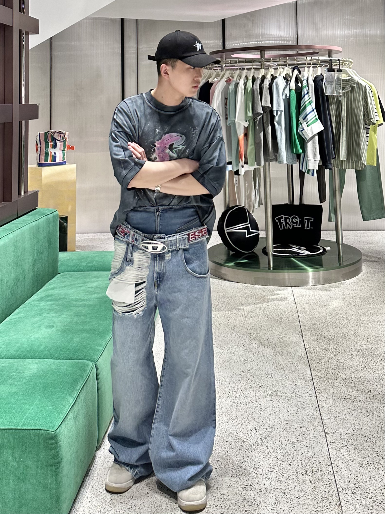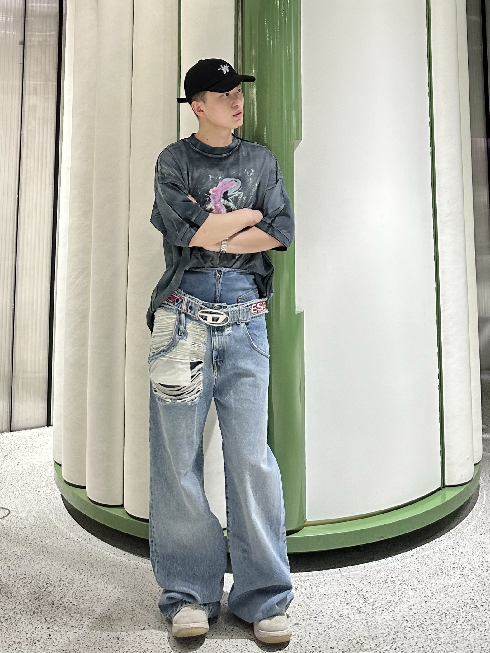幸会 178cm/140斤,这里是@一名男柜姐 . 👉🏼今日穿搭目标:高腰双层牛仔裤穿的就是特别的感觉✅ 👉🏼今日穿搭分享:最近大火的品牌来看看他们家衣服上身效果 . 👕:welldone(oversize短袖) 👖:DISEL(高腰双层牛仔裤) 👟:板鞋 . 同学们也可以尝试一下这样穿搭🆒 . 💙更多穿搭分享,关注我吧❤️ .