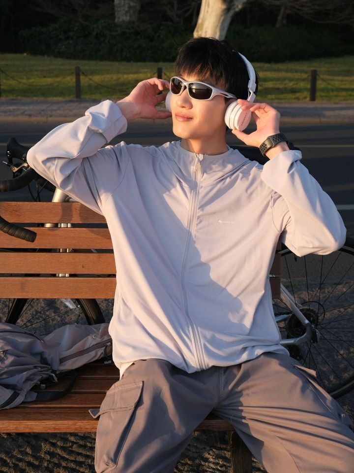 本篇笔记关联了Decathlon/迪卡侬 H100 UPF40+户外风感原纱波粒凉感速干透气防风防紫外线UPF50+防水小logo印花流光风连帽防晒衣 8207878 浅灰/男女同款等商品,为用户提供真实的使用体验和购买参考。
