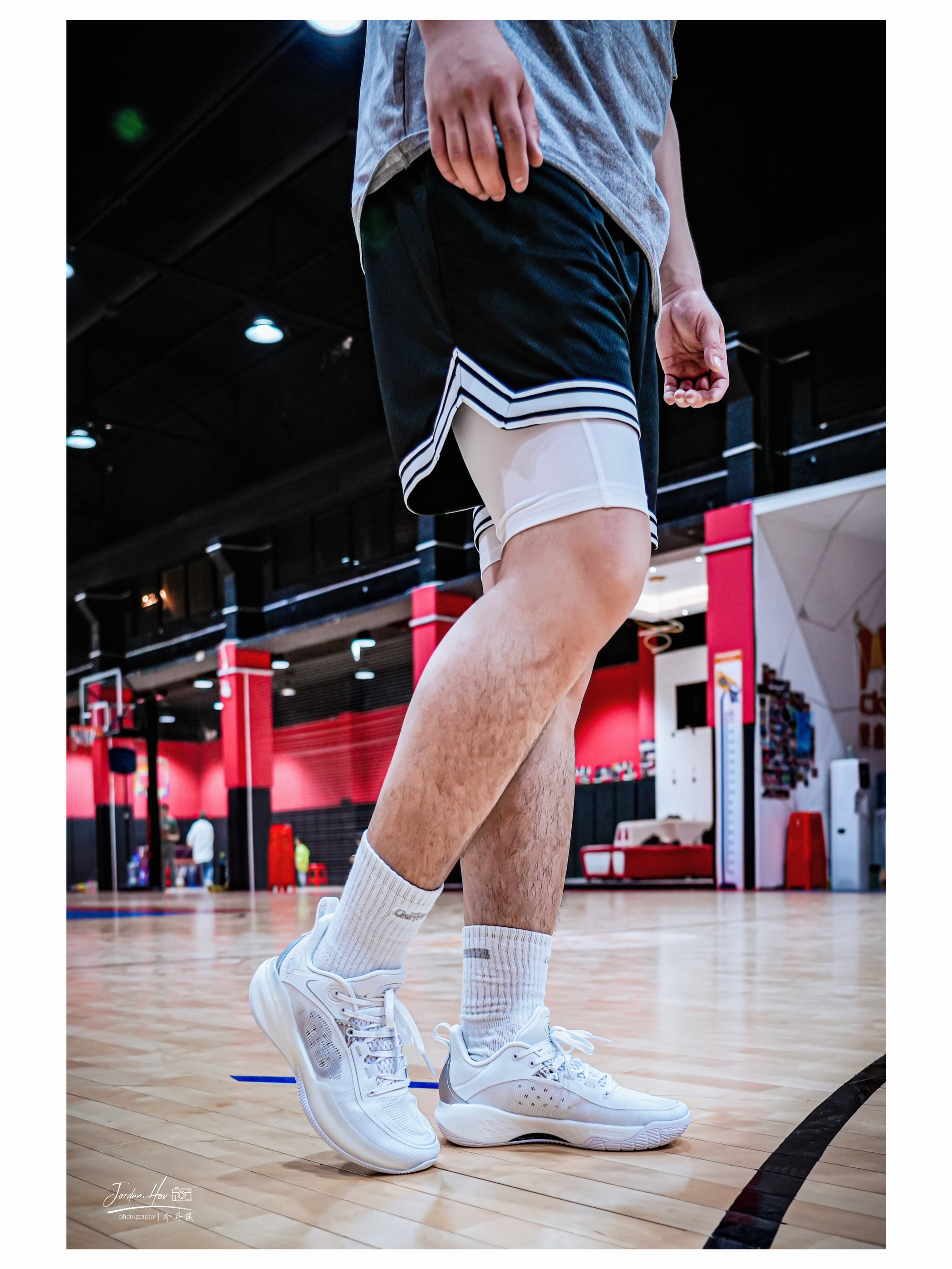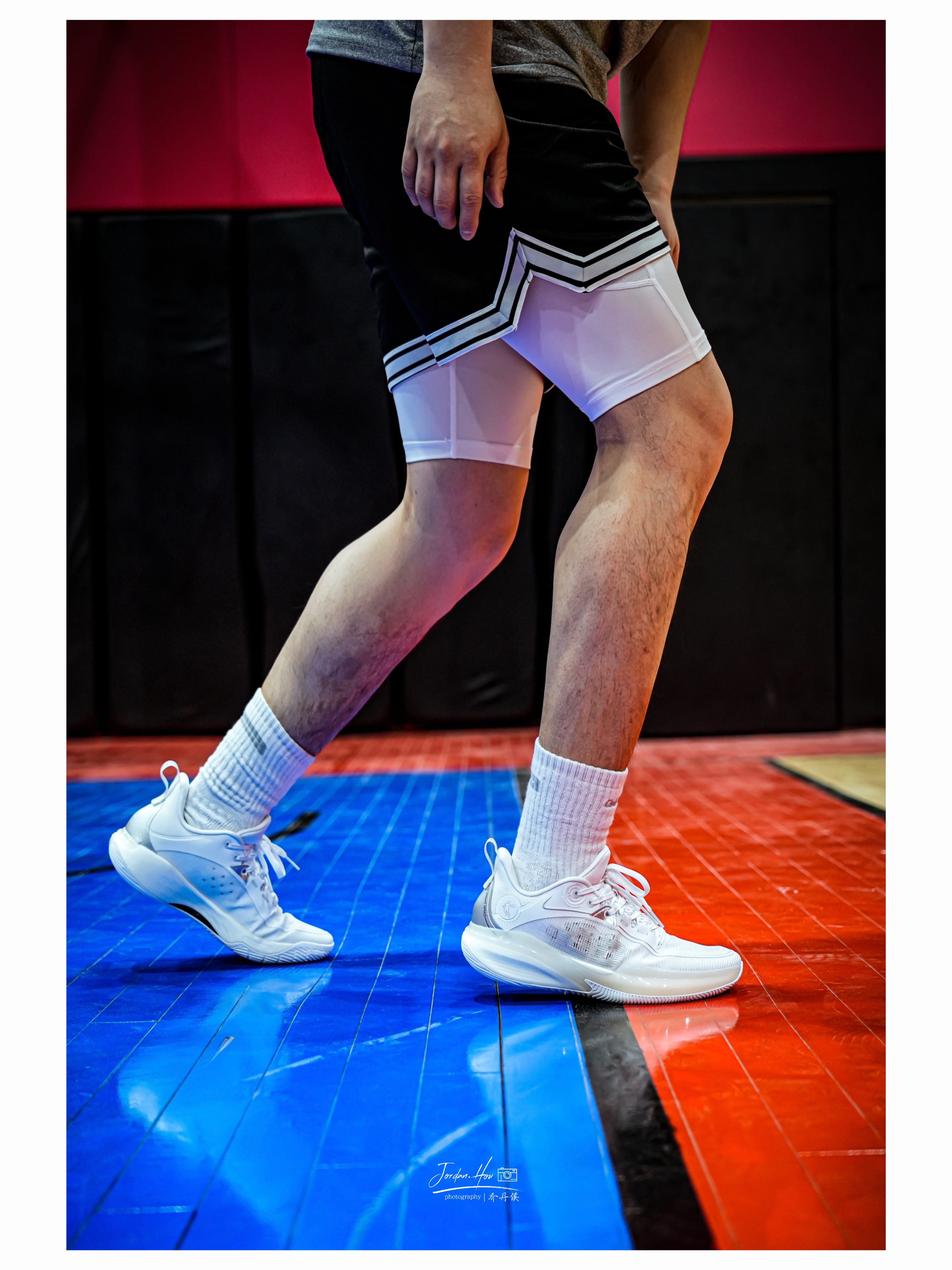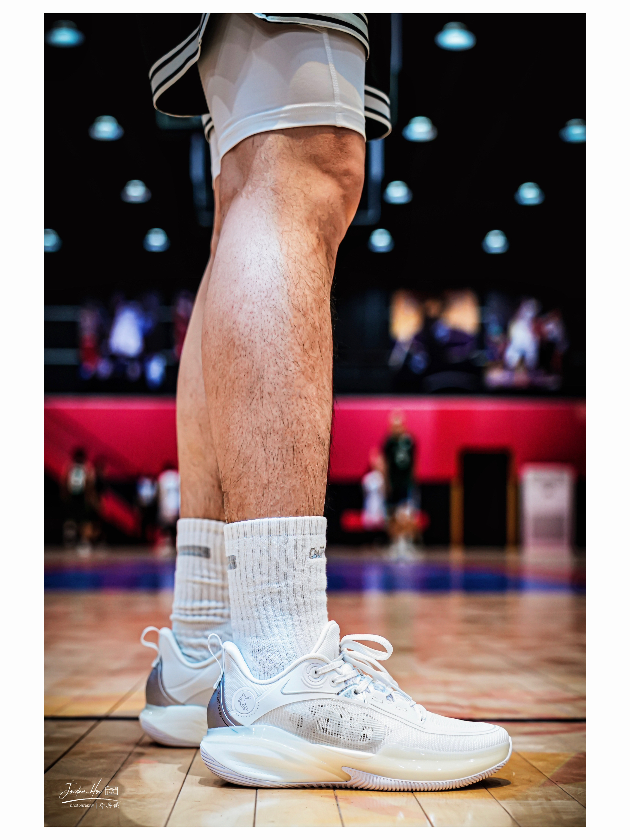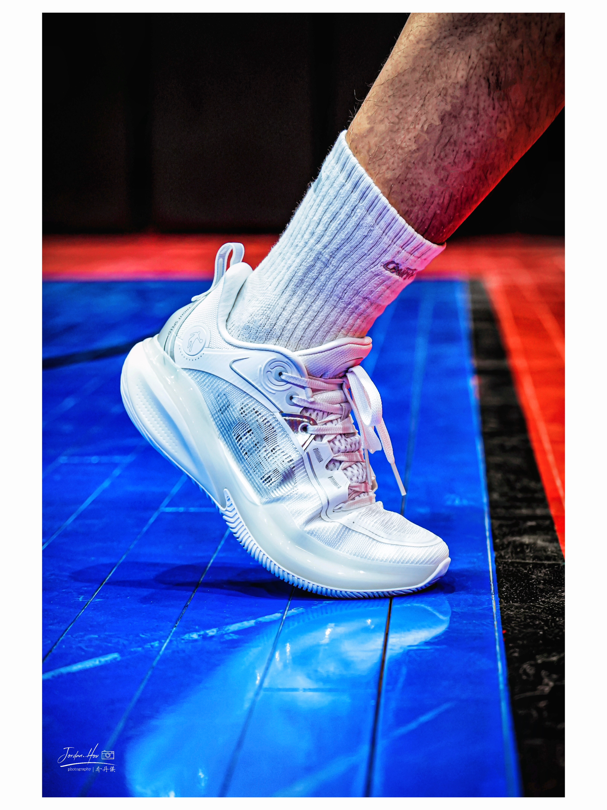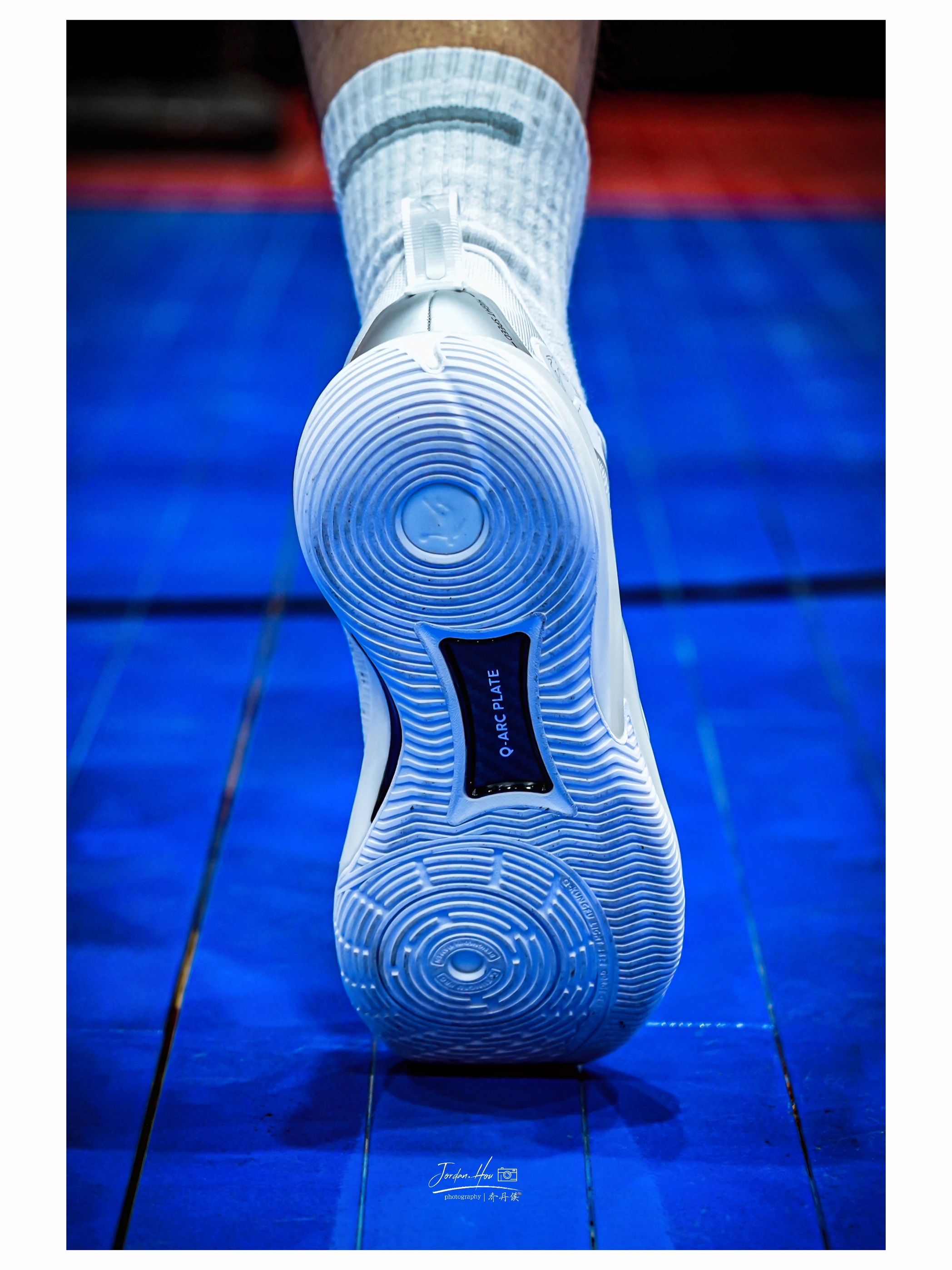 刚拿到这双鞋上脚,脚感就特别舒适。整体重心虽没有极致的贴地感,但是很适合大量跑动的选手。全掌巭ligh框架再加上前掌填腹式的巭PRO科技材质,缓震效果非常好。前掌启动好似离弦之箭,脚感韧弹、包裹性也非常紧密;后掌的缓震极限较高,侯哥180多斤的体重落地后不震脑仁,并且鞋脚一体性非常舒适。