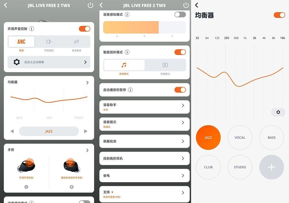 相比普通的蓝牙耳机来说,主动降噪蓝牙耳机的出现给人们带来了更好的音乐体验,无论在咖啡厅、地铁,还是机场,只需要打开耳机就进入了自己的音乐世界。最近在朋友的推荐下,机友派入手了JBL最新推出的Live Free2主动降噪耳机 1、在外观方面,圆润舒适,红点奖设计; 2、在音质方面,JBL精心调教,三频均衡; 3、在降噪方面,平均30dB降噪,静享音乐。感兴趣的小伙伴不妨关注下,个人感觉JBL Liv...