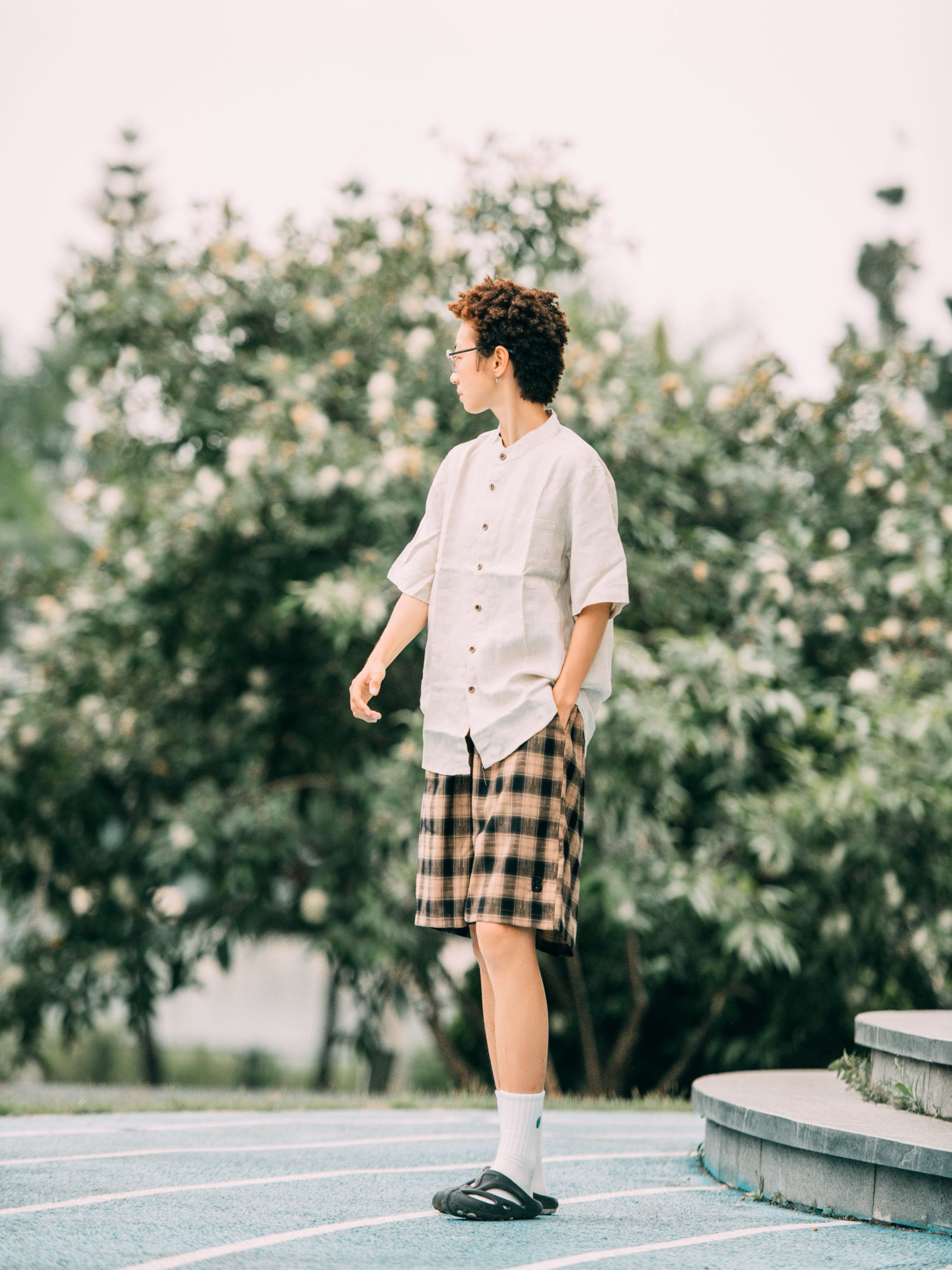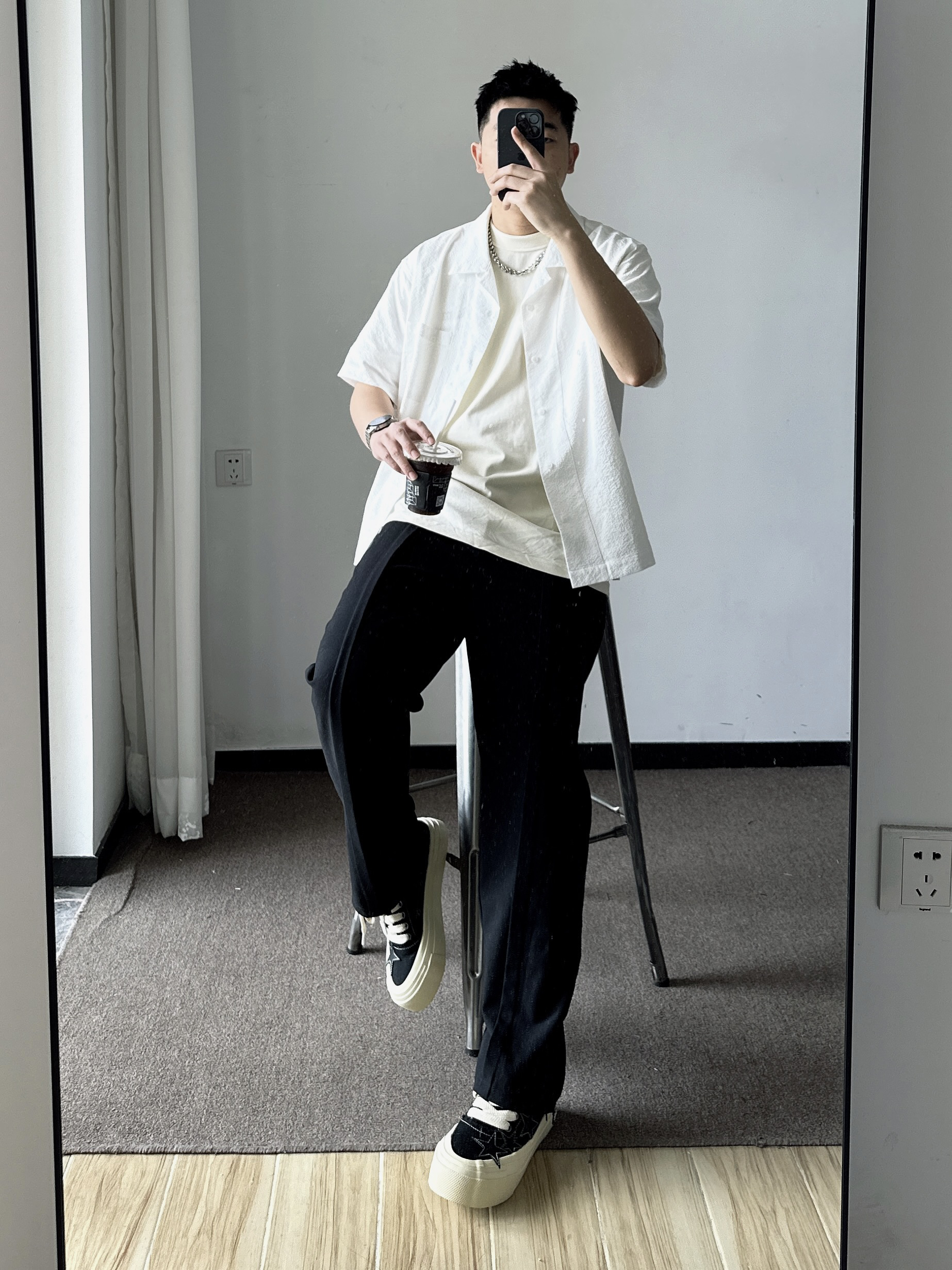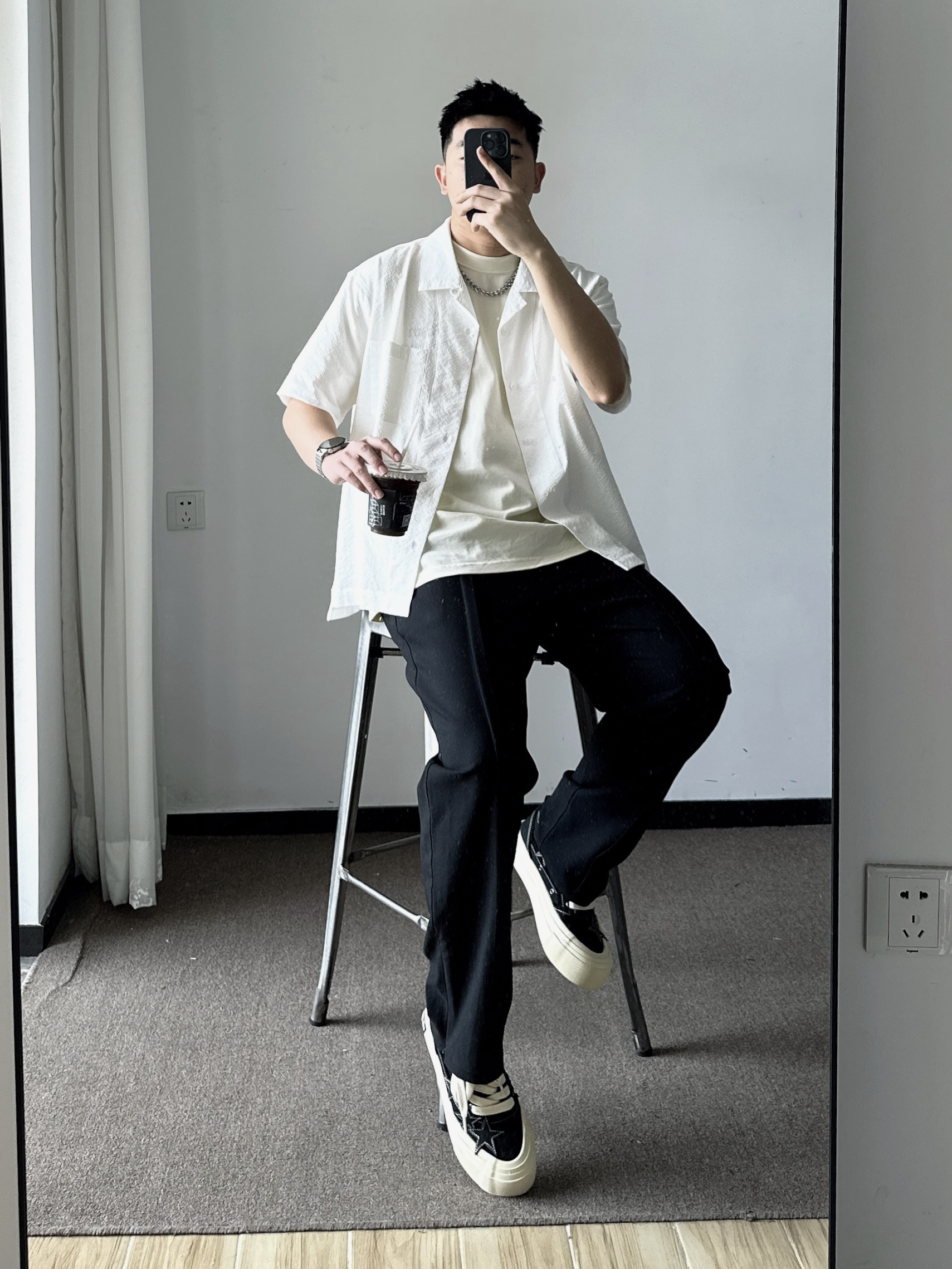 素人也能好看系列~ 174cm/65kg 🧥- 就算天气热了还要叠穿,泡泡棉外搭足够轻薄就好。 👖- 偏宽松的裤脚,能把大鞋楦的鞋子修饰好。 👟- 经典的黑白色,做旧中底简直最爱。帆布鞋做了一个不小的鞋楦,就得穿的微喇或者裤管宽松的搭。