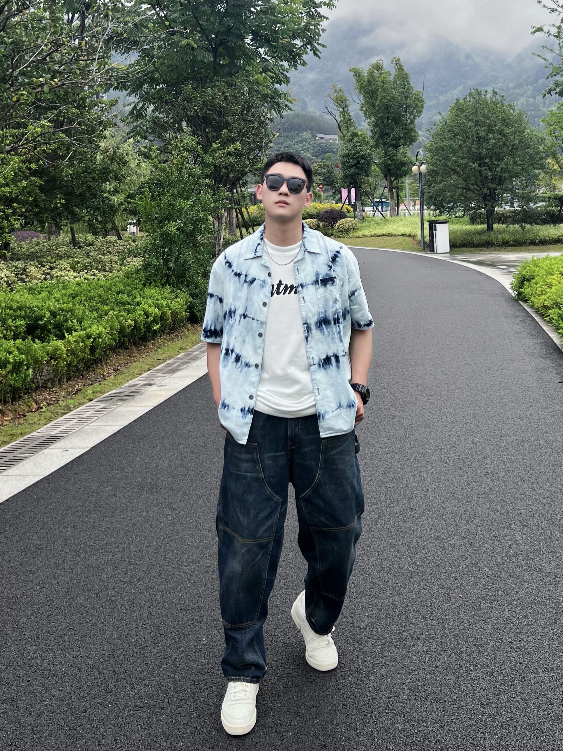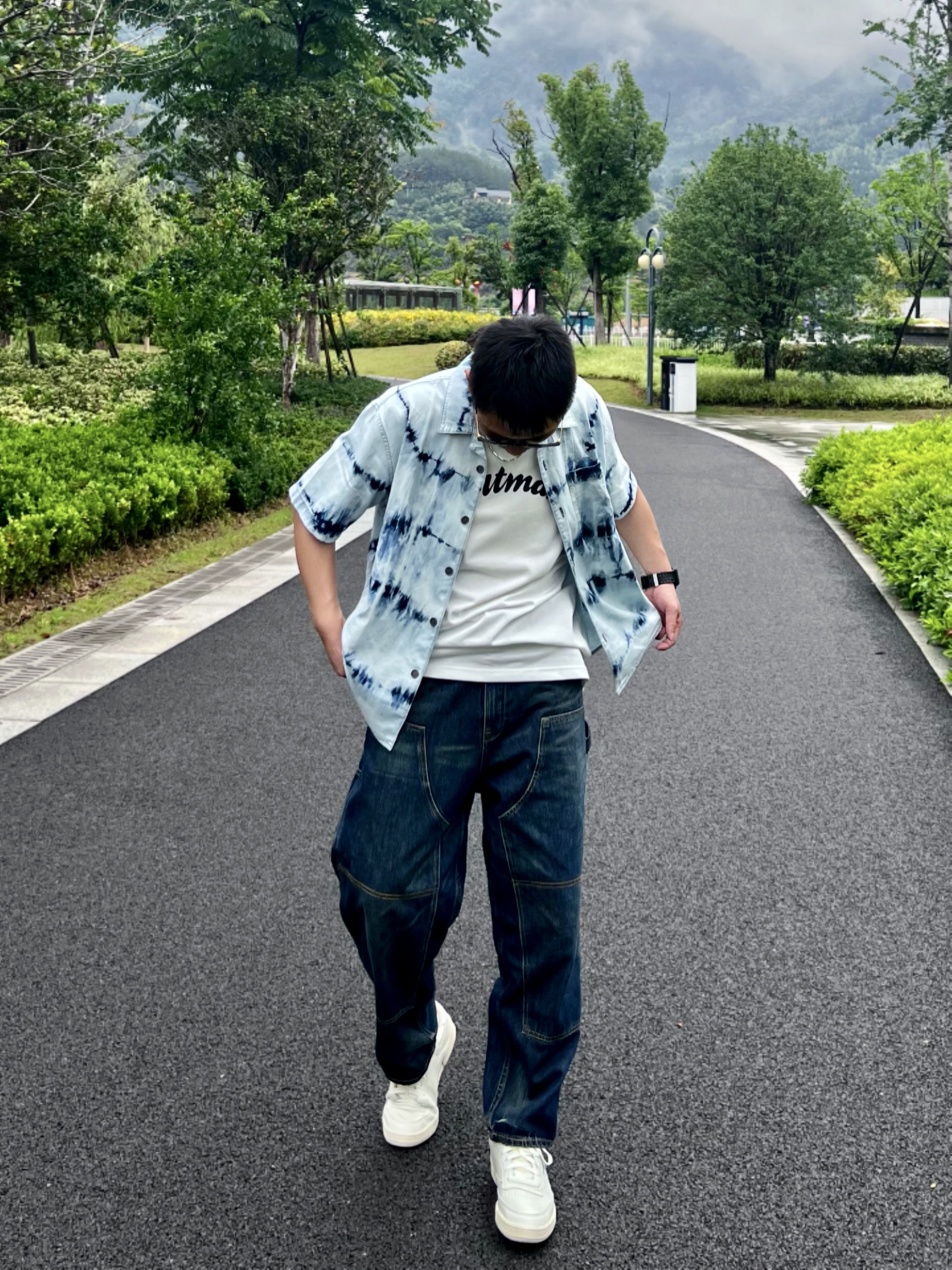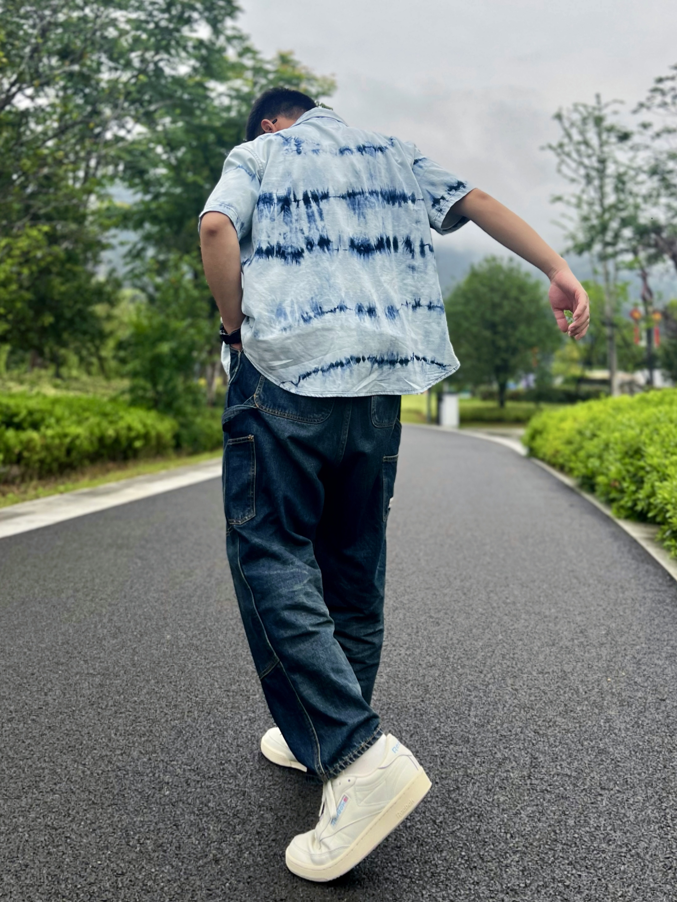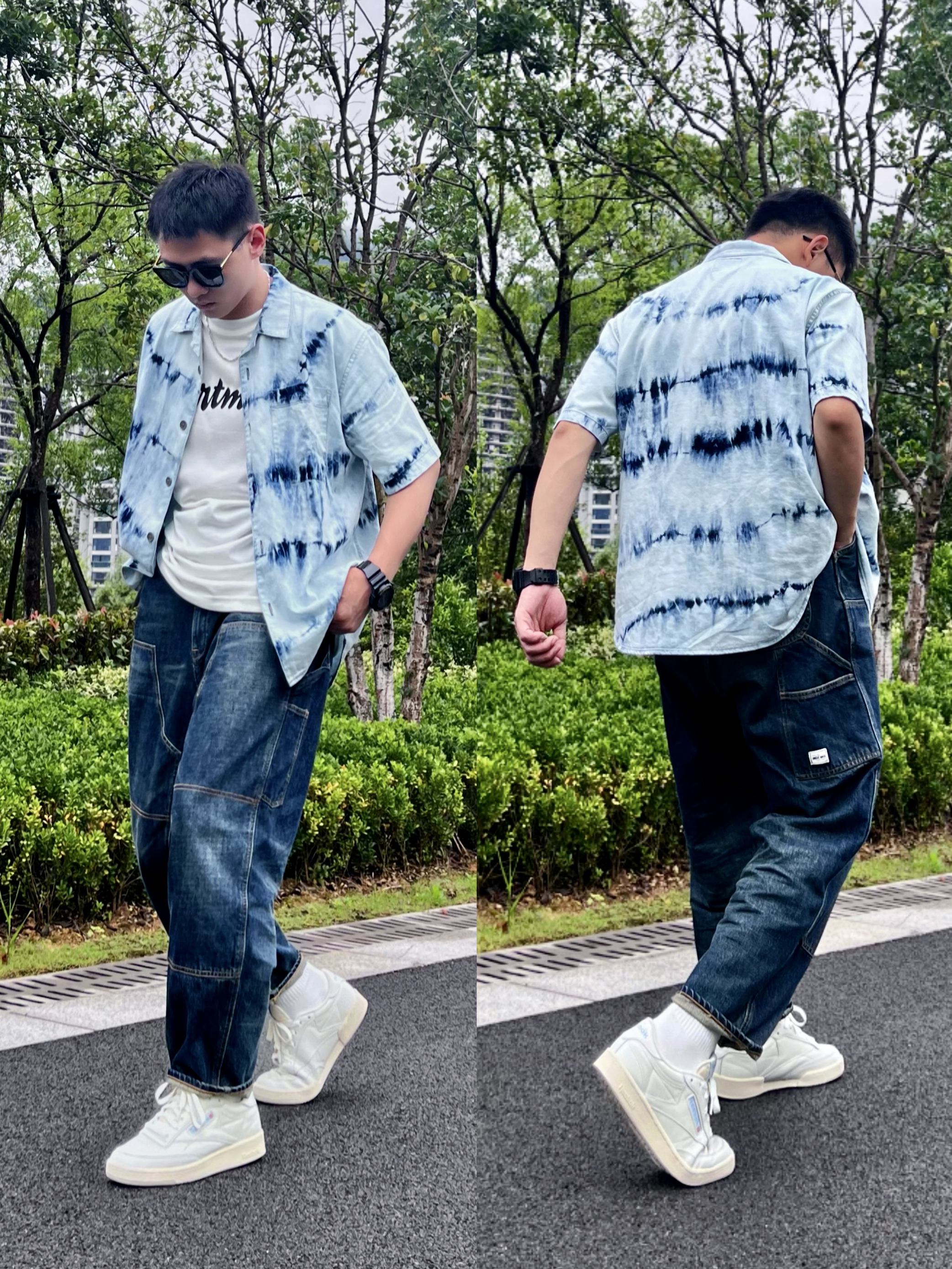 整体的搭配是上浅下深➕复古板鞋👟 —— 扎染丹宁配色的夏威夷风格衬衫👕 上身略显轻盈,棉的材质会显得柔软一些。 下身搭配伐木样式的牛仔裤👖 质感增强,这套是我个人喜欢的穿搭 特别是裤子 —— 不知道你怎么看,但是,起码复古情怀这点 不会错的。 👔/👖: TEKABLU /蓝布屋 👟: Reebok Club C 1985 TV 尺码:173/66kg M (裤子L) 风格:复古/沙滩/...