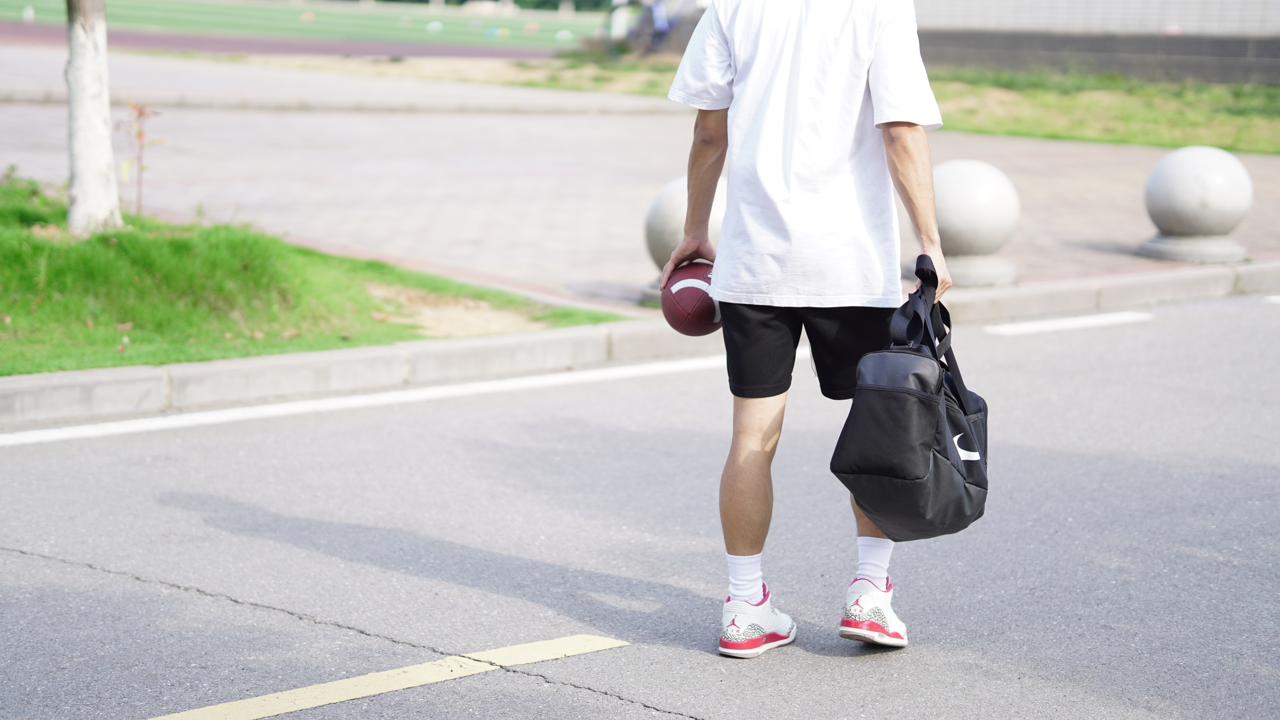 🎒:nike 空间很大能放很多东西,侧面左右各有一个口袋。外面还有网兜。需要干湿隔离衣服的健身人士无脑冲就完事了。 👟:AJ3 有增高、码数正常,只要天气不太热(有点闷脚)我觉得可以冲。
