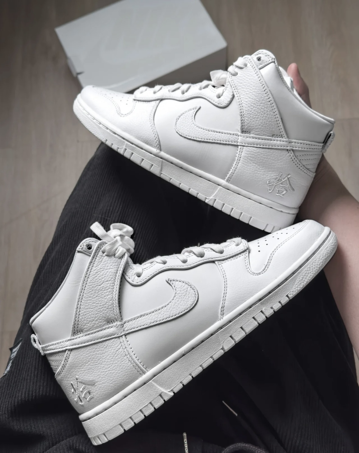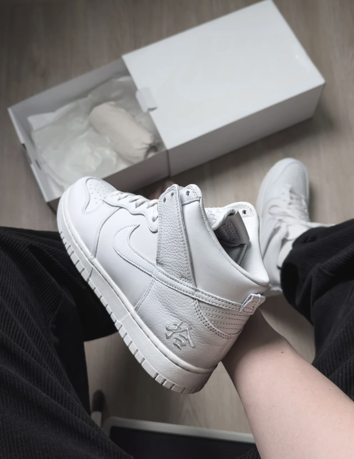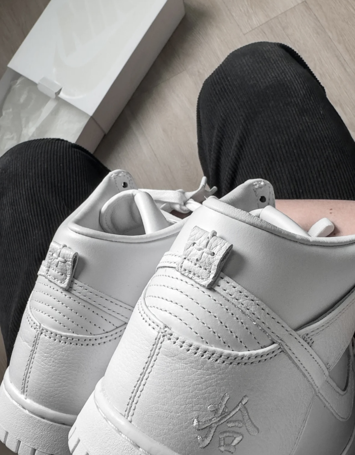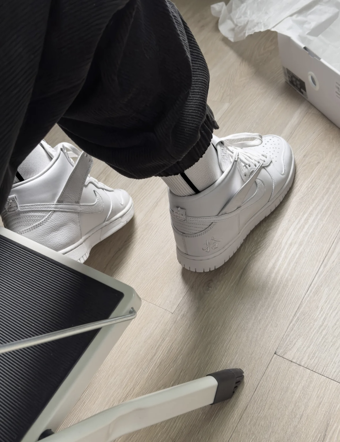 这是一双看上去很普通的纯白dunk,而且它甚至更捂脚的高帮版本。 但我想说的是,它承载的意义,远远比它的实用价值高。更何况它现在只要三四百就能入手,我没有理由不收入囊中。