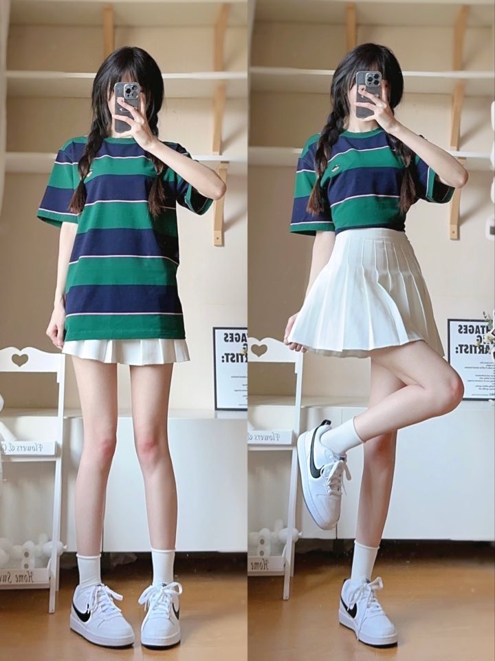 入夏球鞋👟 | Nike court 这双小白鞋也太绝了叭! 分享夏天的鞋子!! Nike平价板鞋 白黑的配色 简单又百搭的感觉~ 随便搭件撞色条纹T恤和小白裙就可以出门了 宽松版型的T恤有种慵懒感🍃 面料干爽透气 夏天穿也不怕闷热啦 晚上出门跑步的话就搭一条排扣短裤~ 宽松直筒版型hin能遮住肉肉~ 多种风格拿捏🤌🏻 164/42 T恤S 短裤S 鞋子36 #因为一个细节入了一双鞋 #穿...