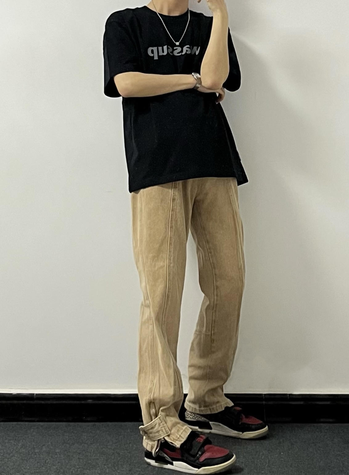 叮叮叮🔔今日穿搭分享来啦~ - wassup的基础黑色短袖就不用多说了 几乎人手一件的夏日衣柜单品👀 不管是版型和质量都双双在线🤭 - 这条棕色🏾牛仔裤到底是谁还没有啊❕ 这都2023年了,该不会还有人没有一条棕色牛仔裤叭🍉🥂 男生不知道买什么裤子选它就对了~ - 鞋子又是经典的AJ312~ 这款黑红配色确实很耐看 的确属于是312家族里面的经典了🎱 👔:黑色基础短袖 👖:棕色牛仔裤 👟:AJ31...
