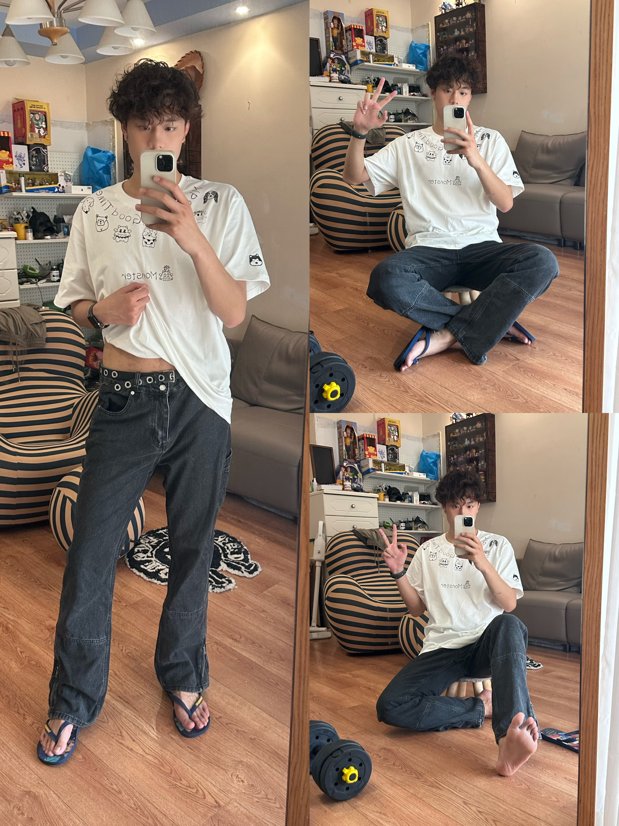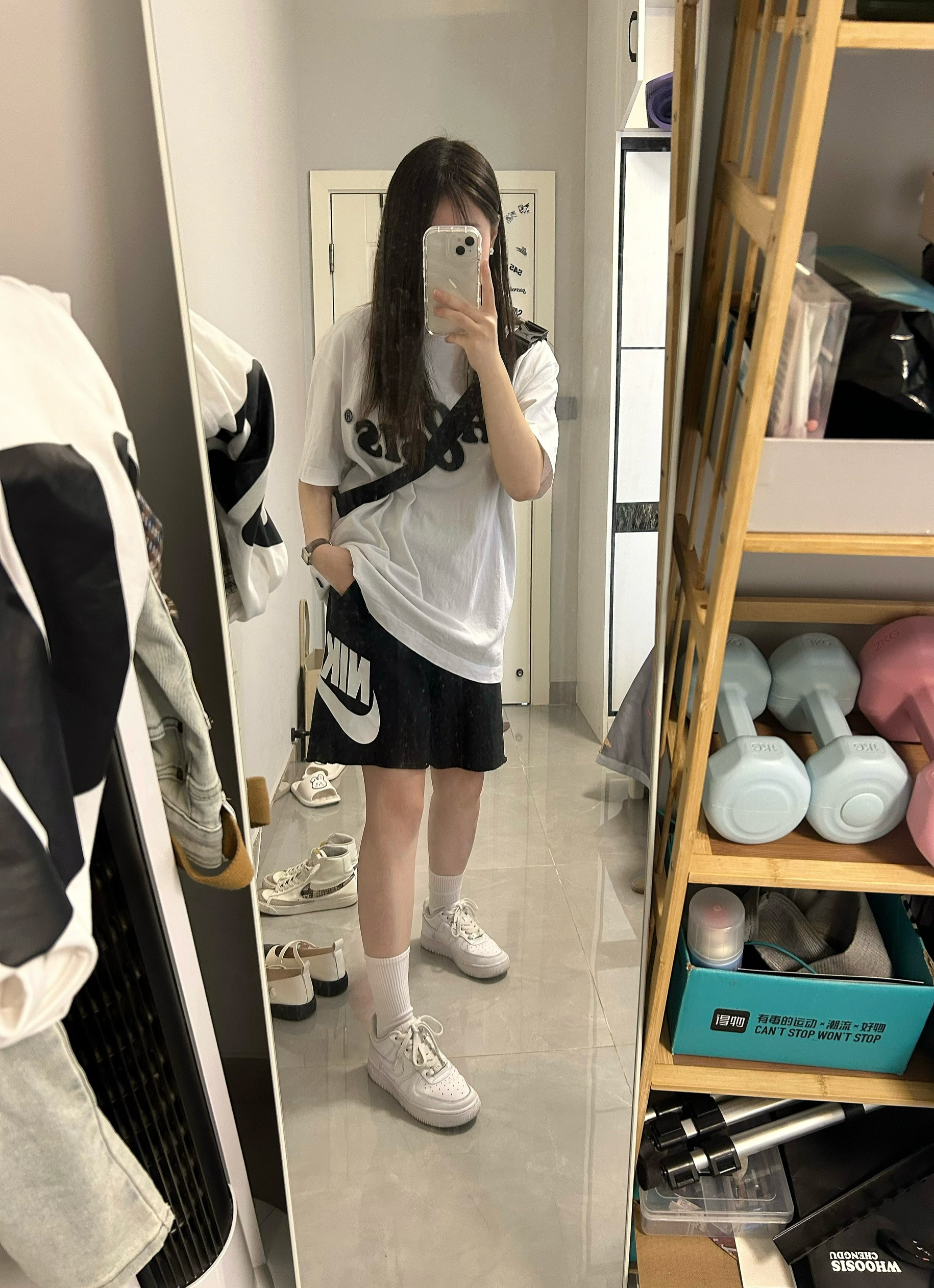 穿搭公式:套头短袖+运动短裤+运动鞋 采用优质棉质面料,吸汗性更好,但是整体较为厚重,怕热的小伙伴就再考虑一下吧 但是白色这款不会透,但是白色好看,不耐脏呀,吃饭的时候最好不要穿☹️