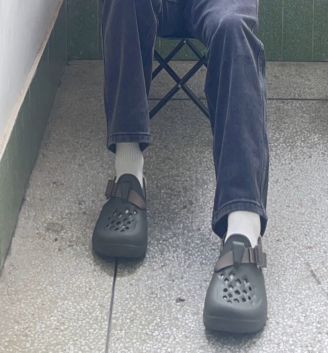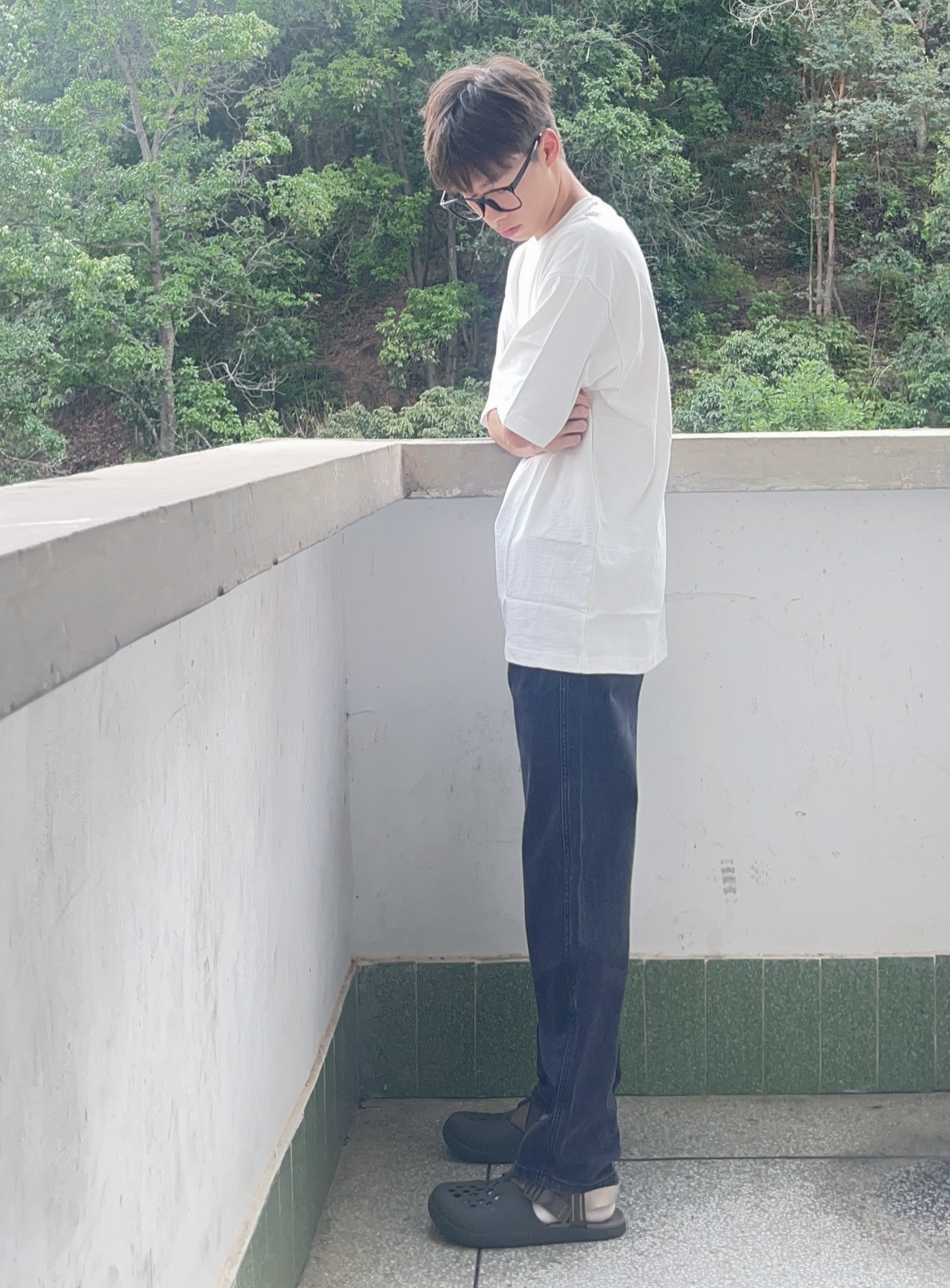 - 白色简约短袖+黑色牛仔裤 再搭配上舒适透气的户外洞洞鞋 足弓设计走路很舒服 不会臭 - 一套下来真的泰酷辣