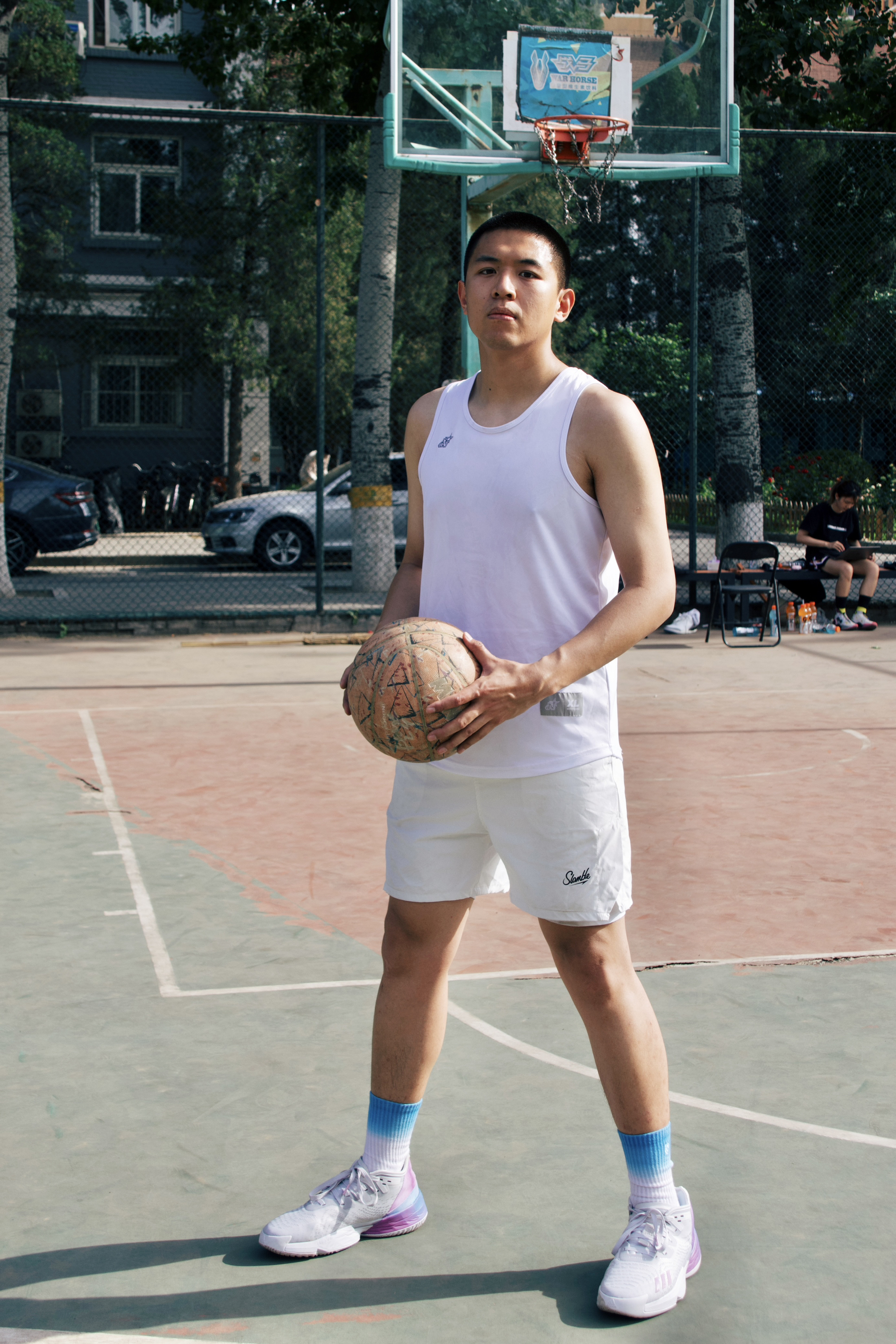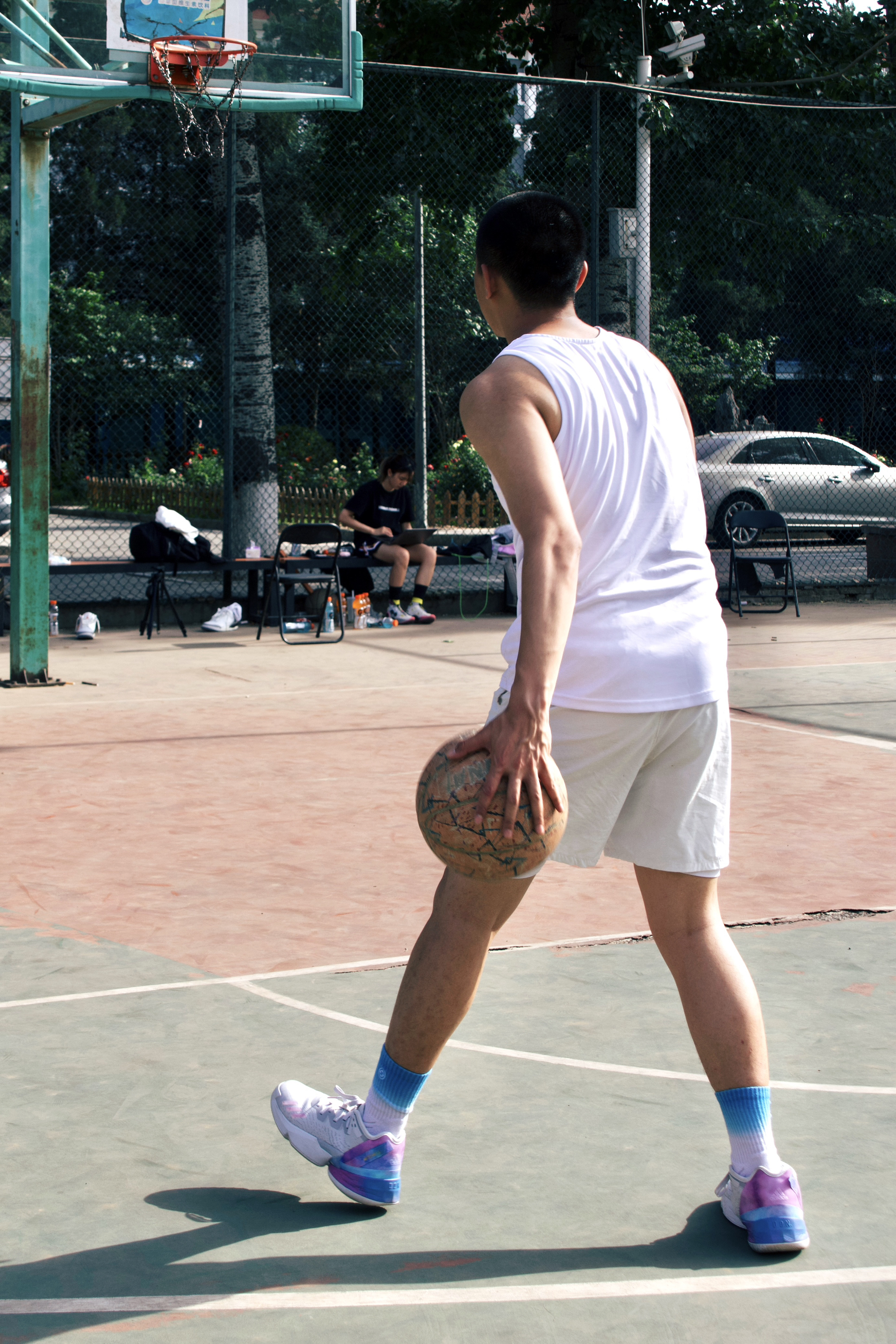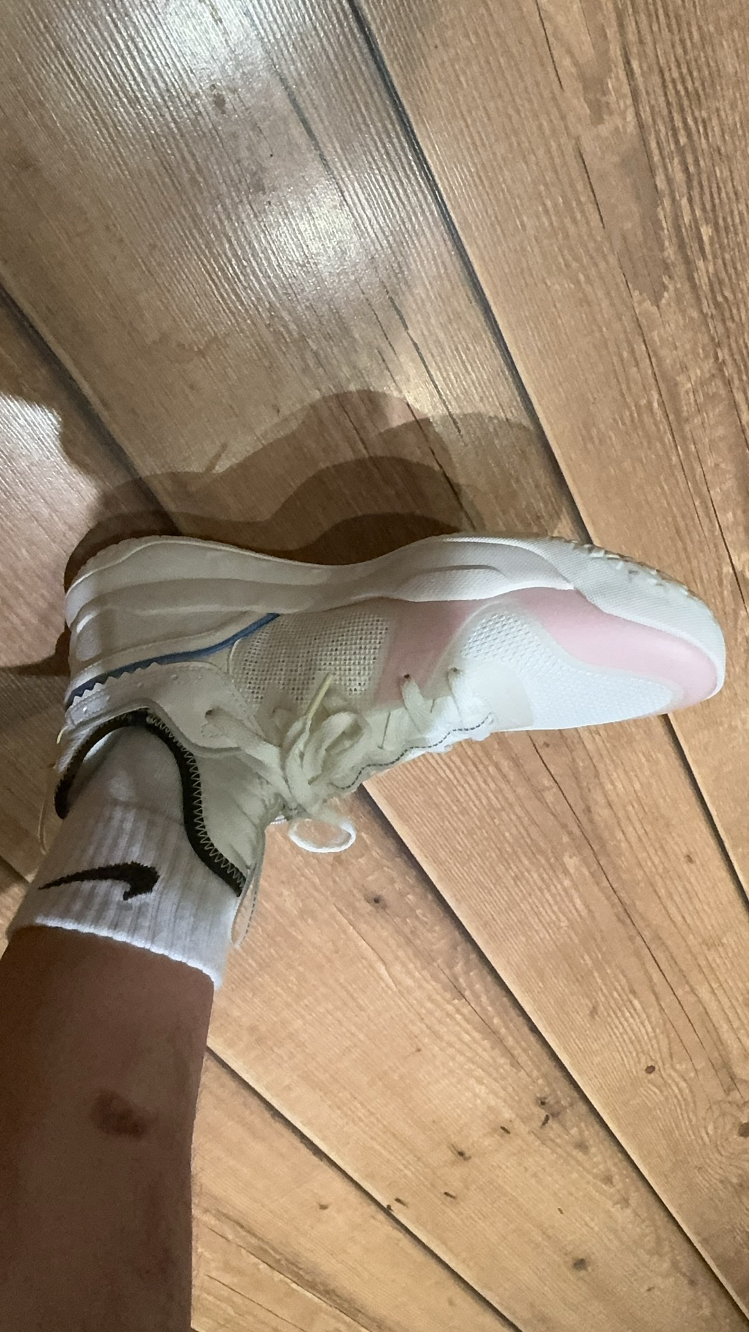 抓地方面:出乎我的意料,大底特殊的粗旷纹路好像就是为了外场而生,做动作很安心,在有点灰的室外依旧稳如老狗,没有出现打滑的状况!