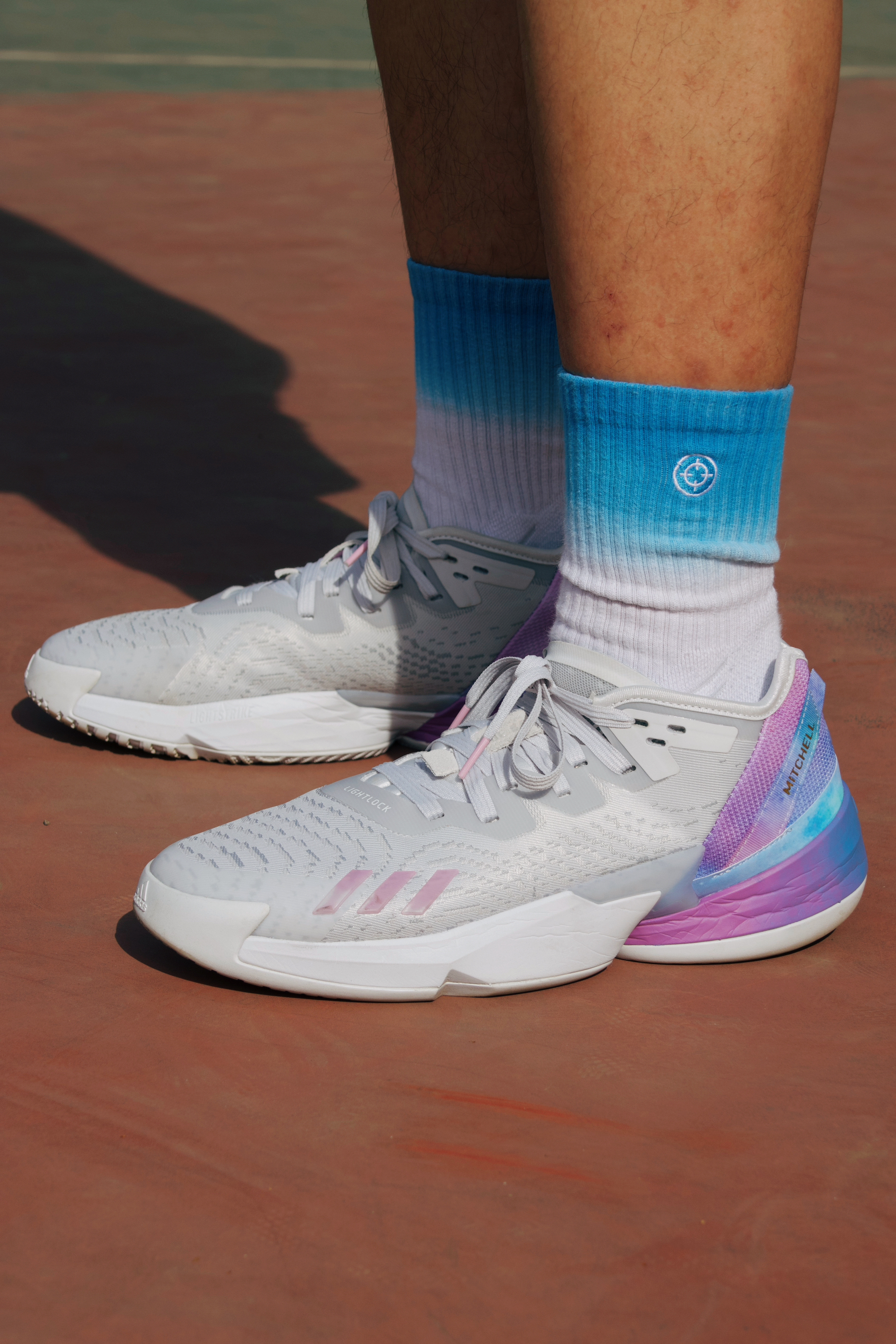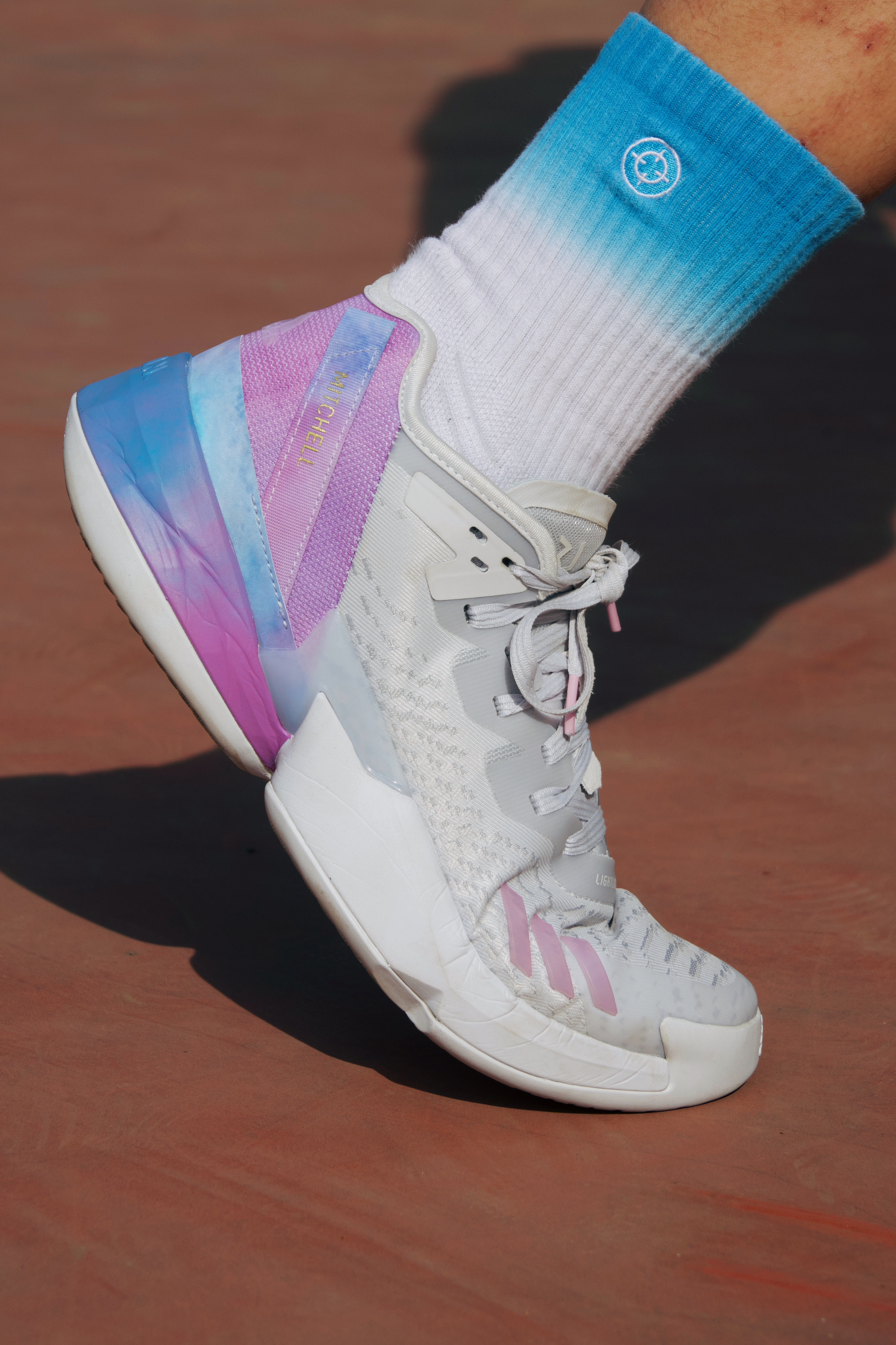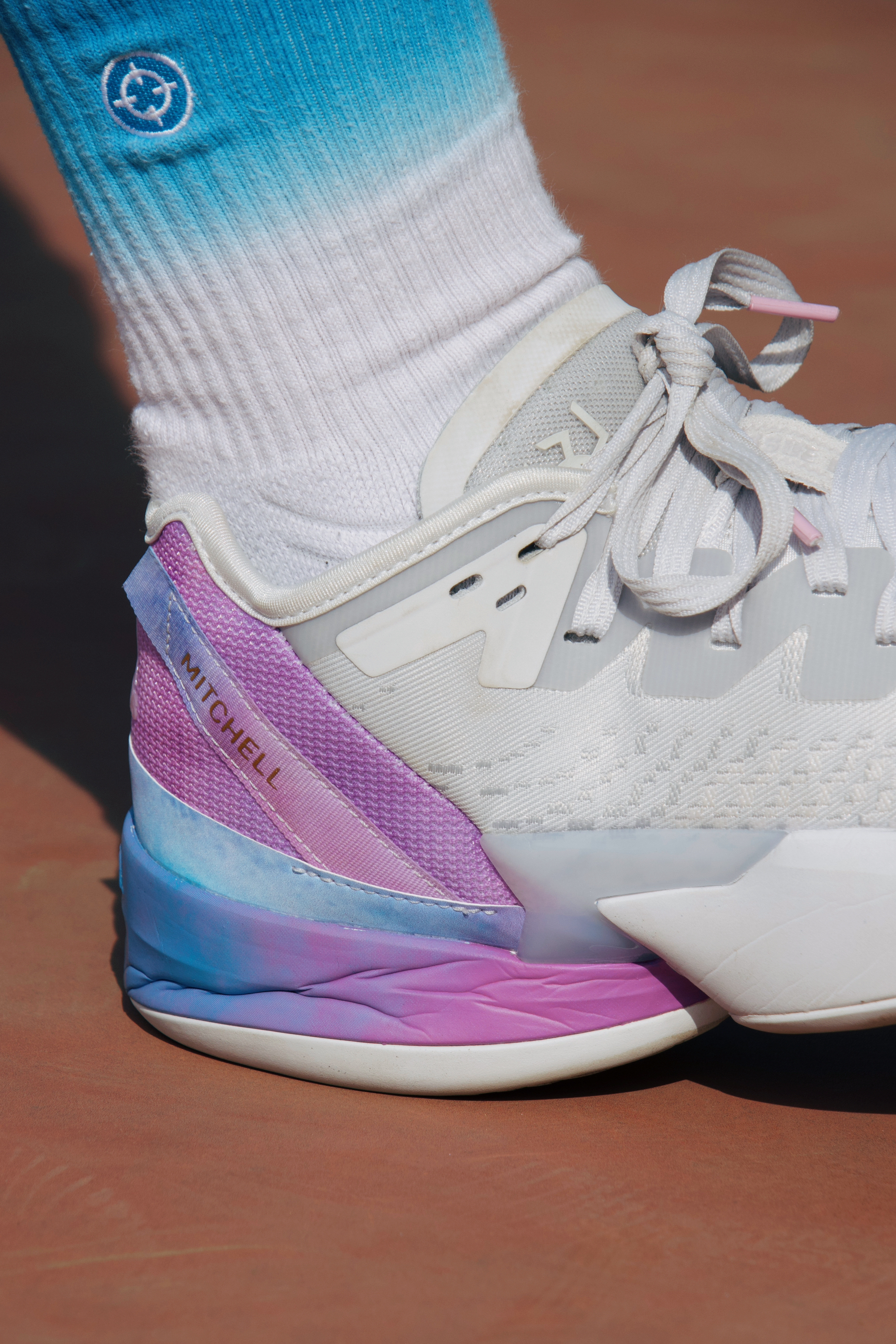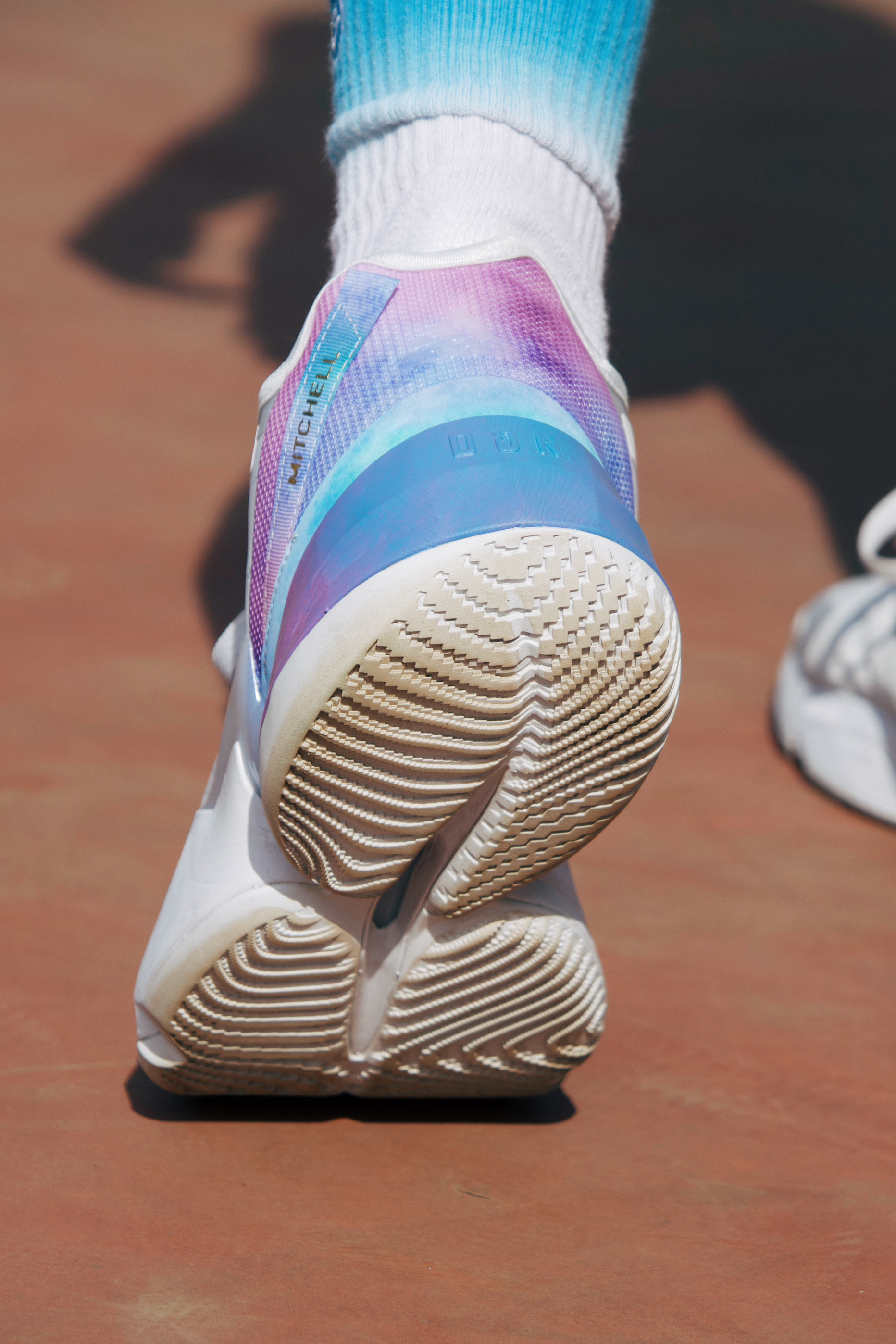 细节方面:鞋舌上的个人 LOGO 配合着鞋身侧面 米切尔 的帆布条很有意思。鞋头侧面的三道杠采用了立体的 TPU 材质看似很酷,其实特别容易刮花!