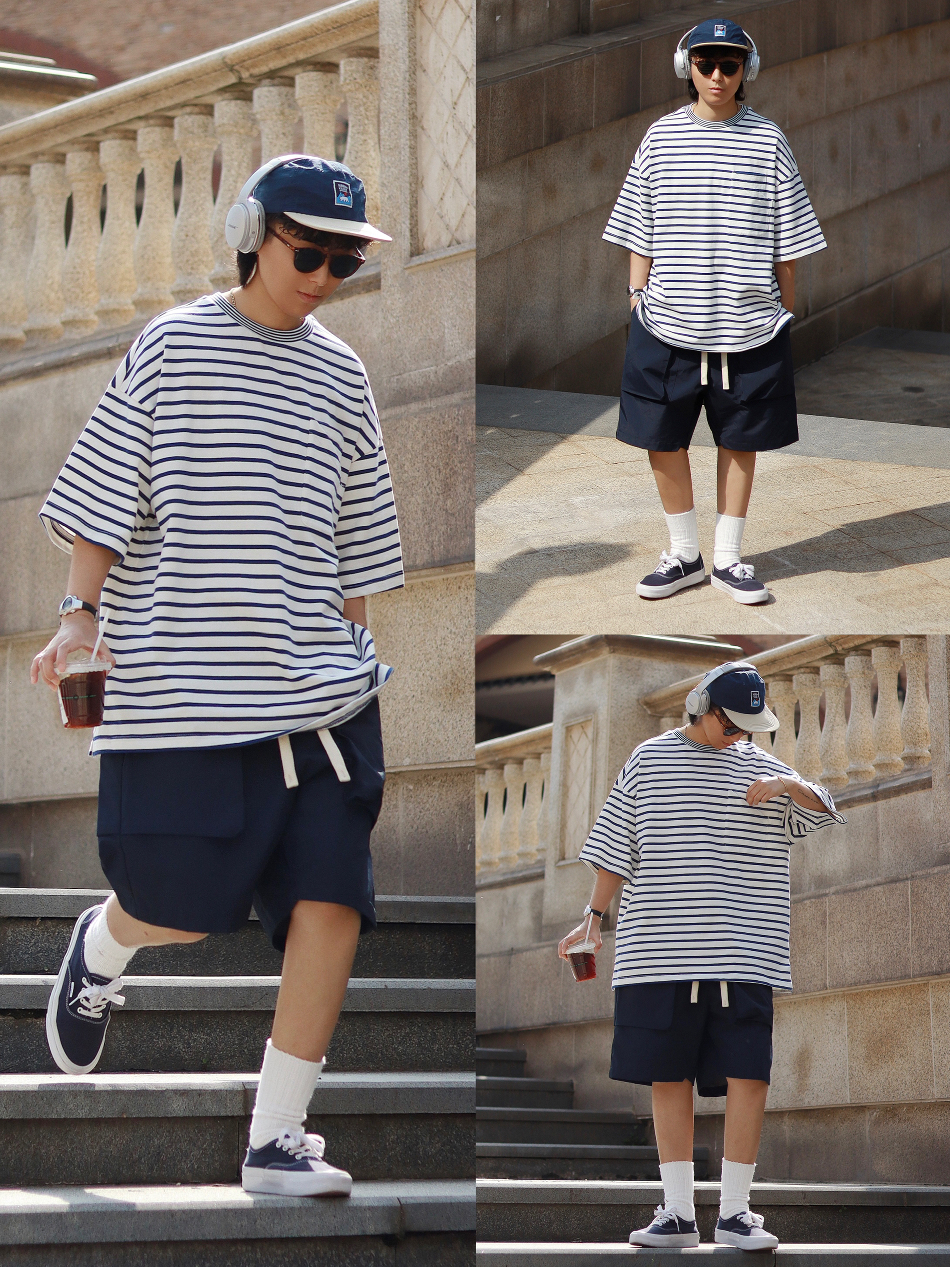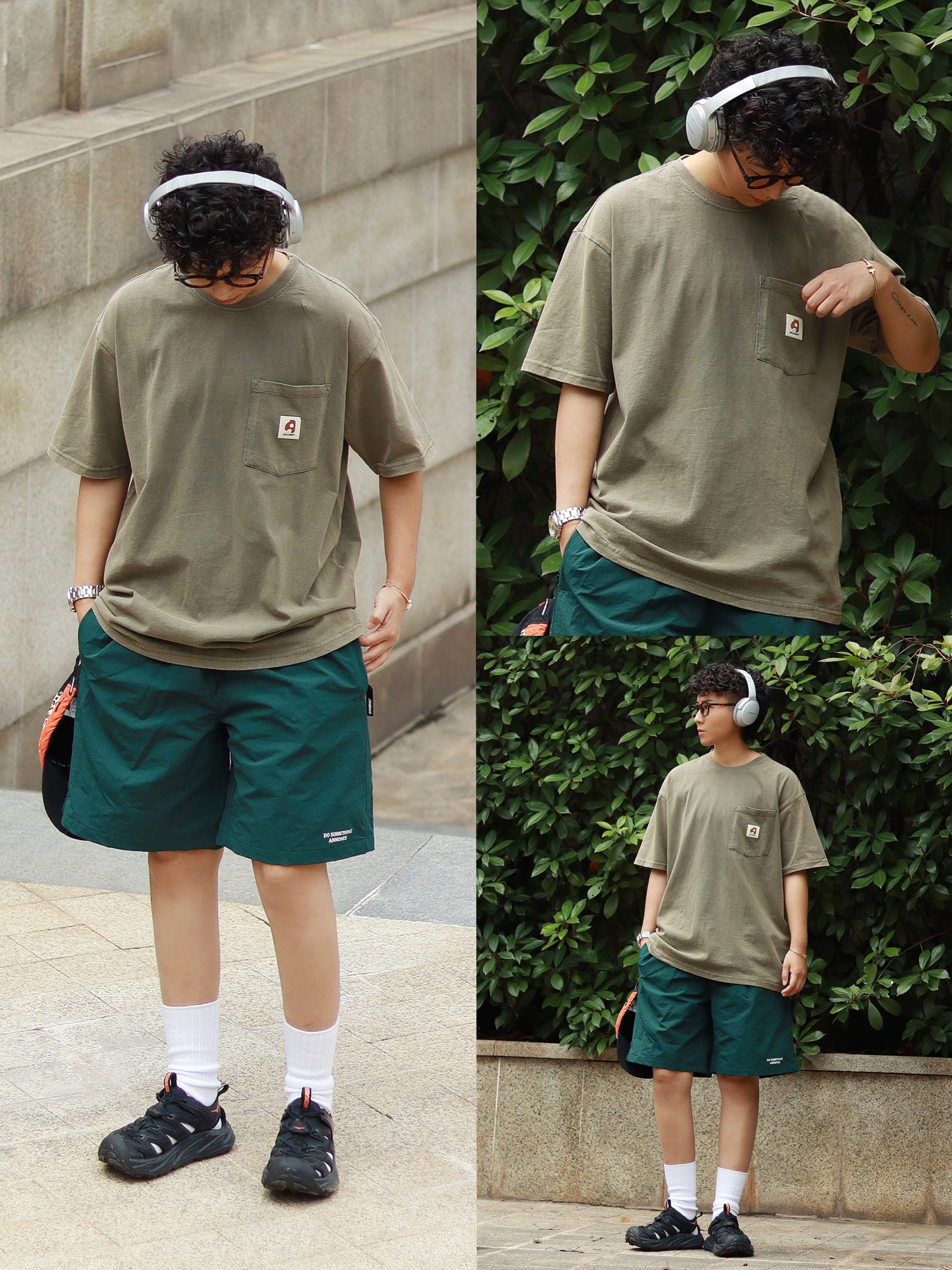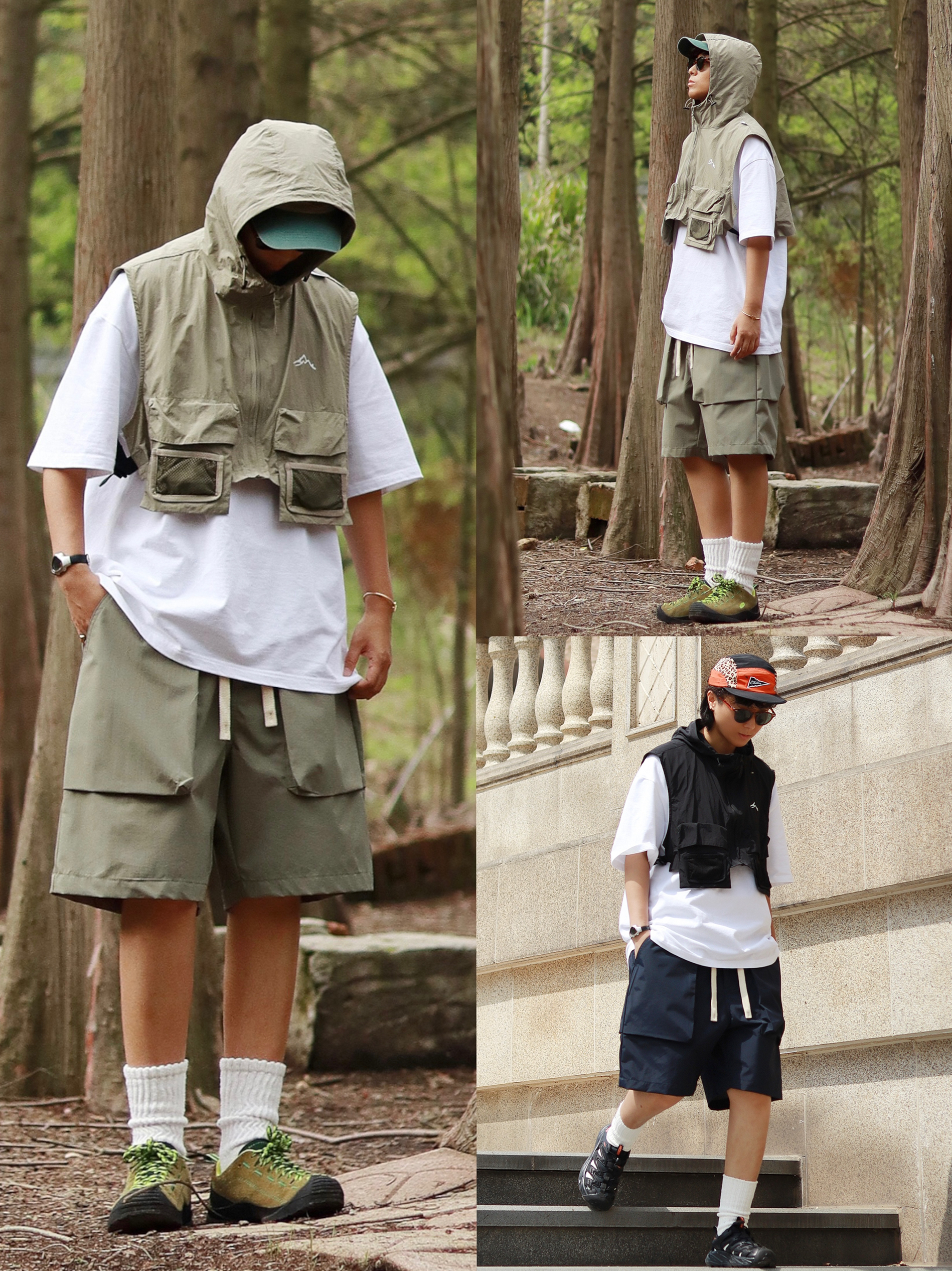 又到了周末可以分享一周穿搭啦👏 LOOK1️⃣连帽机能马甲叠搭短Tee,搭配同色系工装短裤,周末户外露营和森林融为一体~ LOOK2️⃣简约字母T恤搭配透气网格短裤,经典的夏日city boy套装~ LOOK3️⃣半拉链连帽防晒服,深灰沙滩短裤,夏日防晒已经不是女生的专利咯~ LOOK4️⃣重磅水洗廓形短Tee搭配宽松牛仔短裤,这个夏天我上身机率最高的T恤~ LOOK5️⃣小领口条纹落肩T恤,藏青...