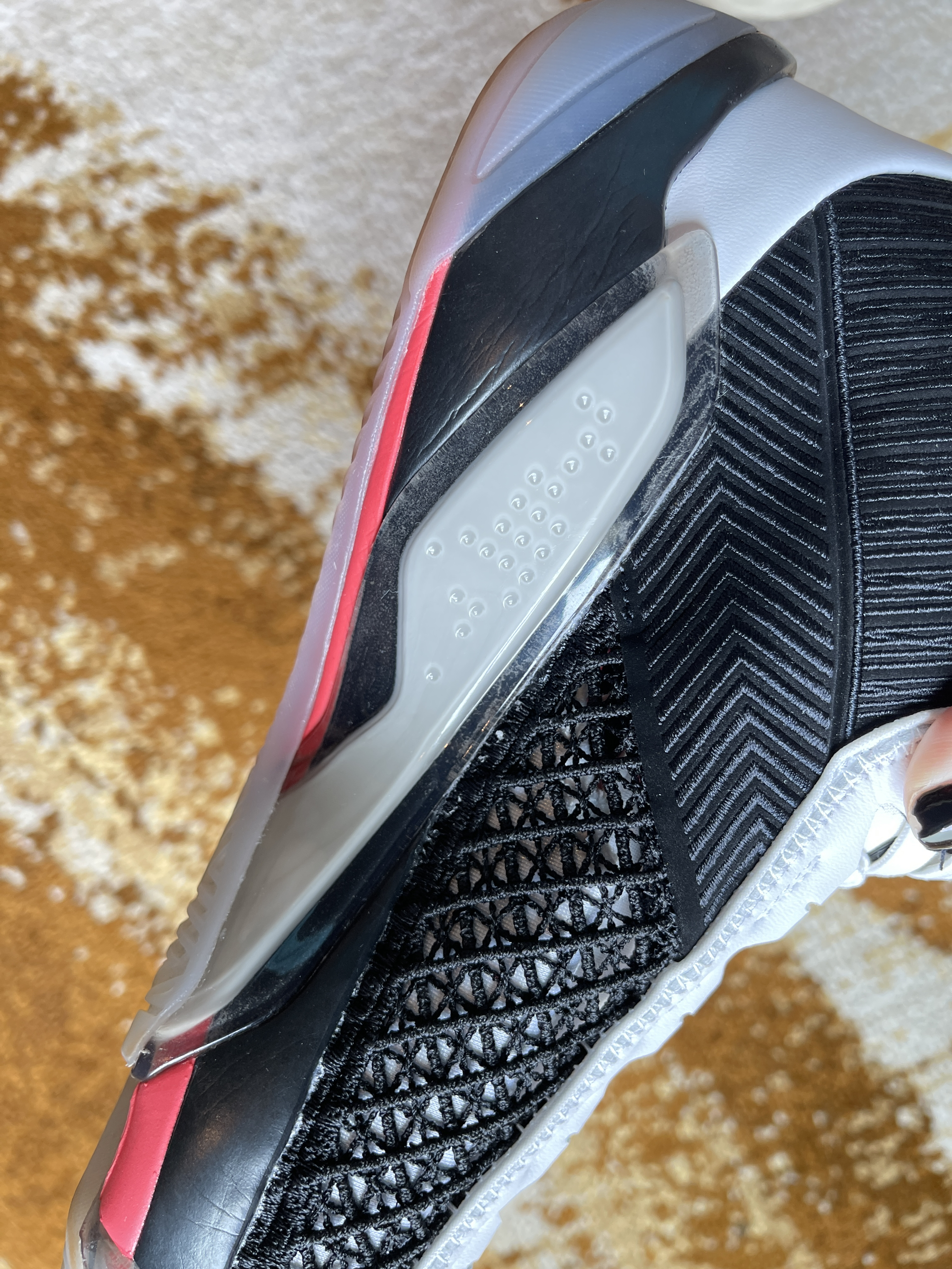 本篇笔记关联了Air Jordan 38 篮球鞋 缓震抗扭舒适防滑耐磨圆头实战zoom 国内版/黑色/白色等商品,为用户提供真实的使用体验和购买参考。